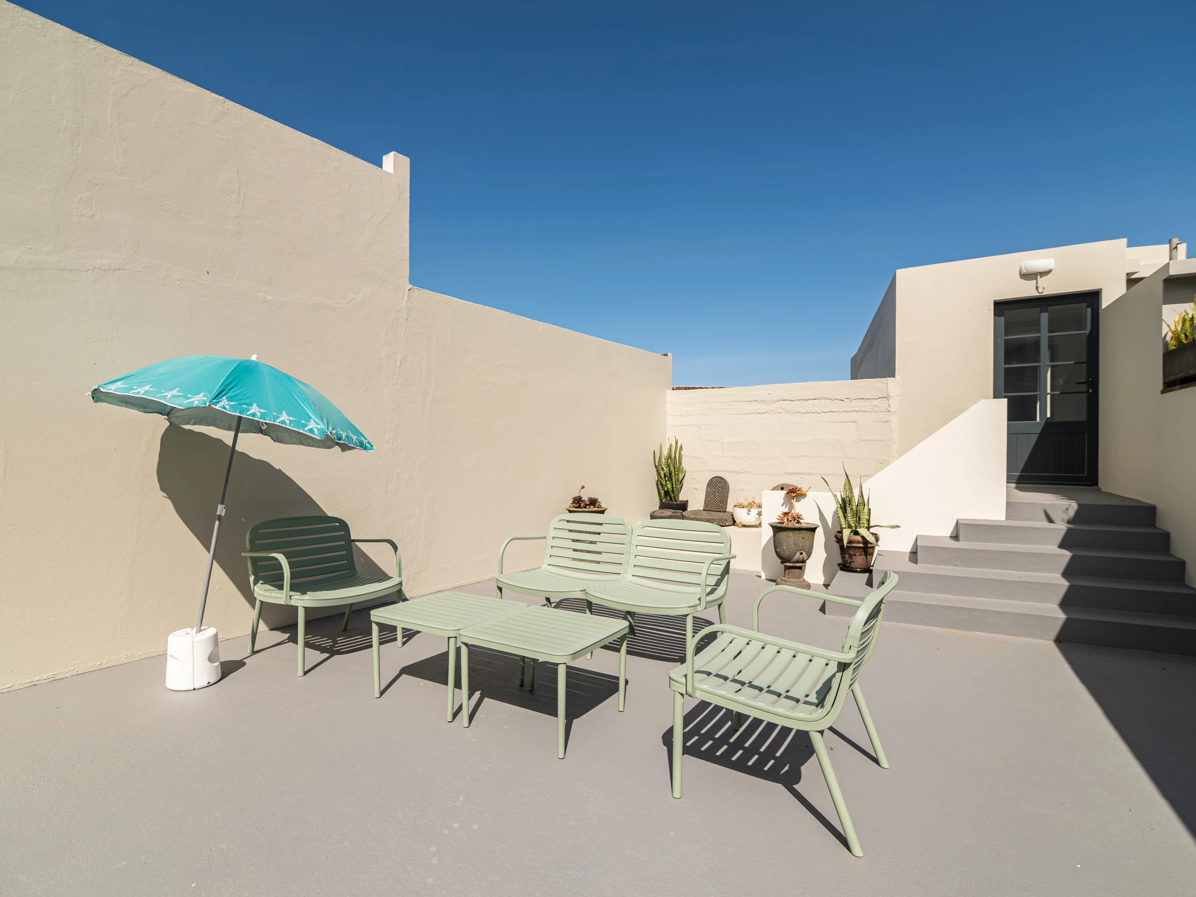 Der Weltraum ist ebenso einladend, mit einem Garten und Gartenmöbeln, die Momente der Entspannung im Freien ermöglichen. Die Lage ist privilegiert, nur 400 Meter vom Sandstrand Santa Bárbara und 200 Meter von einem lokalen Restaurant entfernt.