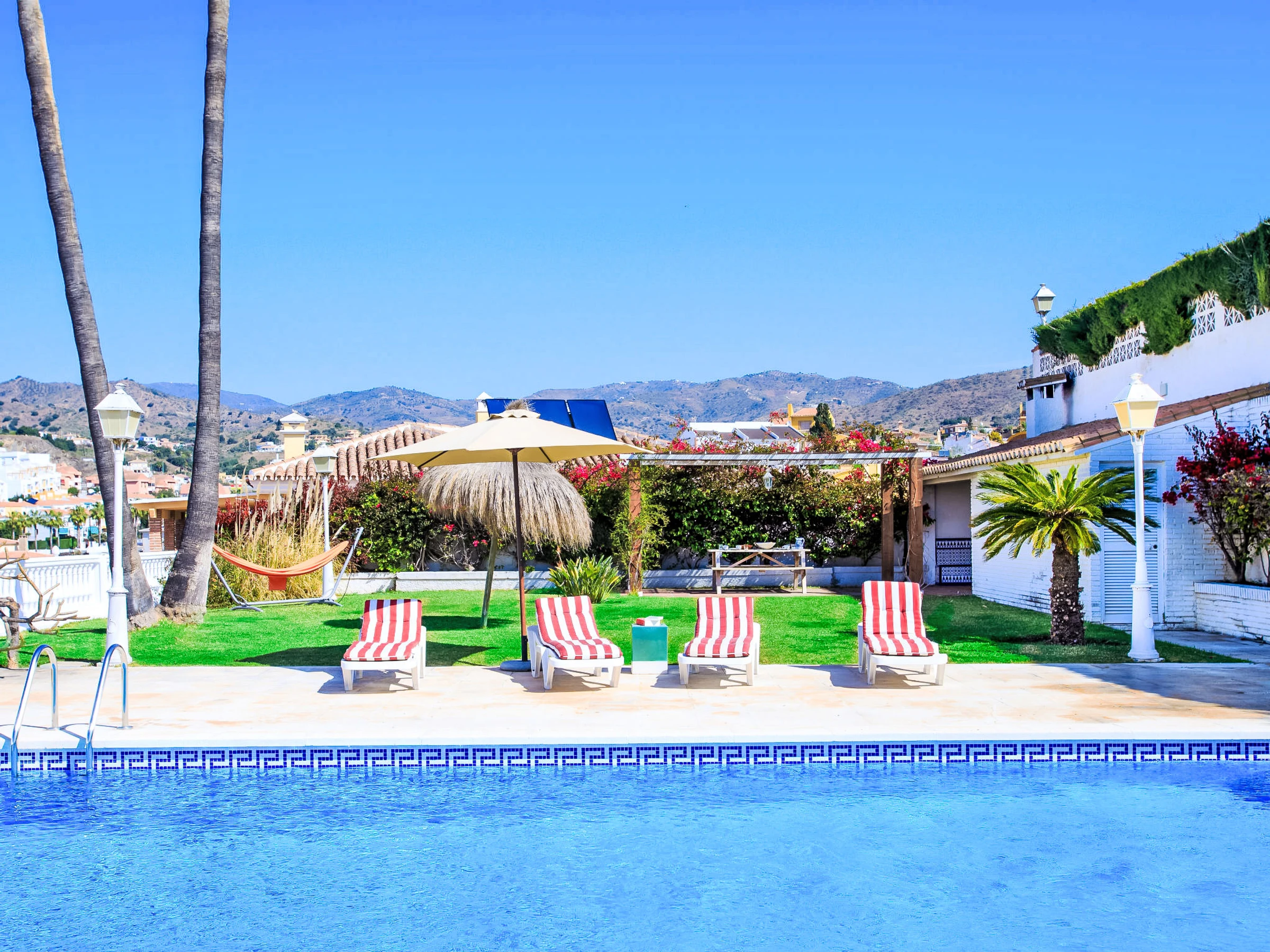 Rincón de la Victoria: Schöne, gemütliche, komfortable Villa "Villa Tulipán". Im Ort, 700 m vom Zentrum von Rincón de la Victoria, ruhige, sonnige Lage am Hang, 700 m vom Meer. Zur Alleinbenutzung: Garten 900 m2 mit Rasen 700 m2, Schwimmbad eckig (10 x 5 m, saisonale Verfügbarkeit: [hidden] - [hidden] WC im Poolbereich, Laube (30 m2), Terrasse (20 m2), Gartenmöbel, Grill, Poolpflege durch den Besitzer/Gärtner. Im Hause: Wireless LAN, Klimaanlage, Waschmaschine. Zufahrt bis zum Haus. Treppenweg (15 Stufen) bis zum Haus. Öffentliche Parkplätze auf der Strasse. Supermarkt 300 m, Einkaufszentrum 3 km, Restaurant 600 m, Bushaltestelle 350 m, Sandstrand "walking distance" 750 m. Golfplatz (18 Loch) 2.8 km. Bitte beachten: Babyausstattung auf Anfrage (extra). Jugendgruppen nur auf Anfrage. Der Besitzer akzeptiert keine Jugendgruppen. Nacht Club/Disco 1 km vom Haus. Flugplatz 34 km vom Haus. Ruhige Wohngegend.