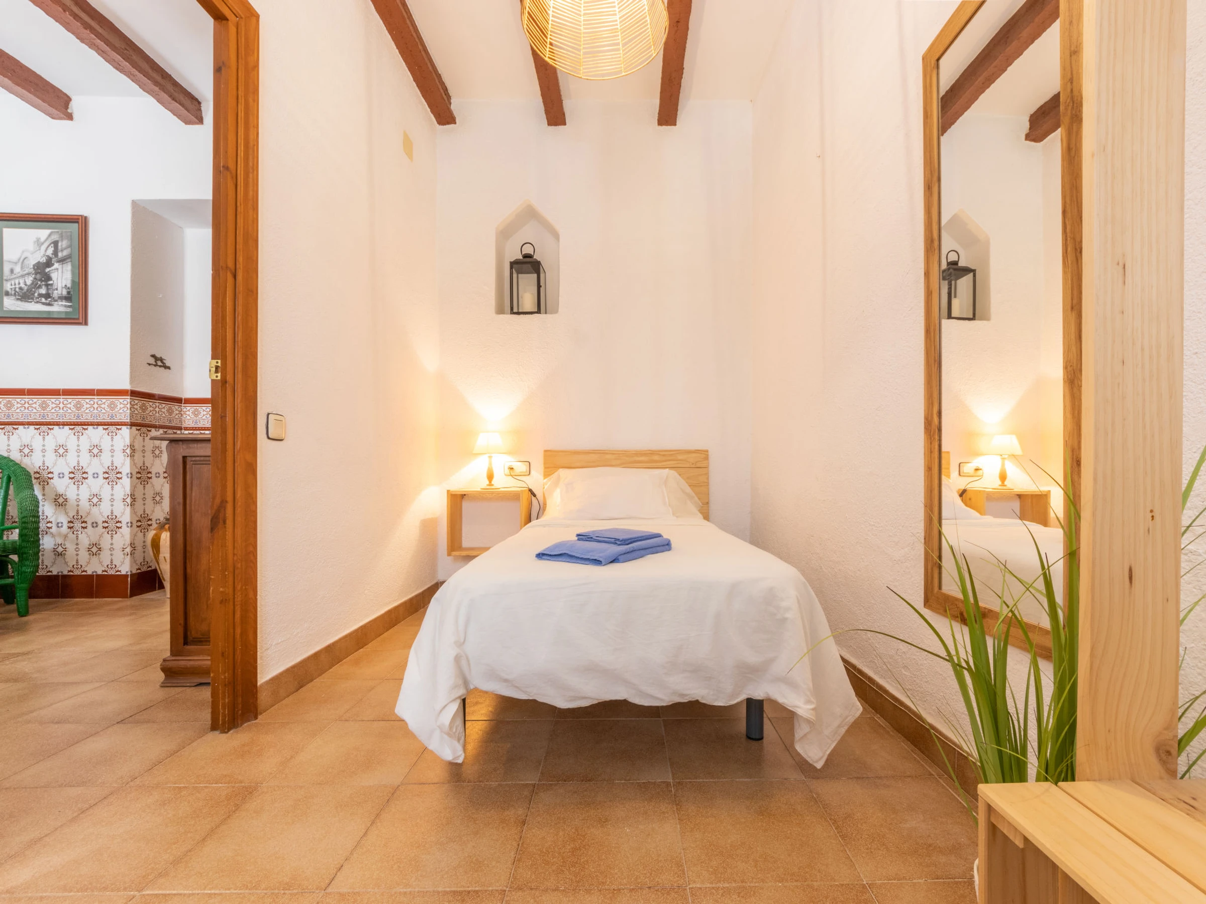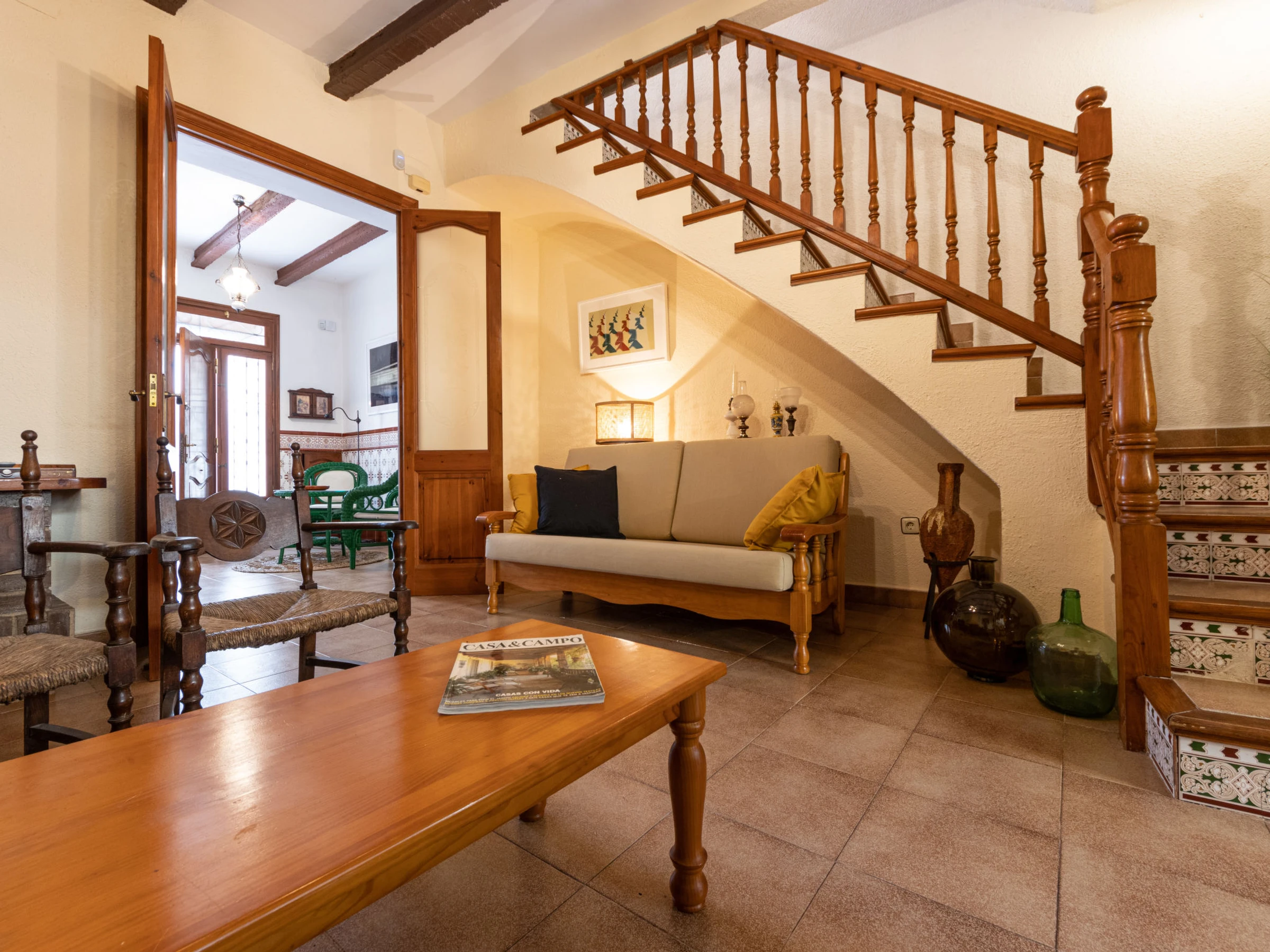 "Cal Juan", 7-Zimmer-Haus 158 m2 auf 2 Stockwerken. Objekt geeignet für 6 Erwachsene + 5 Kinder. Einfach und zweckmässig eingerichtet: Wohn-/Esszimmer mit Digital-TV, Flachbildschirm und Heizofen. Ausgang zur Terrasse. 1 Zimmer mit 1 Bett (90 cm, Länge 190 cm). Küche (Backofen, Geschirrspüler, Toaster, Wasserkocher, Mikrowelle, elektrische Kaffeemaschine). Obergeschoss: 1 Zimmer mit 1 x 2 Etagenbetten (90 cm, Länge 190 cm). 1 Zimmer mit 1 franz. Bett (150 cm, Länge 190 cm). 1 Zimmer, ohne Fenster mit 1 franz. Bett (135 cm, Länge 190 cm). Dusche/WC. 2. Obergeschoss: 1 Zimmer mit 1 franz. Bett (130 cm, Länge 190 cm), TV, Flachbildschirm und Ventilator. Ausgang zum Balkon. 1 Zimmer mit 1 franz. Bett (140 cm, Länge 200 cm), Ventilator. Ausgang zum Balkon. Dusche/WC. Grosse Terrasse, 3 kleine Terrassen. Gartengrill, Liegestühle (3). Zur Verfügung: Waschmaschine, Bügeleisen, Kinderhochstuhl, Babybett bis 3 Jahre, Haartrockner. Internet (WLAN, gratis). Bitte beachten: geeignet für Familien. Nichtraucher-Haus. Maximal 1 Haustier/Hund erlaubt. [hidden] // Reg. Nr.: ESFCTU00004302800002128800000000000000000[hidden]4