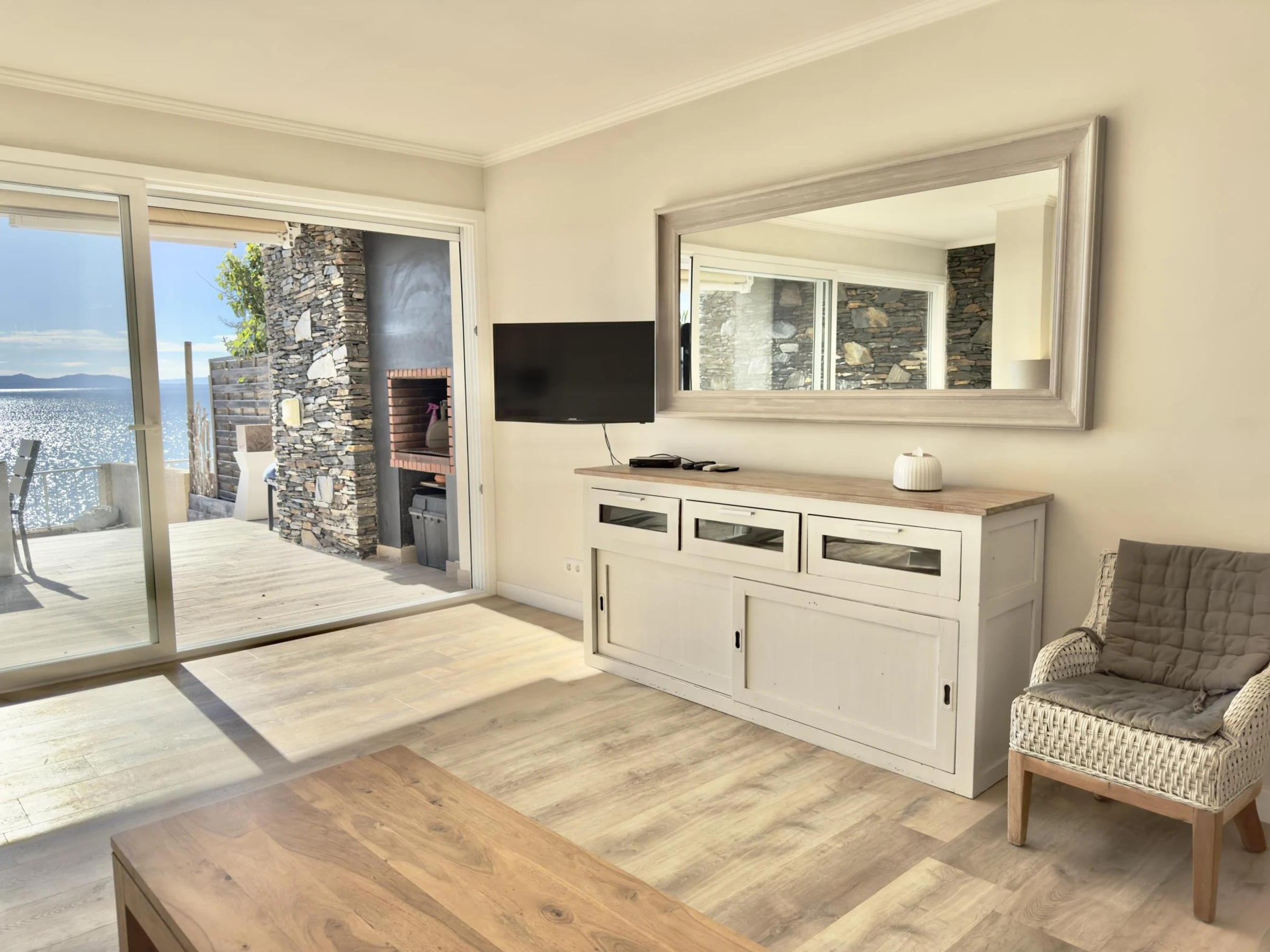 * Helles Wohn-/Esszimmer mit Klimaanlage, WLAN und TV mit nationalen und französischen Sendern