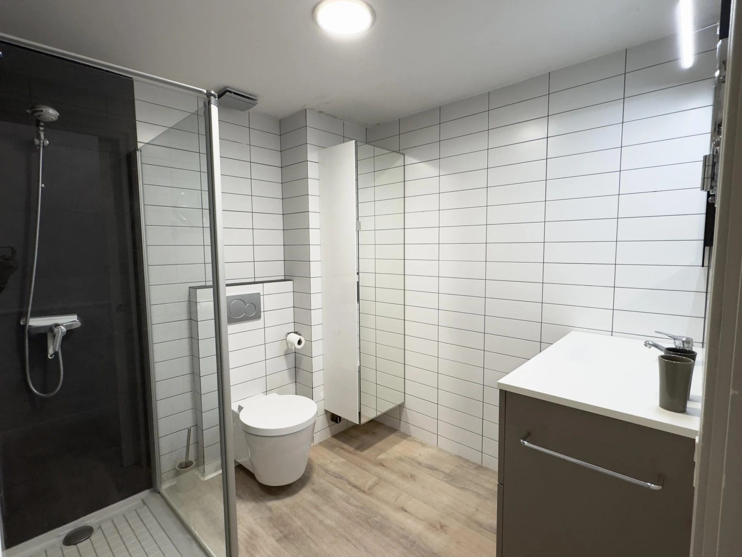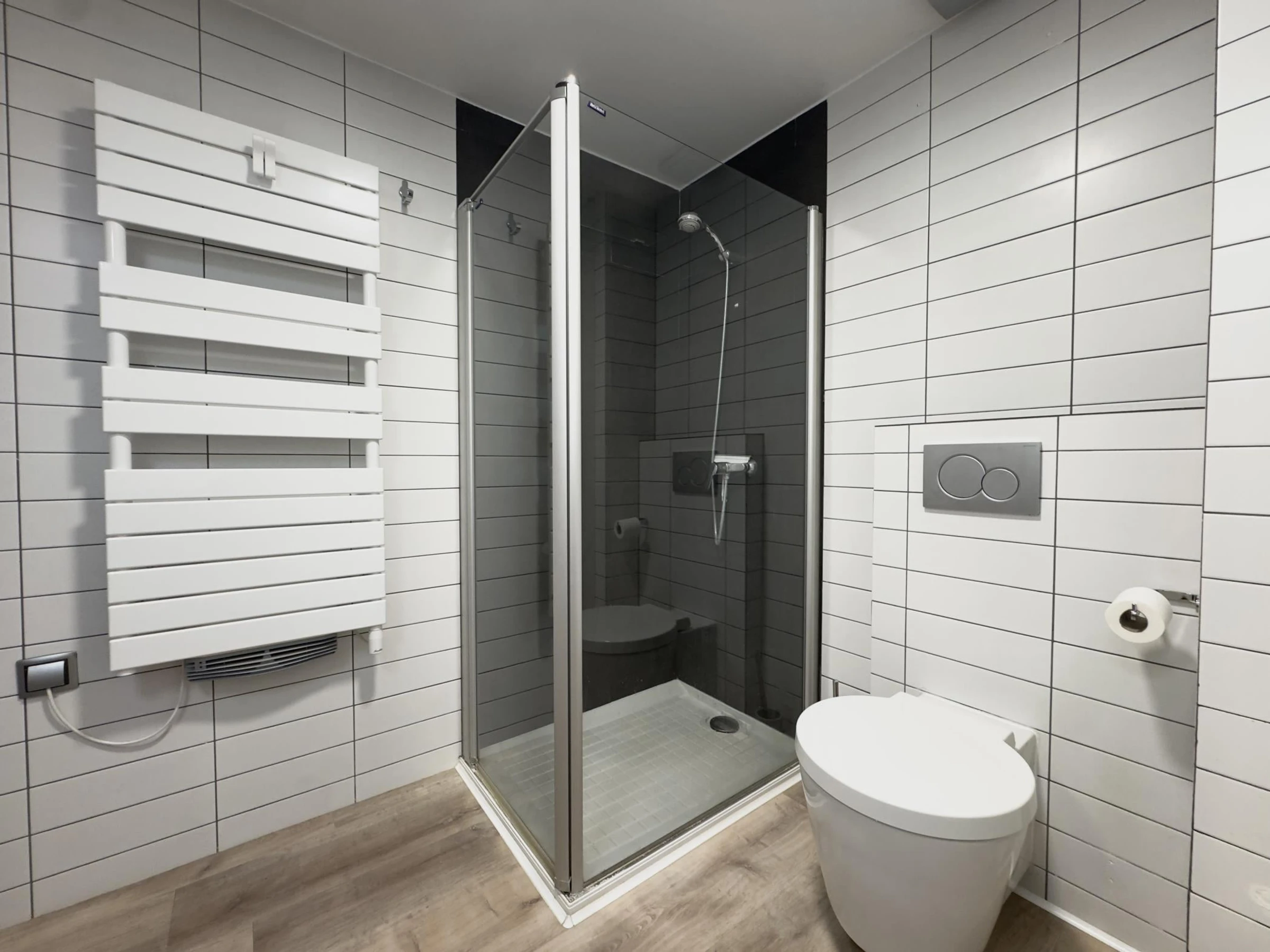 * Badezimmer mit Dusche und Haartrockner