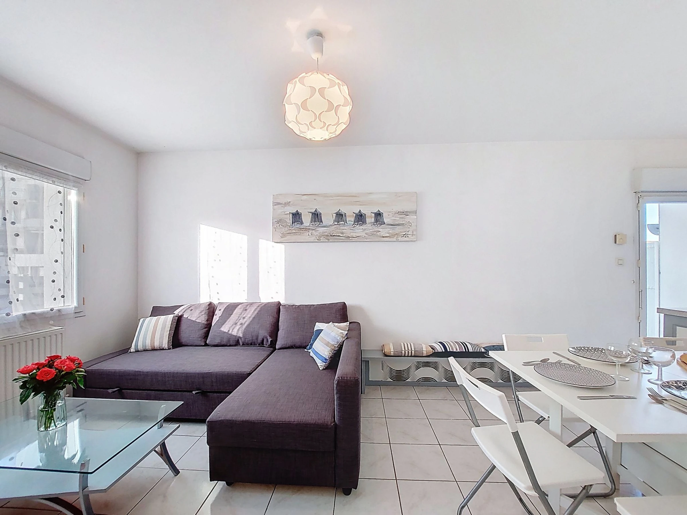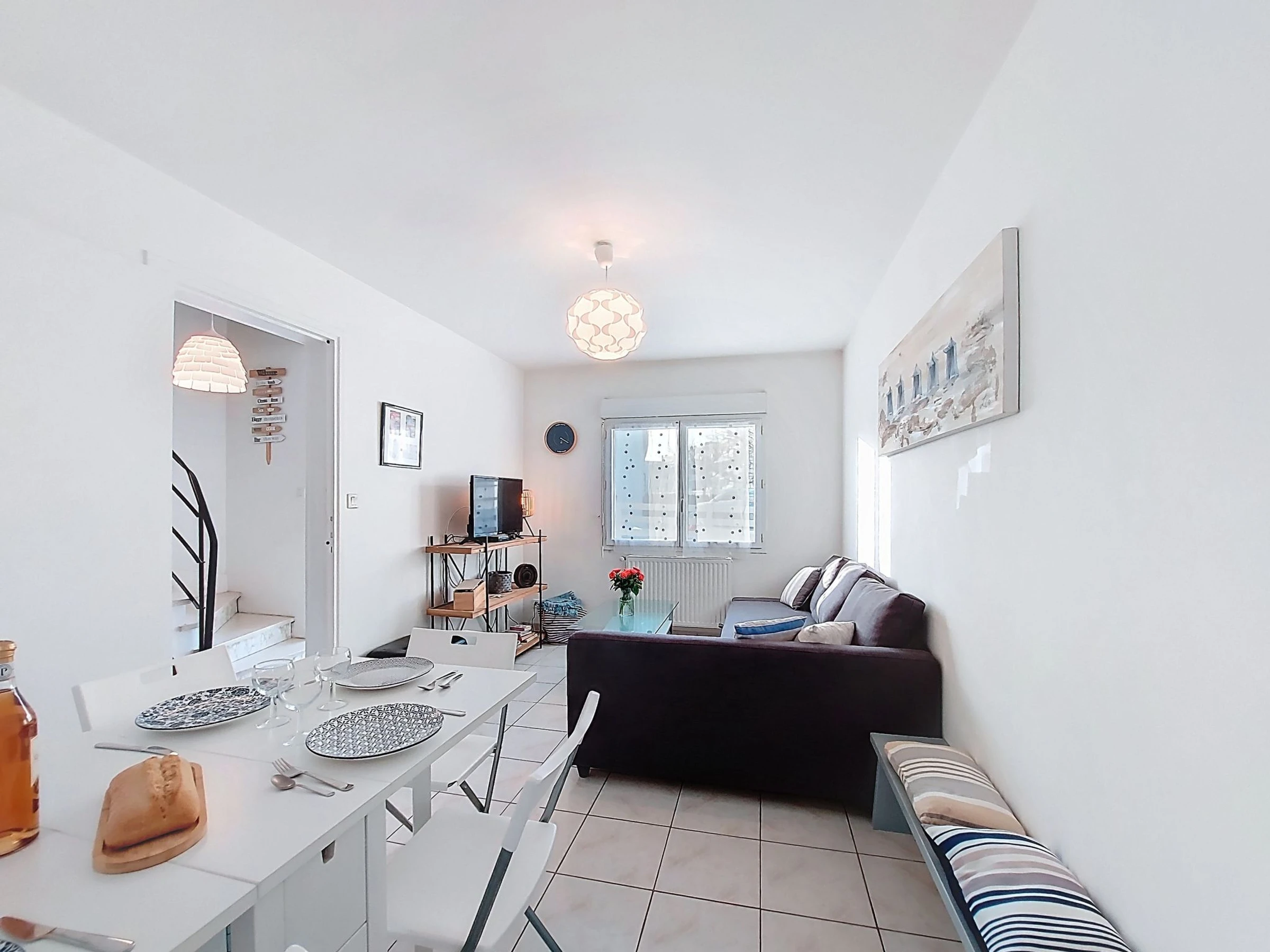3-Zimmer-Reihenhaus 65 m2 auf 2 Stockwerken. Wohn-/Esszimmer mit TV (Flachbildschirm). Ausgang zum Garten. Offene Küche (Backofen, Geschirrspüler, 4 Glaskeramikplatten, Toaster, Wasserkocher, Mikrowelle, elektrische Kaffeemaschine). Sep. WC. G-Heizung. Obergeschoss: 1 Zimmer mit 1 Bett (90 cm, Länge 190 cm), 1 franz. Bett (1 x 160 cm, Länge 190 cm). 1 Zimmer mit 1 franz. Bett (160 cm, Länge 190 cm). Bad. Terrassenmöbel, Gartengrill. Zur Verfügung: Waschmaschine, Babybett. Internet (WLAN, extra). Parkplatz (2 Autos). Inserat einer Privatperson nach Artikel 155, IV, CGI. [hidden]