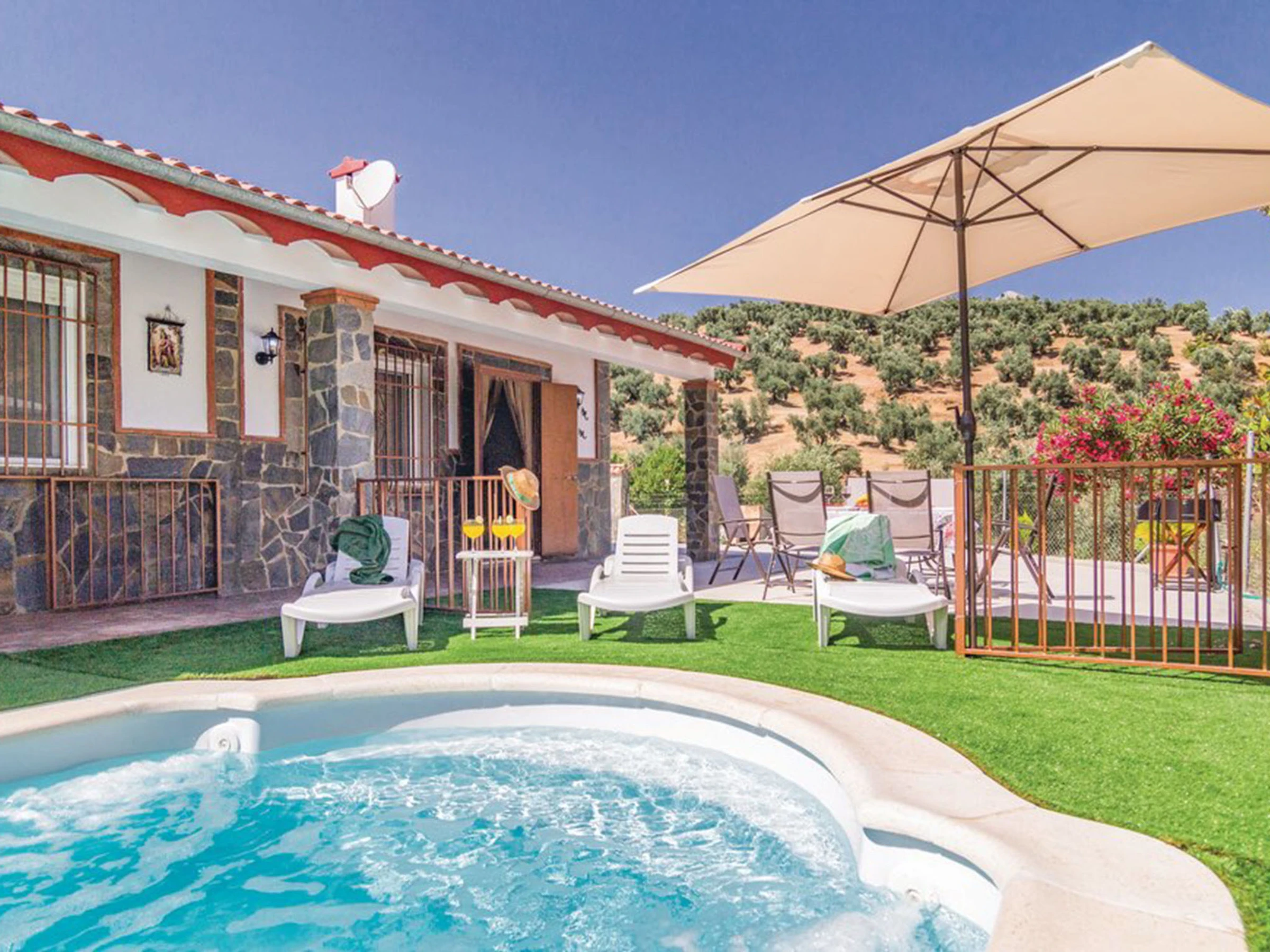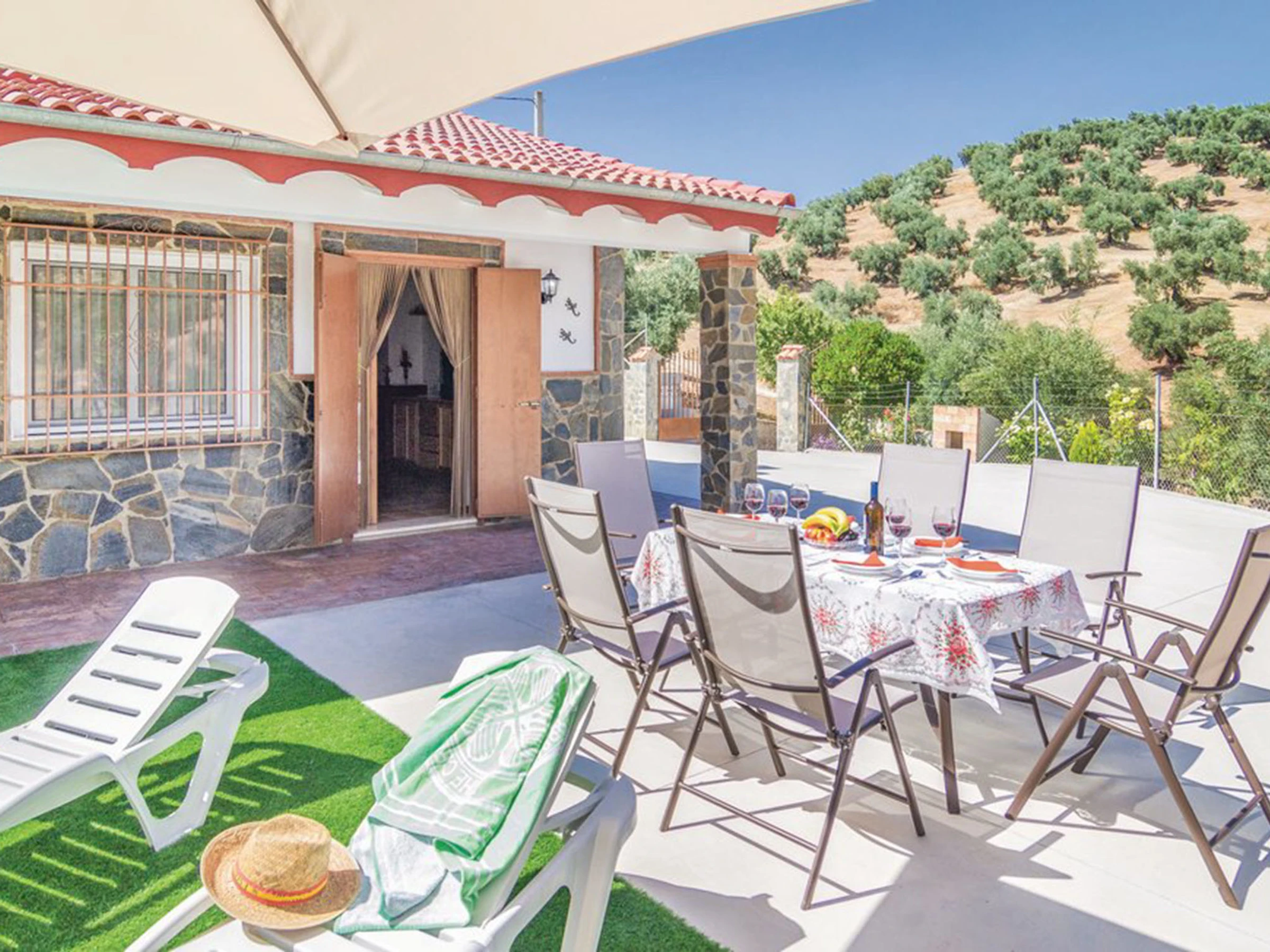 Rustikales, komfortables Haus "Las Tijeras", umgeben von Feldern. Alleinstehende, sonnige Lage, direkt am Waldrand, 20 km vom See. Zur Alleinbenutzung: Grundstück (eingezäunt), Schwimmbad (6 x 3 m, 90 - 140 cm tief, saisonale Verfügbarkeit: [hidden] - [hidden] Aussendusche, Sitzplatz, Gartenmöbel, Grill, Parkplatz beim Haus. Supermarkt 10 km, Restaurant 10 km, Bushaltestelle "Zambra" 8 km. Nahe gelegene Sehenswürdigkeiten: Antequera 55 km, Cordoba 80 km, Granada 89 km. Bekannte Seen in der Umgebung sind gut erreichbar: Pantano de Iznajar 23 km. Wandergebiete: Sierras Subbéticas 20 km.