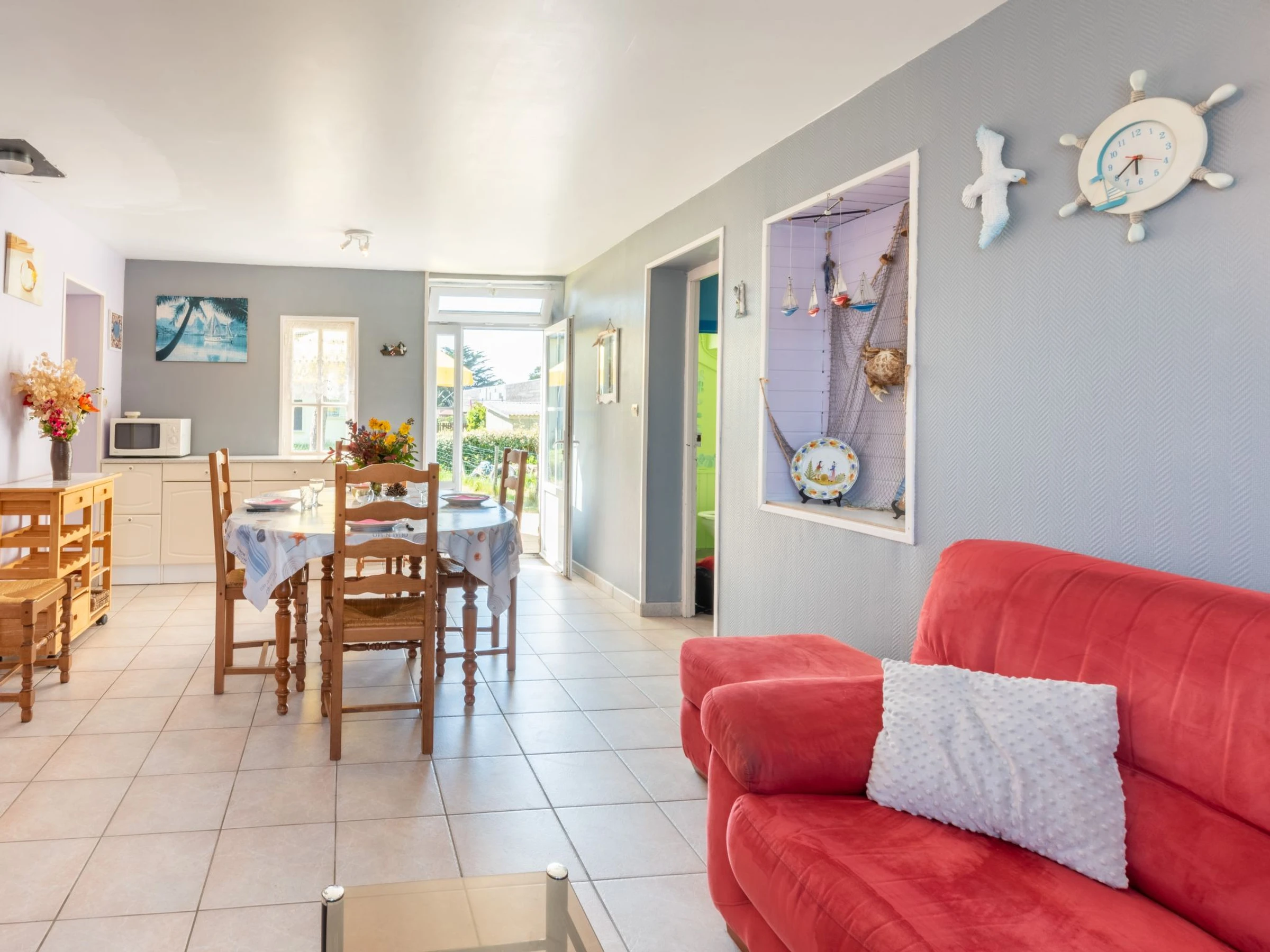 "Villa la Fourmi", 3-Zimmer-Haus 70 m2. Schön eingerichtet: Wohn-/Esszimmer mit TV und E-Heizung. Küche (Backofen, Toaster, Wasserkocher, Mikrowelle, elektrische Kaffeemaschine). Sep. WC. Obergeschoss: 1 Zimmer mit 1 franz. Bett (140 cm, Länge 190 cm). 1 Zimmer mit 2 Betten (140 cm, Länge 190 cm). Garten. Gartengrill. Zur Verfügung: Babybett. Parkplatz (2 Autos). Bitte beachten: Nichtraucher-Haus. Rauchmelder.