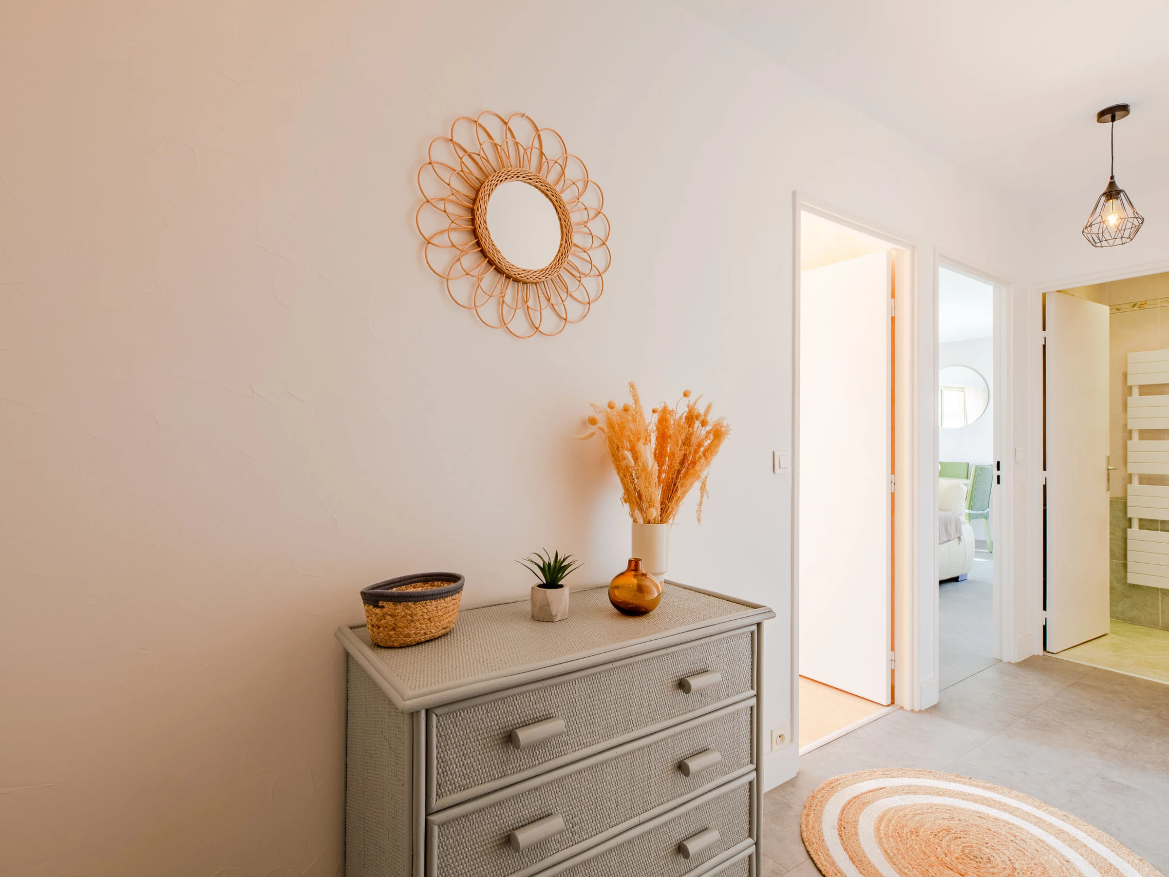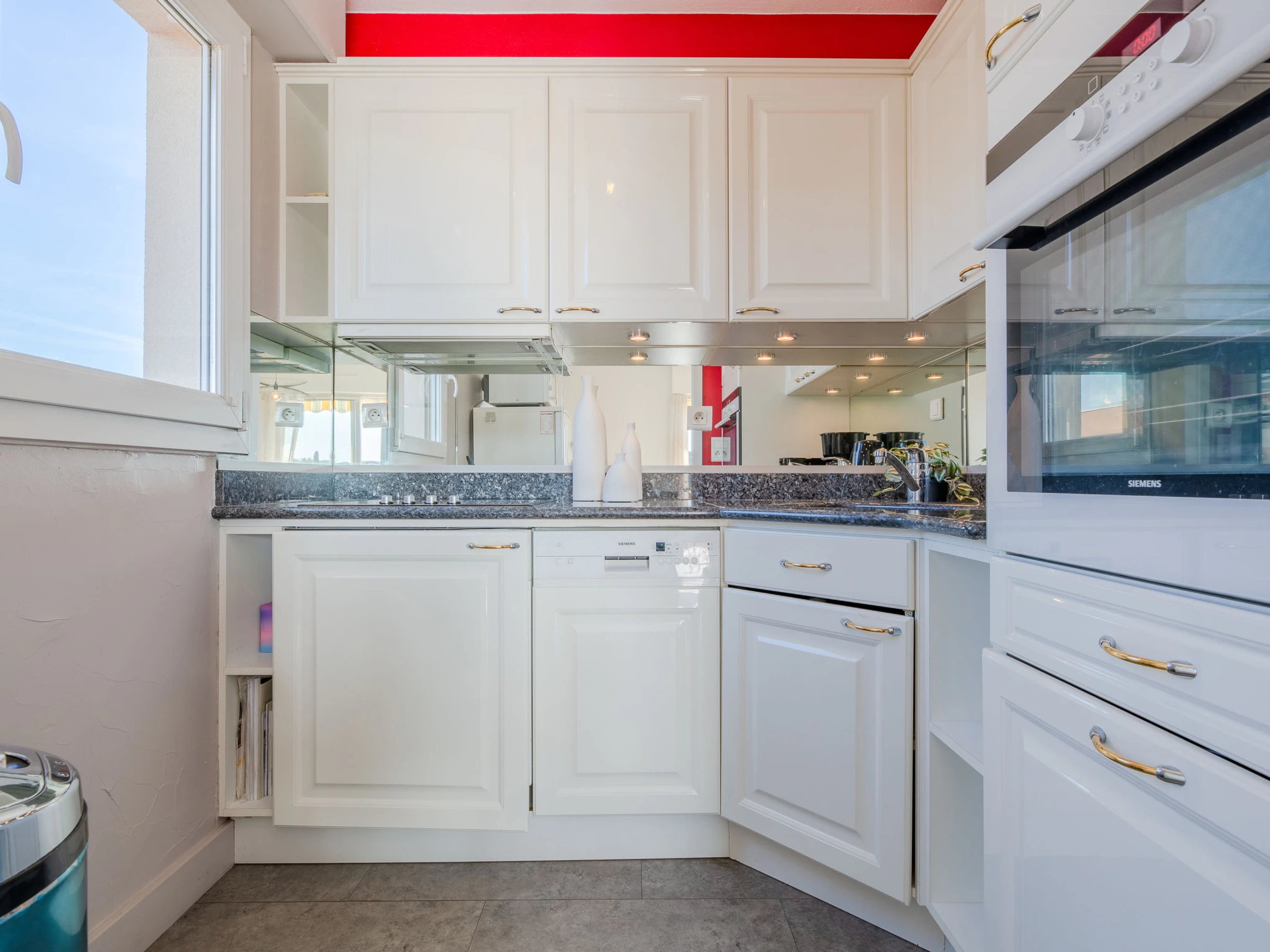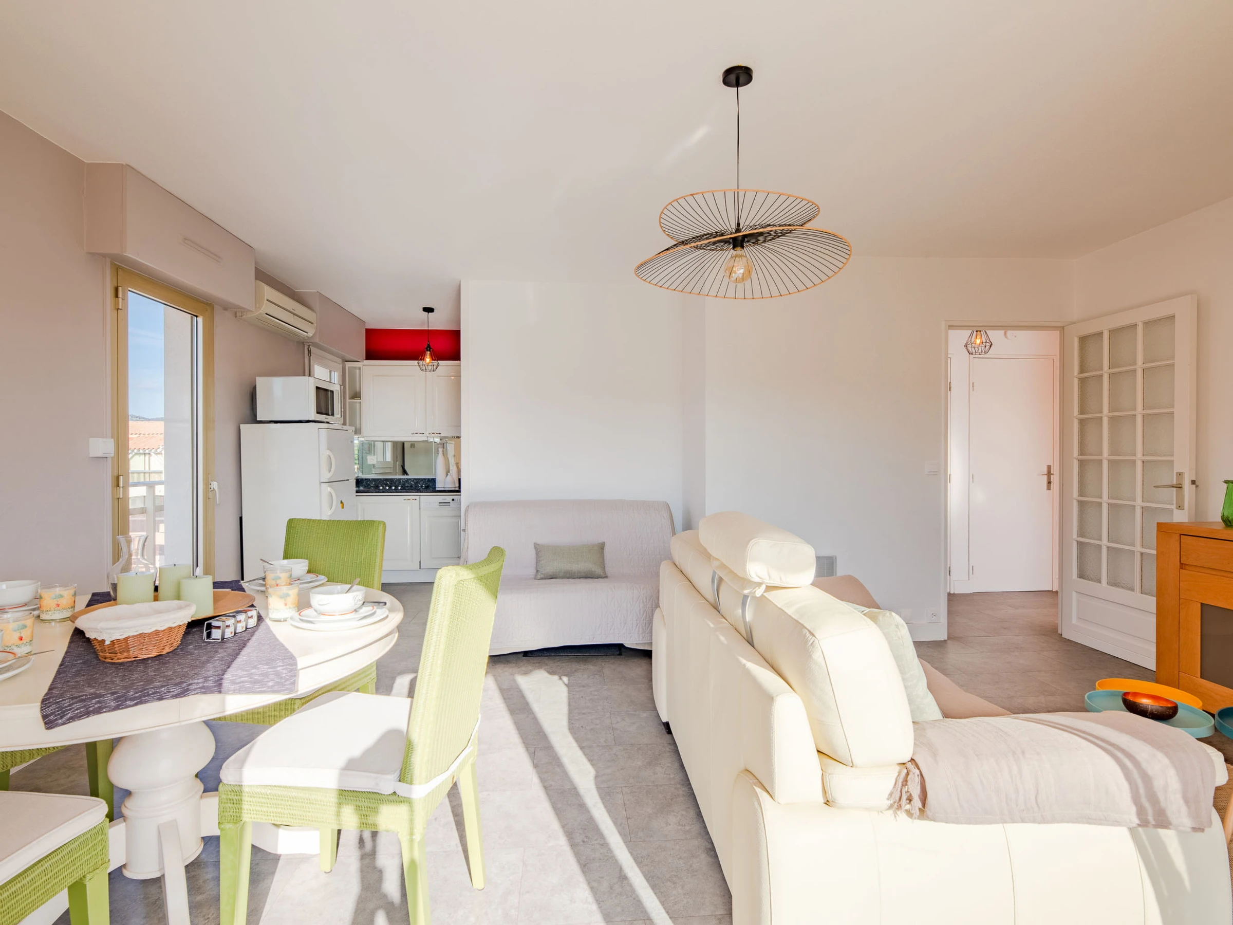 2-Zimmer-Wohnung 50 m2 im 4. Stock, Südwestlage. Schön und modern eingerichtet: Wohn-/Esszimmer, Fenster zum Hof mit 1 Diwanbett (140 cm, Länge 190 cm), TV (Flachbildschirm), elektrischem Rollladen. Ausgang zum Balkon. 1 Zimmer mit begehbarem Kleiderschrank Richtung Süden mit 1 Doppelbett (160 cm, Länge 200 cm), elektrischem Rollladen. Kochnische (Backofen, Geschirrspüler, 4 Induktionskochplatten, Toaster, Wasserkocher, Mikrowelle, Tiefkühler, elektrische Kaffeemaschine). Dusche, sep. WC. Klimaanlage. Balkon, Südlage und Westlage. Balkonmöbel. Seitliche Sicht auf das Meer. Zur Verfügung: Waschmaschine, Wäschetrockner, Bügeleisen. Internet (WLAN, extra). Parkplatz Nr. 127 (überdacht). Bitte beachten: Nichtraucher-Unterkunft. Rauchmelder. Inserat einer Privatperson nach Artikel 155, IV, CGI. [hidden]