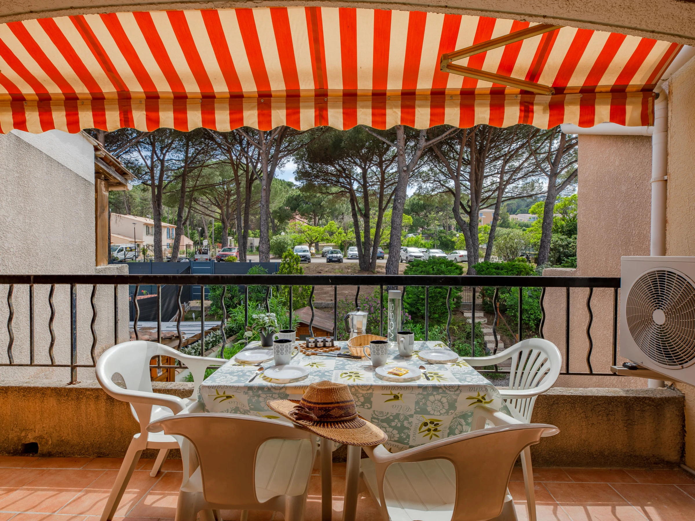 Appartementhaus "Le Soleil d'or 2", auf 2 Stockwerken. Im Ortsteil Nartelle, ausserhalb des Ortes, 3.5 km vom Zentrum von Sainte Maxime, ruhige Lage, verkehrsberuhigte Zone, 240 m vom Meer, 240 m vom Strand, in einer Sackgasse. Parkplatz. Supermarkt 3.5 km, Restaurant 250 m, Bäckerei 3.5 km, Bushaltestelle 300 m, Sandstrand "Nartelle" 240 m, Thermalbad "Thalasso Spa des Issambres" 4 km. Sporthafen 3.5 km, Golfplatz (18 Loch) 4.5 km, Tennis 2 km. Nahe gelegene Sehenswürdigkeiten: Aqualand waterpark 5 km, Saint-Tropez/Ramatuelle 18 km, Port-Grimaud 13 km, Navette / shuttle boat St-Tropez 15min 3.5 km, Gorges du Verdon 95 km. Wandergebiete: Massif des Maures 5 km, Massif de l'Esterel 30 km. Bitte beachten: kein Fahrstuhl vorhanden.