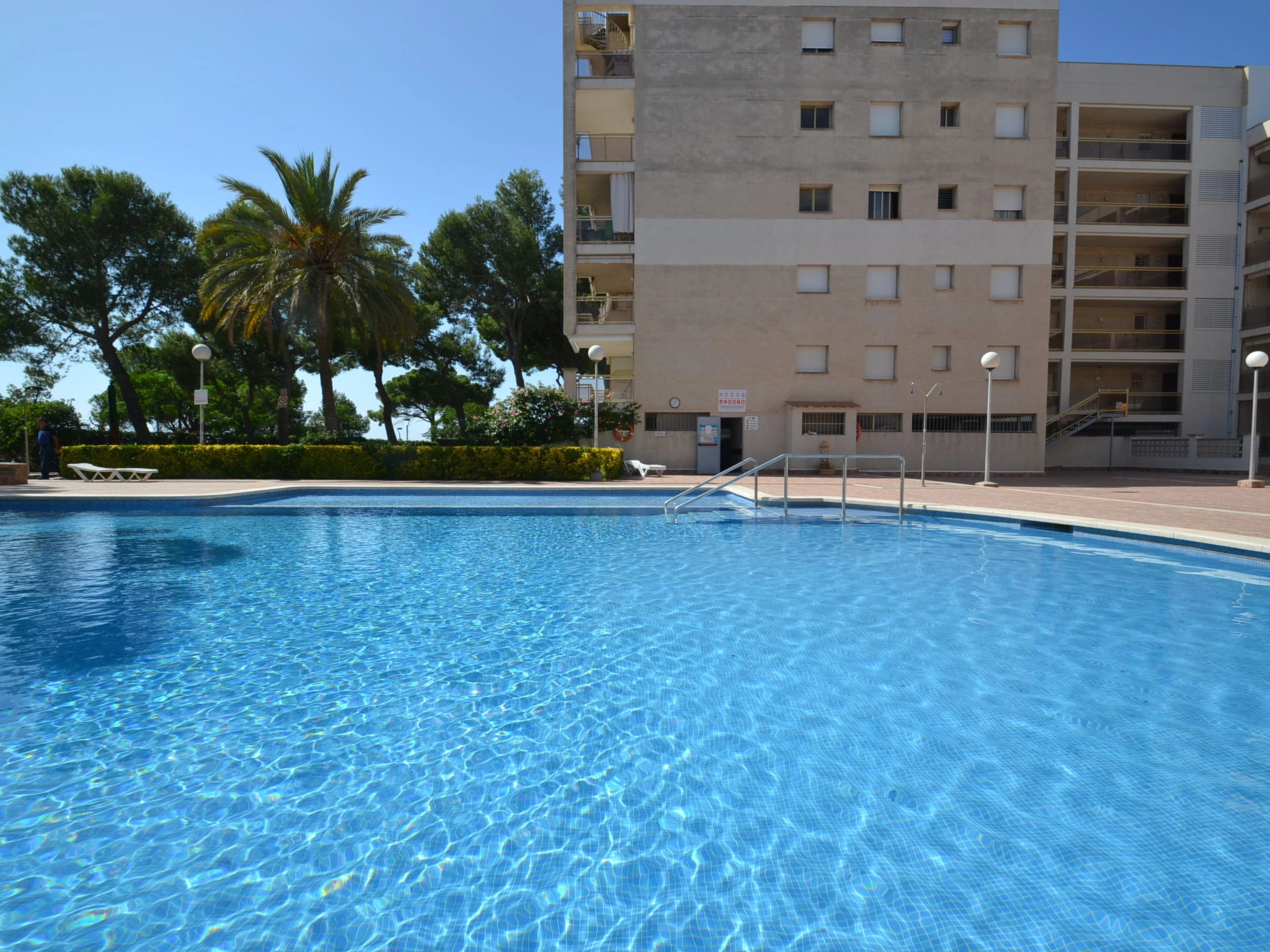 Salou: Einfaches, komfortables Appartementhaus "Cala Dorada". 200 m vom Meer, 200 m vom Strand. Zur Mitbenutzung: Garten, Schwimmbad (20 x 10 m, 80 - 200 cm tief, saisonale Verfügbarkeit: [hidden] - [hidden] Kinderbecken, Aussendusche, Kinderspielplatz. Im Hause: Fahrstuhl. Einkaufsgeschäft 250 m, Supermarkt 300 m, Restaurant, Bar, Bushaltestelle 150 m, Sandstrand 200 m. Golfplatz (18 Loch) 3 km. Nahe gelegene Sehenswürdigkeiten: Parque temático Port Aventura 2 km, Parque aquático Aquopolis 5 km, Spa Aquum 5 km, Karting 2 km, Paintball 8 km. Der Besitzer akzeptiert keine Jugendgruppen.