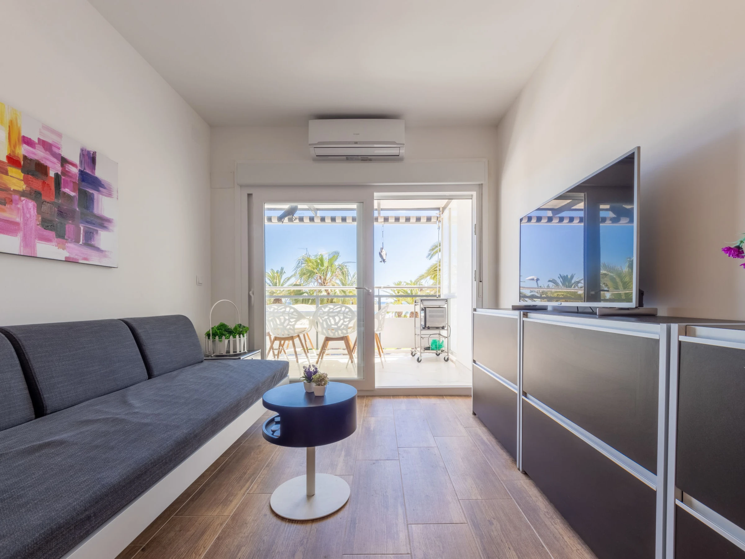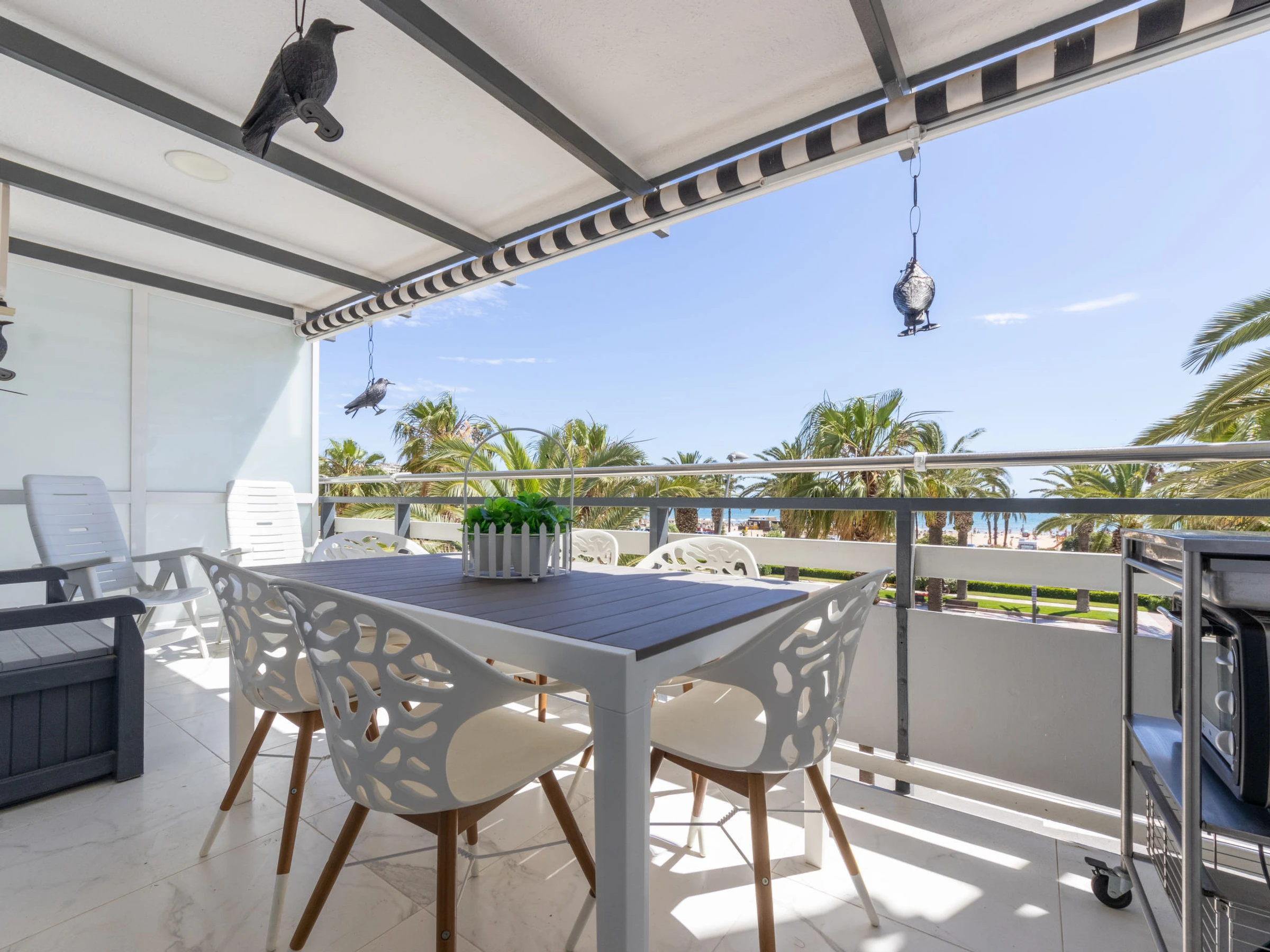 "Rodas", 3-Zimmer-Wohnung 55 m2 im 2. Stock. Vollständig renoviert im Jahre 2022, komfortabel und modern eingerichtet: Wohn-/Esszimmer mit Digital-TV und Klimaanlage. Ausgang zum Balkon. 1 Zimmer mit 2 Betten (90 cm, Länge 200 cm), Ventilator. 1 Zimmer mit 2 Betten (80 cm, Länge 200 cm), Klimaanlage. Offene Küche (Backofen, Geschirrspüler, 2 Glaskeramikplatten, Toaster, Wasserkocher, Mikrowelle, elektrische Kaffeemaschine, Kapseln für die Kaffeemaschine (Dolce Gusto) extra) mit Boiler (50 Liter). Dusche/WC. Heizung nicht in allen Räumen. Terrasse. Terrassenmöbel. Herrliche Sicht auf das Meer. Zur Verfügung: Waschmaschine, Bügeleisen, Haartrockner. Internet (WLAN, gratis). Bitte beachten: geeignet für Familien. Nichtraucher-Unterkunft. TV nur ES. [hidden] // Reg. Nr.: ESFCTU00004302400009670700000000000000[hidden]-107