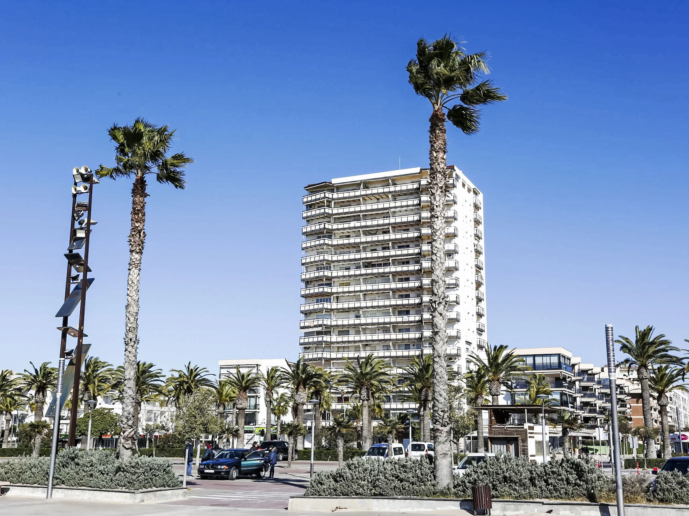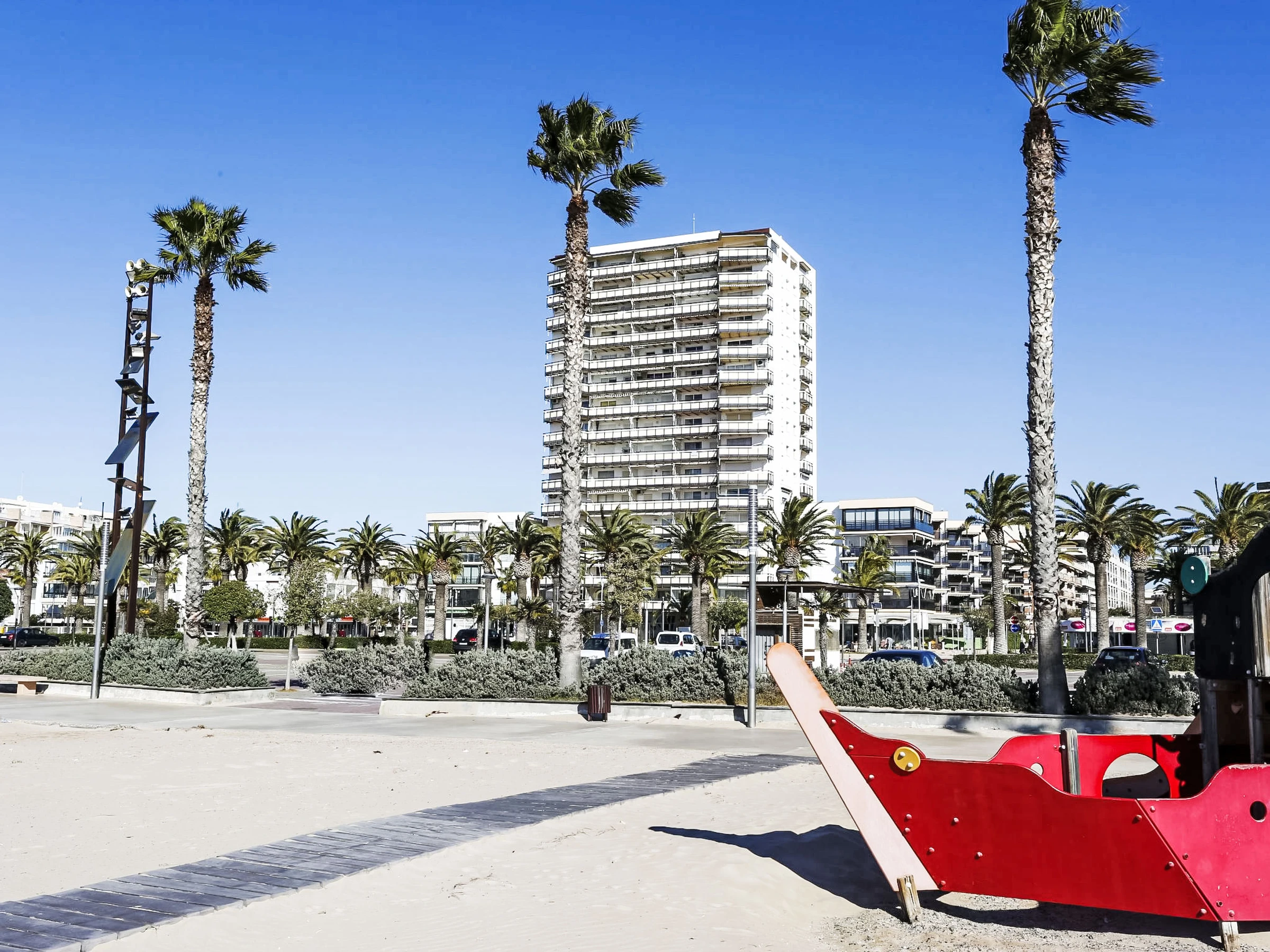 Grosses, schönes Appartementhaus "Rodas". Zentrale Lage, 50 m vom Meer, 50 m vom Strand. Im Hause: Fahrstuhl. Einkaufsgeschäft 10 m, Lebensmittelgeschäft 50 m, Supermarkt 100 m, Restaurant, Bar 50 m, Bushaltestelle "Parada Plana monumento Jaime 1" 100 m, Bahnstation "Estación Tarragona" 10 km. Nahe gelegene Sehenswürdigkeiten: Port Aventura 2 km.