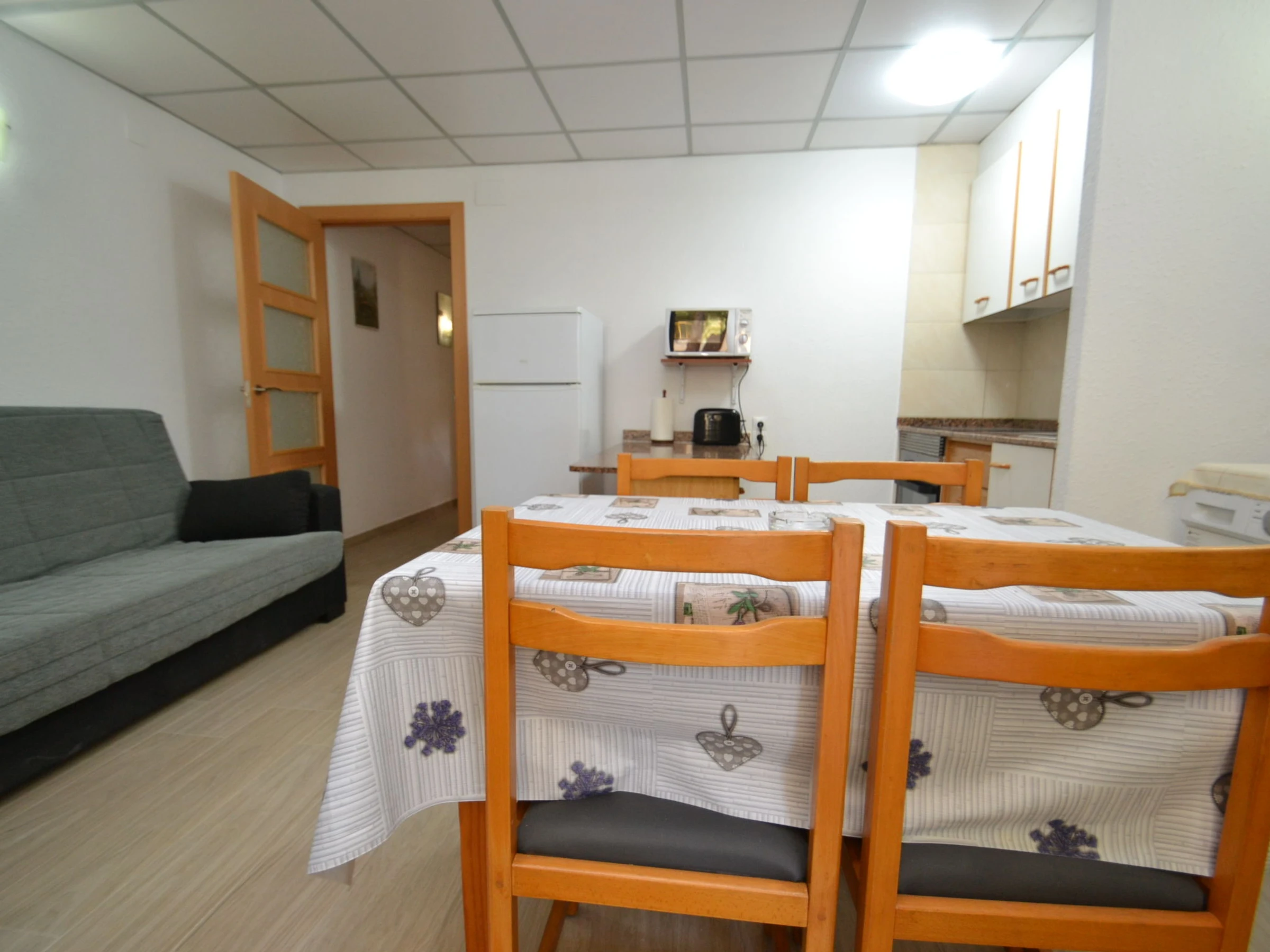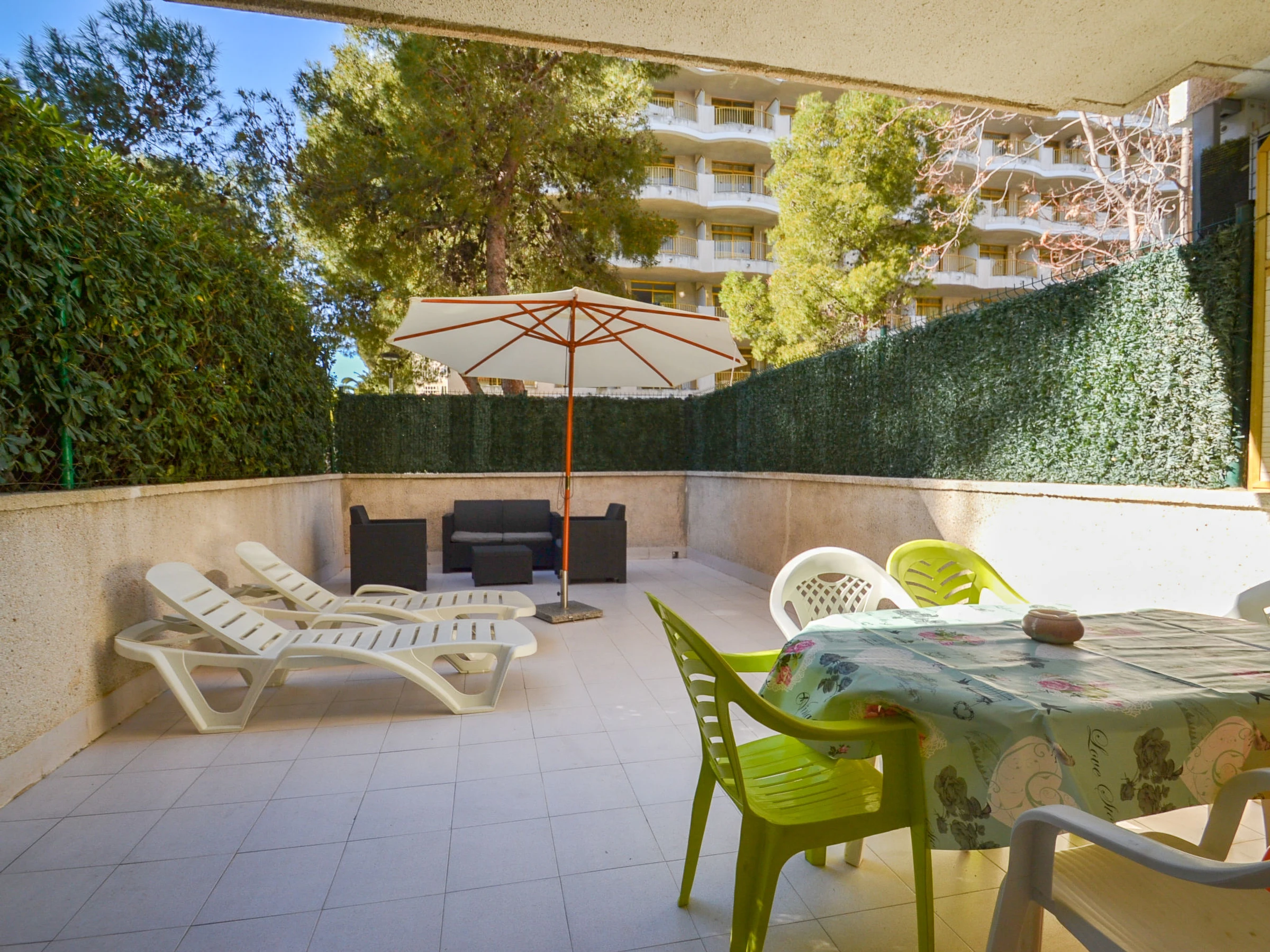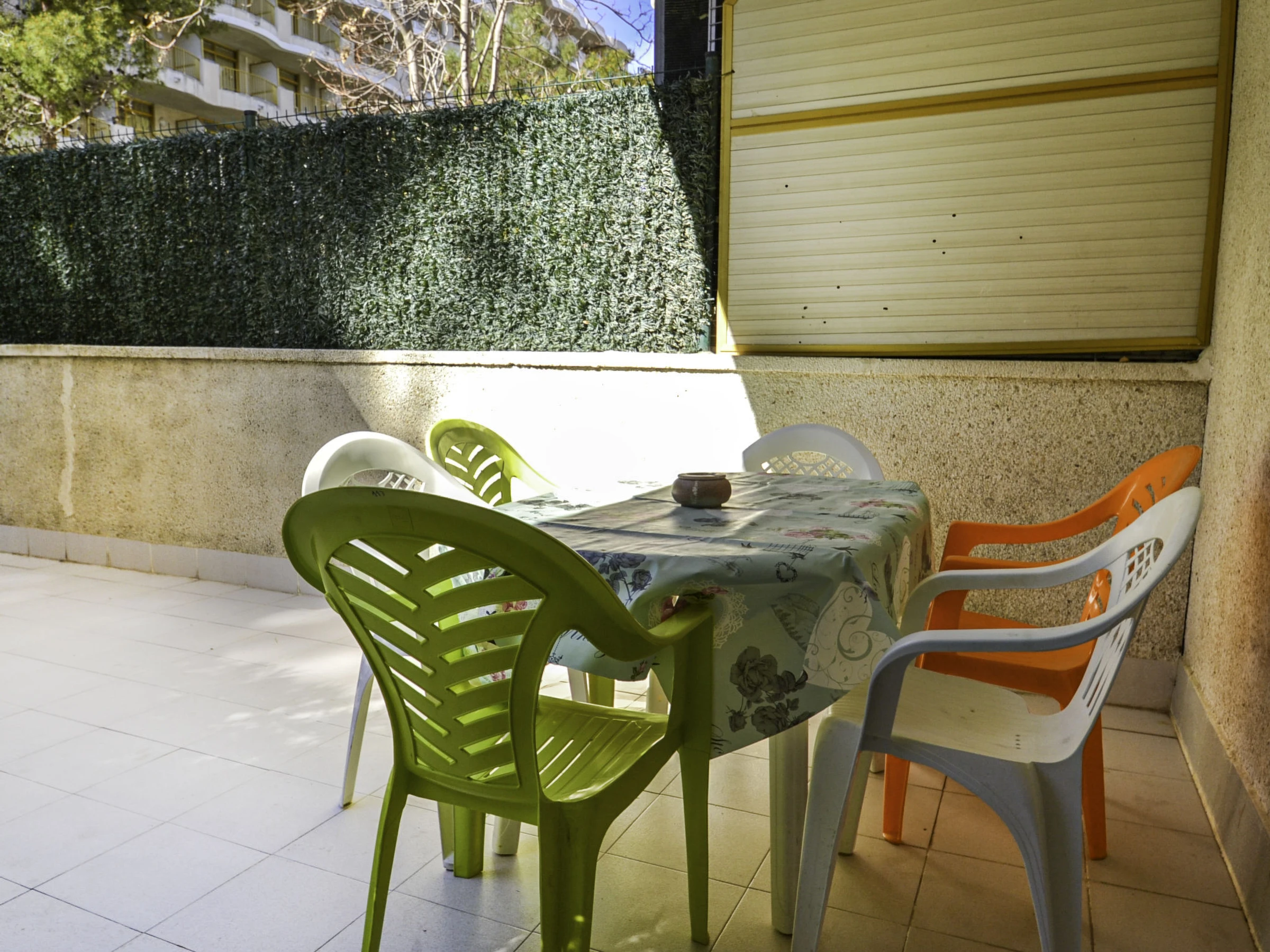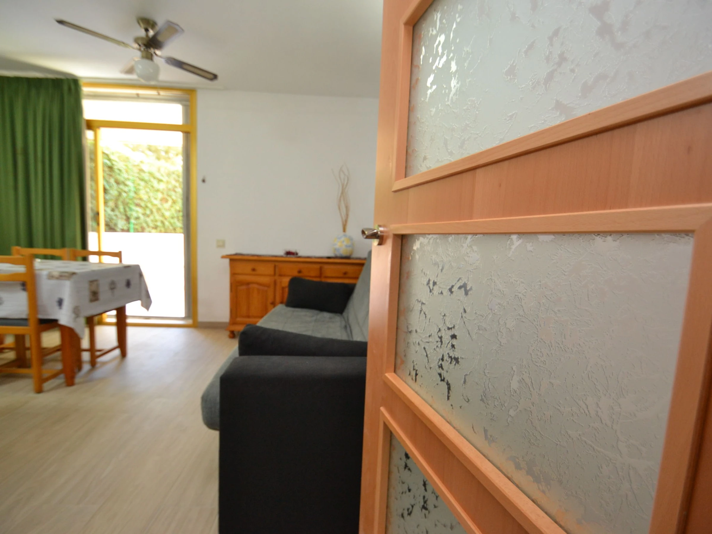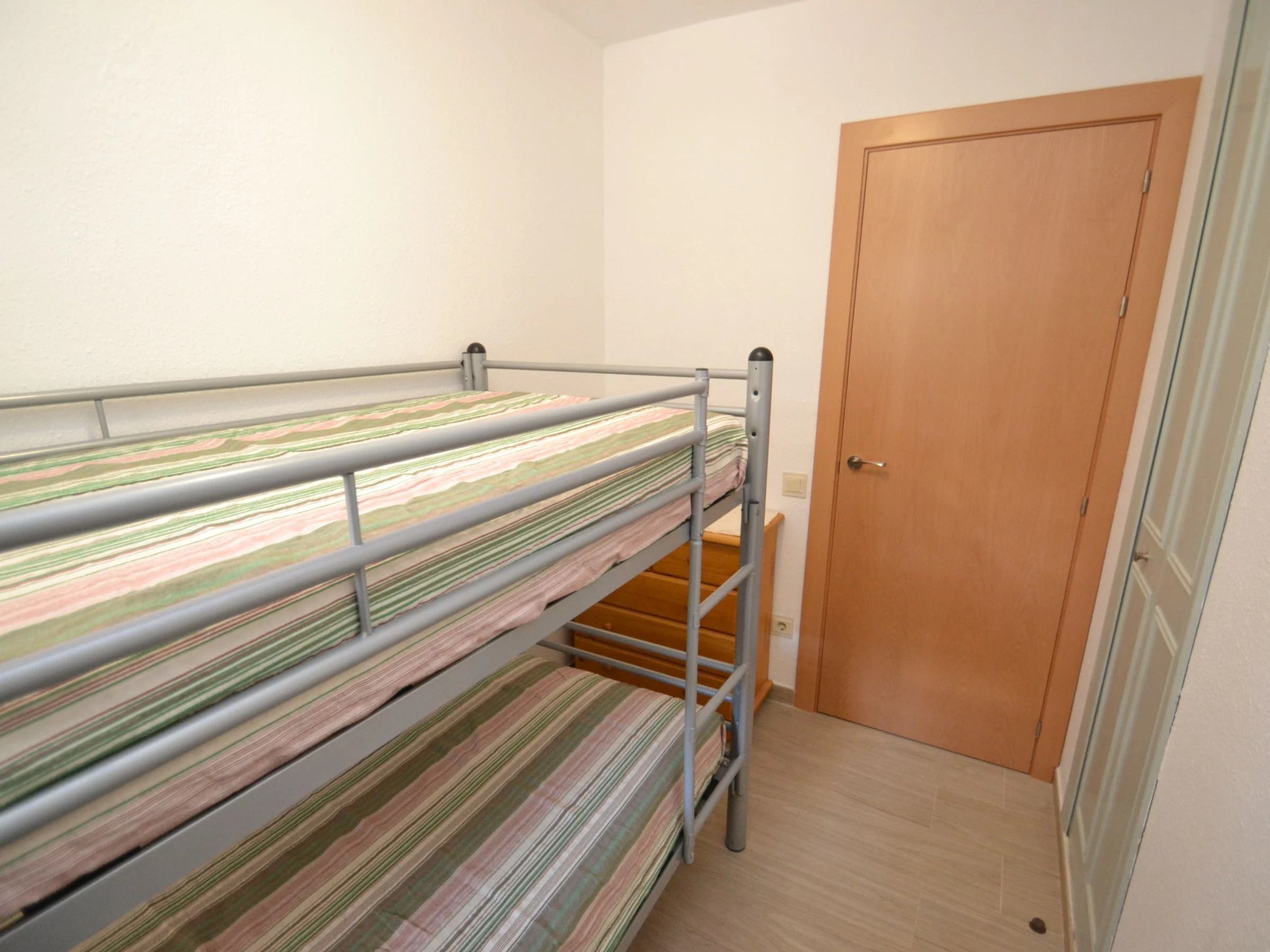 "Catalunya 7", 3-Zimmer-Wohnung 50 m2 im 1. Stock. Einfach und zweckmässig eingerichtet: Wohn-/Esszimmer mit Schiebetür mit 1 Diwanbett (130 cm, Länge 190 cm), Digital-TV und Ventilator. Ausgang zur Terrasse. 1 Zimmer mit 2 Betten (90 cm, Länge 190 cm). Ausgang zur Terrasse. 1 Zimmer mit 1 x 2 Etagenbetten (90 cm, Länge 190 cm). Ausgang zur Terrasse. Offene Küche (Backofen, 4 Glaskeramikplatten, Toaster, Wasserkocher, Mikrowelle). Bad/WC. Keine Heizmöglichkeit. Terrasse 30 m2. Terrassenmöbel. Zur Verfügung: Waschmaschine, Bügeleisen, Haartrockner. [hidden] // Reg. Nr.: ESFCTU00004302400041221700000000000000000[hidden]1