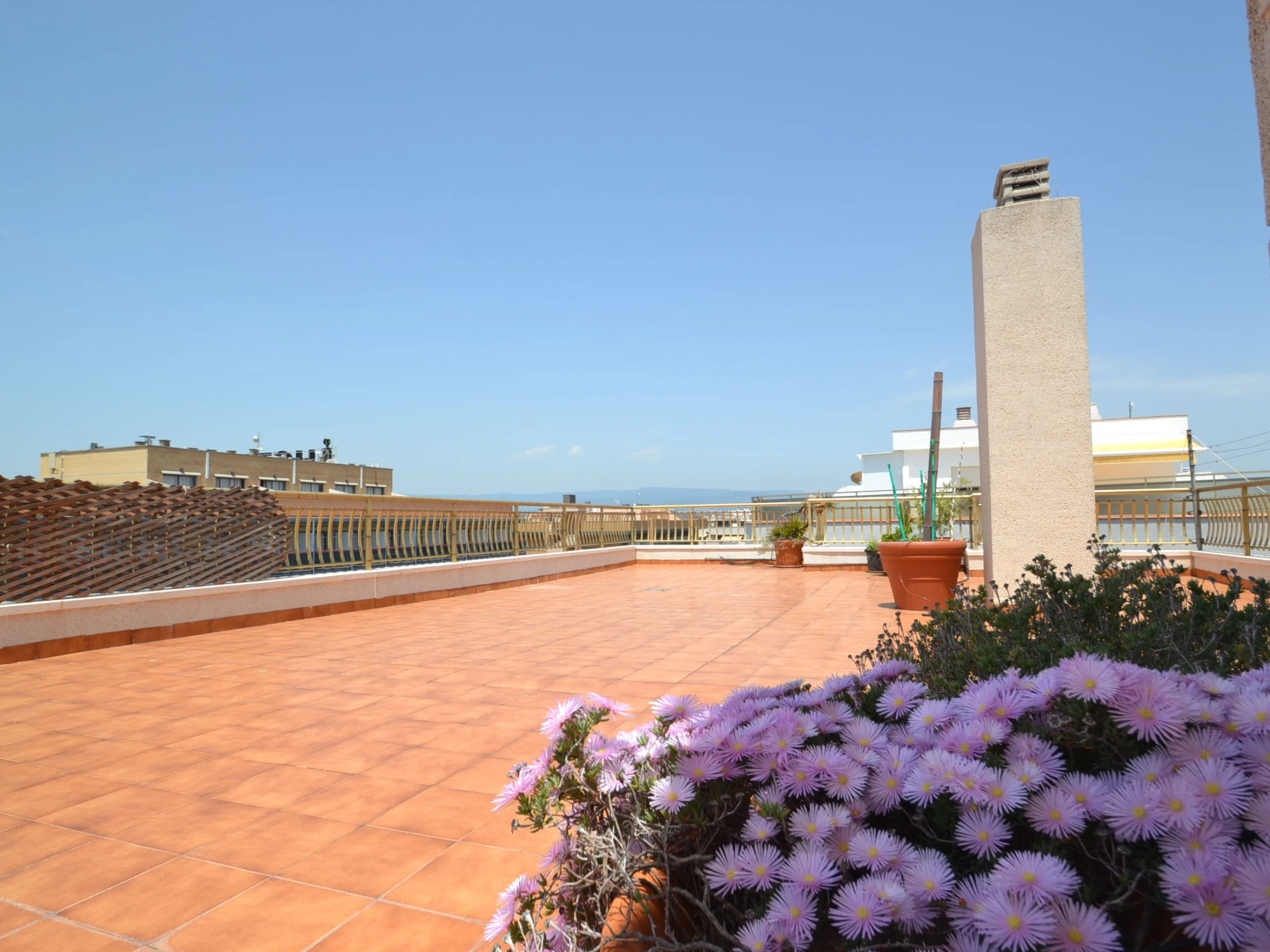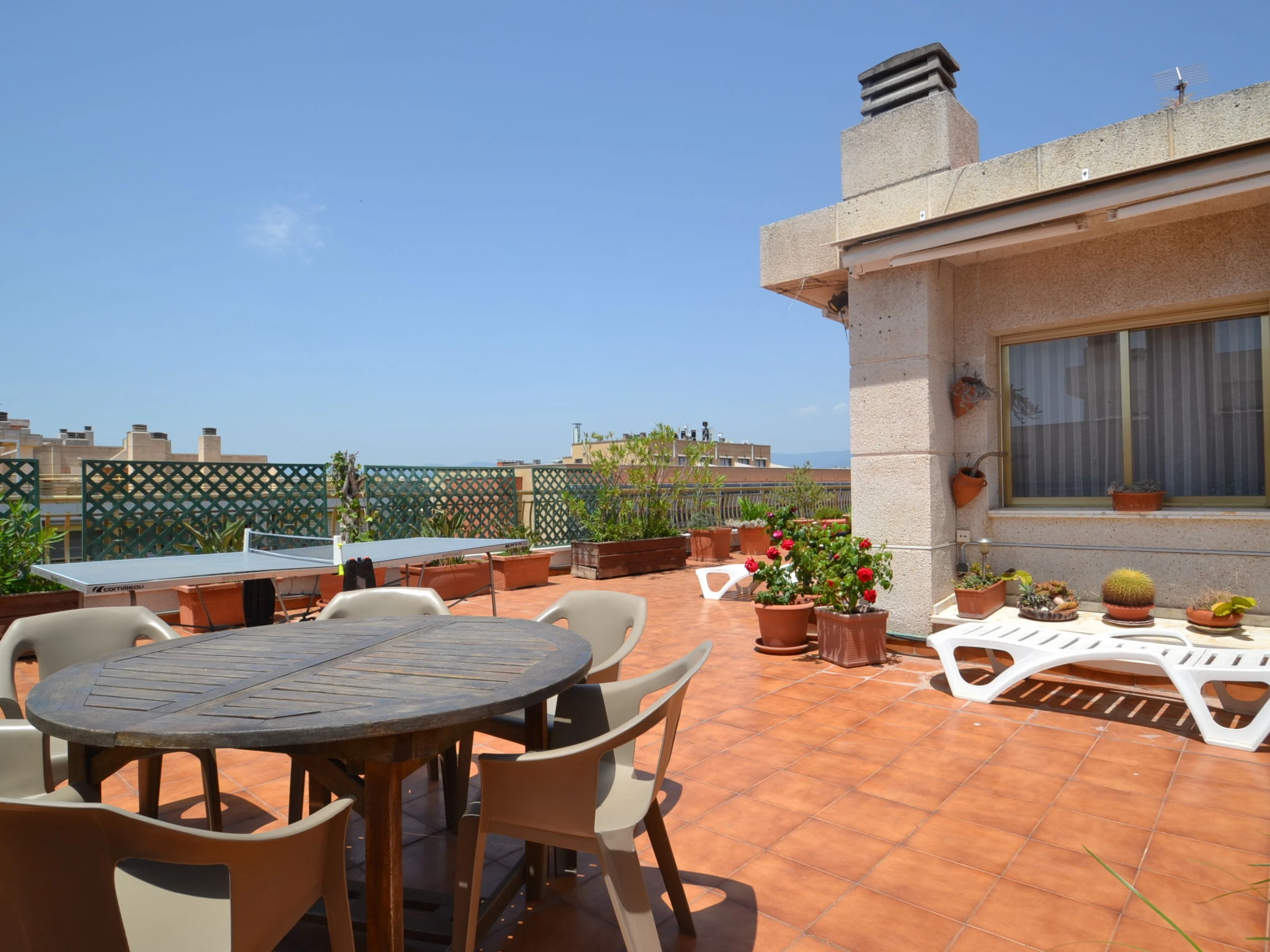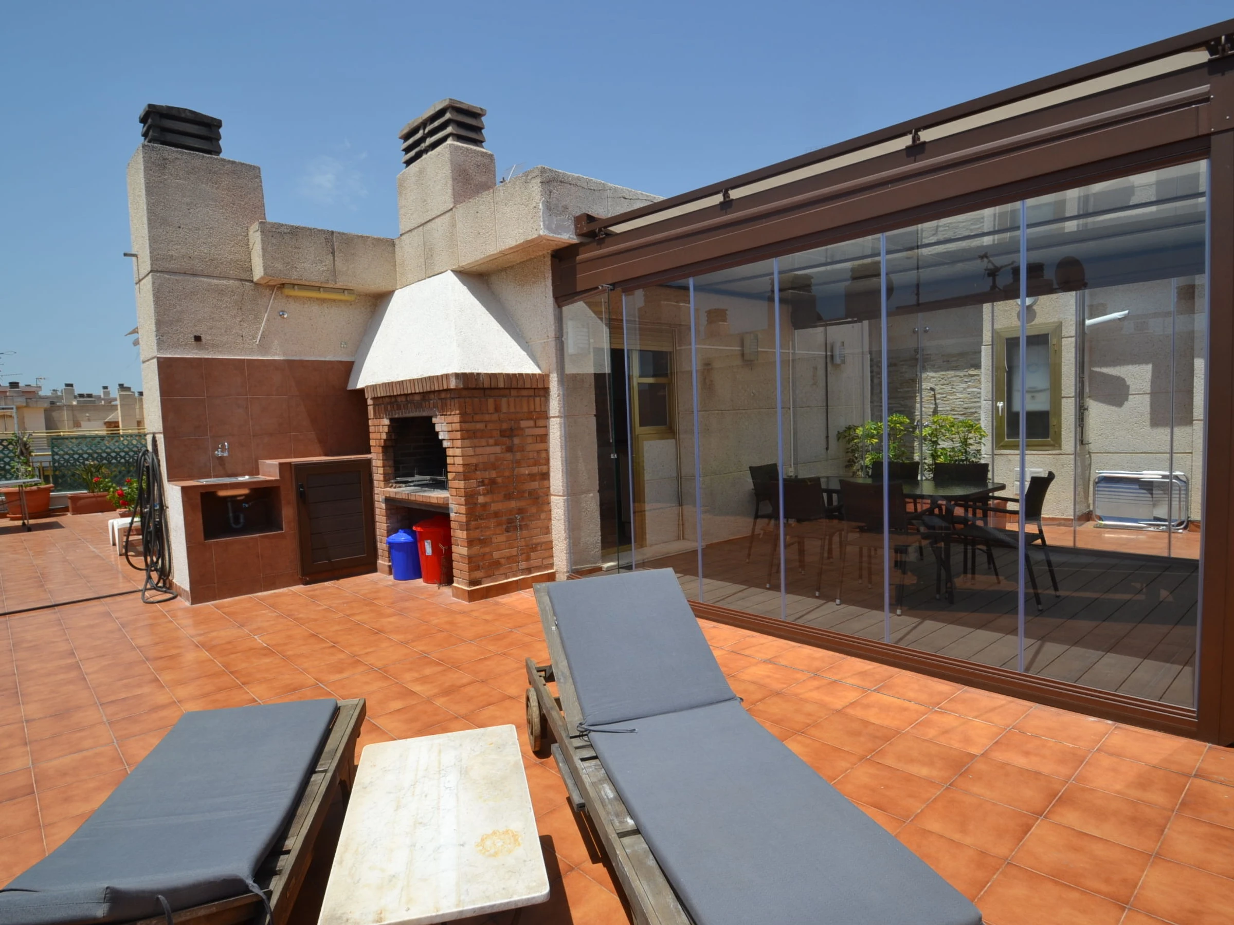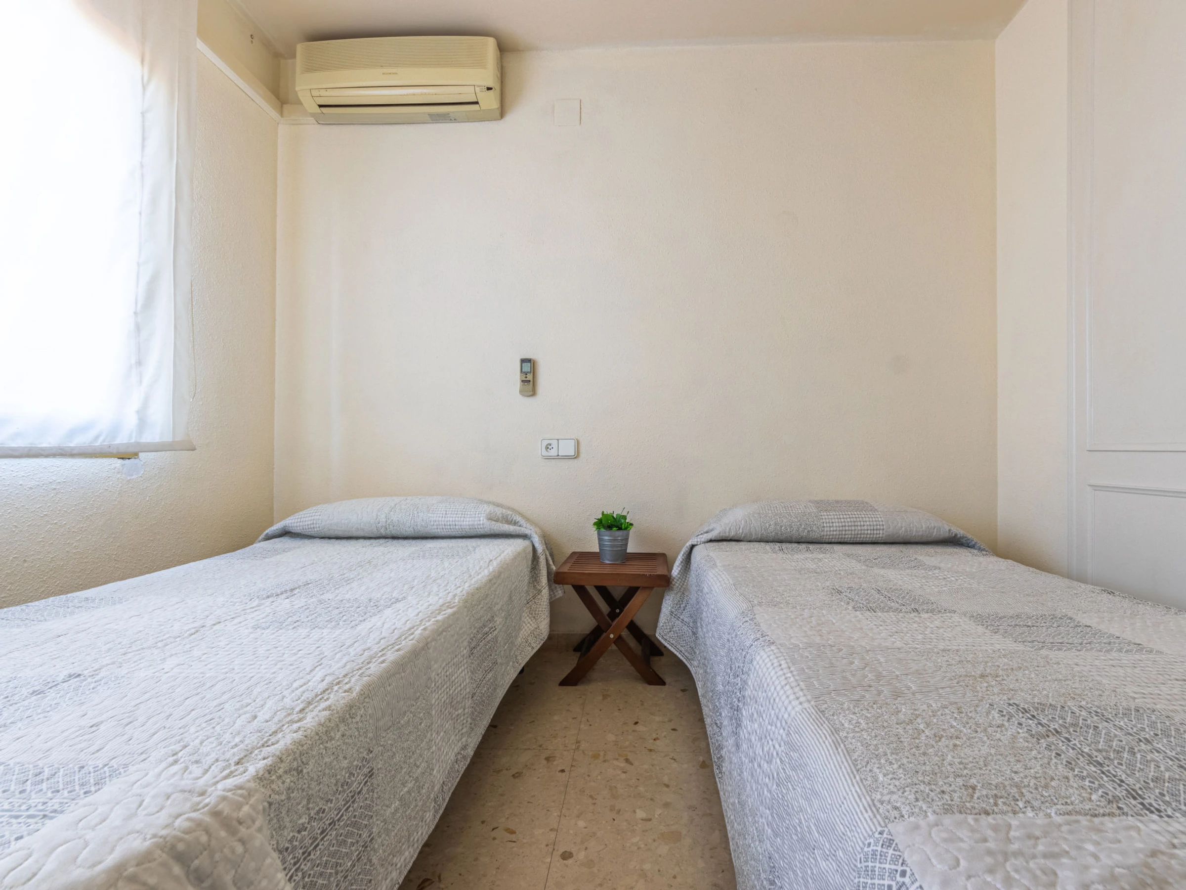 "Indasol", 4-Zimmer-Attikawohnung 80 m2. Objekt geeignet für 6 Erwachsene. Zweckmässig und komfortabel eingerichtet: Wohn-/Esszimmer mit 1 Doppeldiwanbett, Sat-TV und Digital-TV. Ausgang zur Terrasse. 1 Zimmer mit 1 franz. Bett (135 cm, Länge 190 cm), Klimaanlage und Ventilator. Ausgang zur Terrasse. 2 Zimmer, jedes Zimmer mit 2 Betten (90 cm, Länge 190 cm), Klimaanlage und Ventilator. Küche (4 Kochplatten, Backofen, Toaster, Wasserkocher, Mikrowelle, elektrische Kaffeemaschine). Ausgang zur Terrasse. Dusche/WC, sep. WC. Heizung nicht in allen Räumen. Grosse Terrasse 200 m2. Terrassenmöbel, Gartengrill, Liegestühle. Sicht auf die Stadt. Zur Verfügung: Waschmaschine, Bügeleisen, Haartrockner. Internet (WLAN, gratis). Bitte beachten: Nichtraucher-Unterkunft. [hidden] // Reg. Nr.: ESFCTU00004302400044917600000000000000000[hidden]5