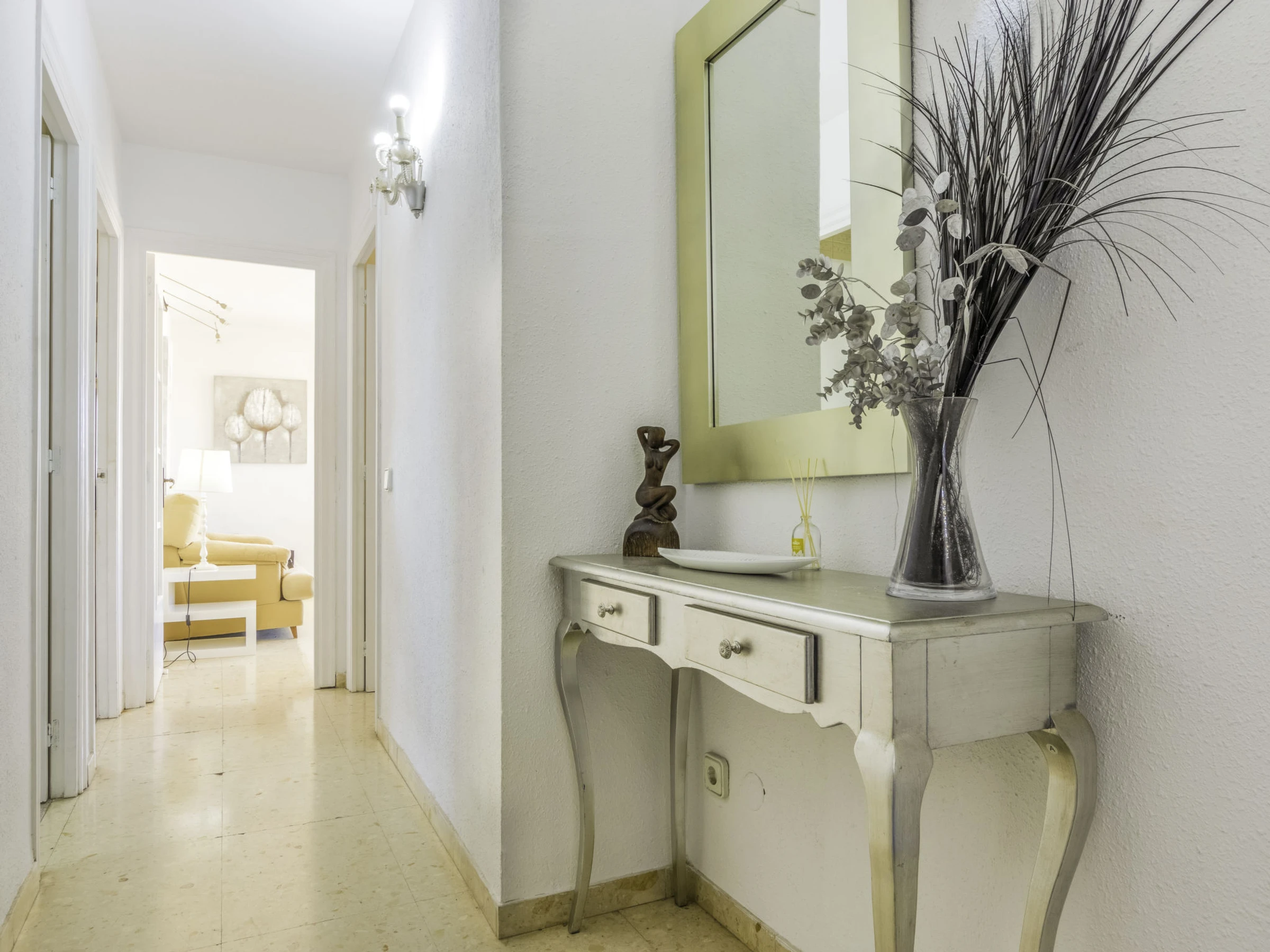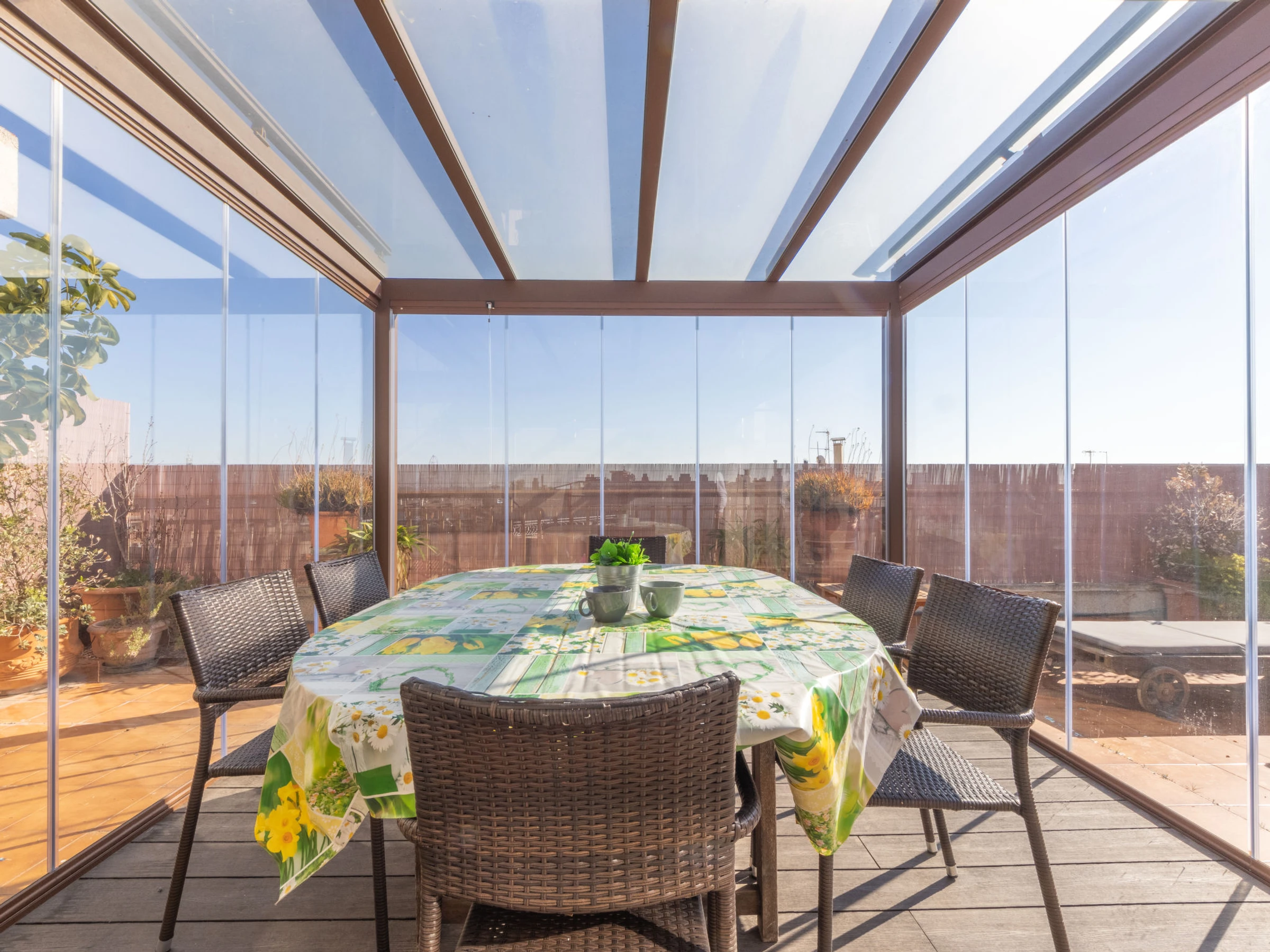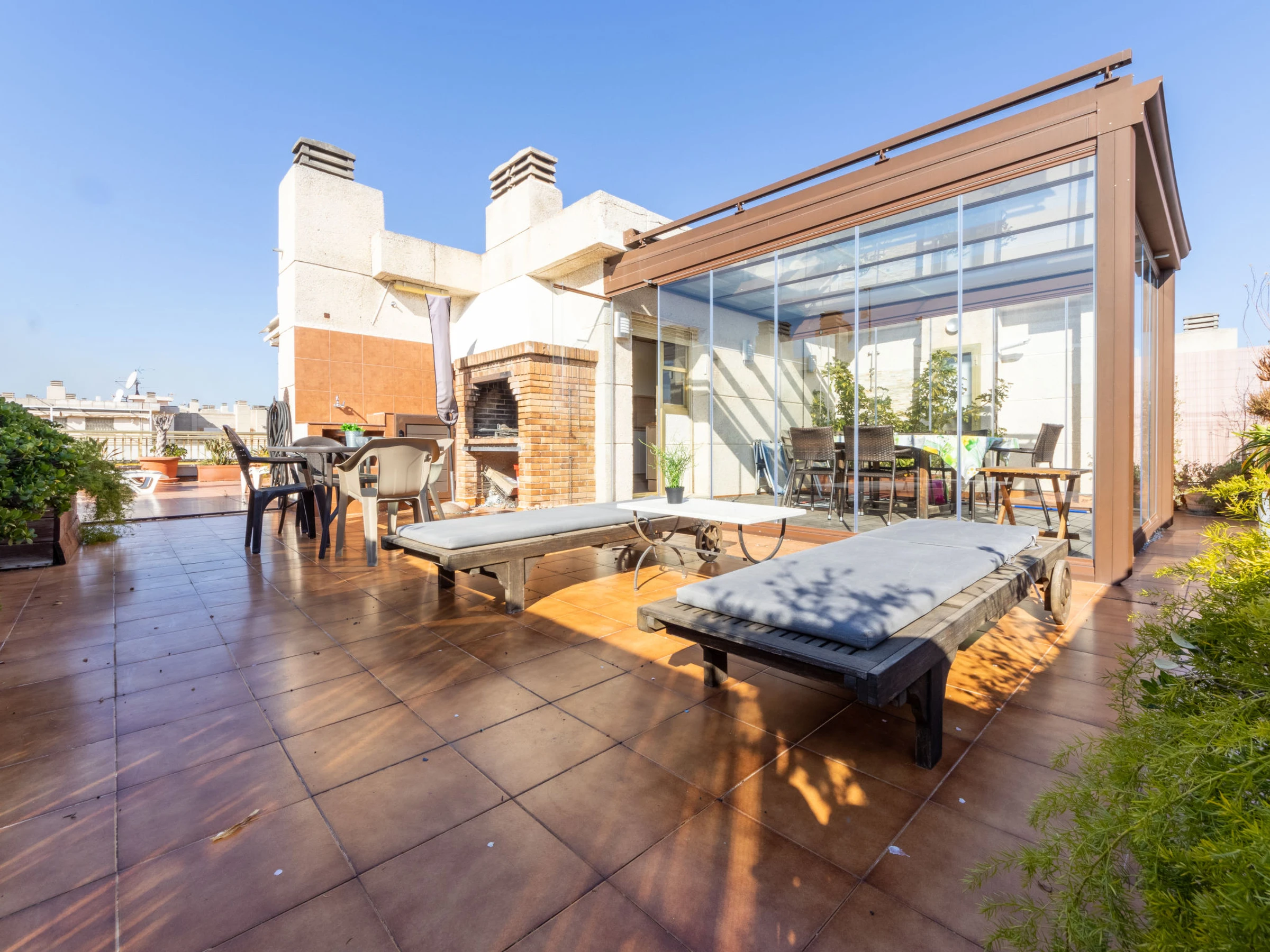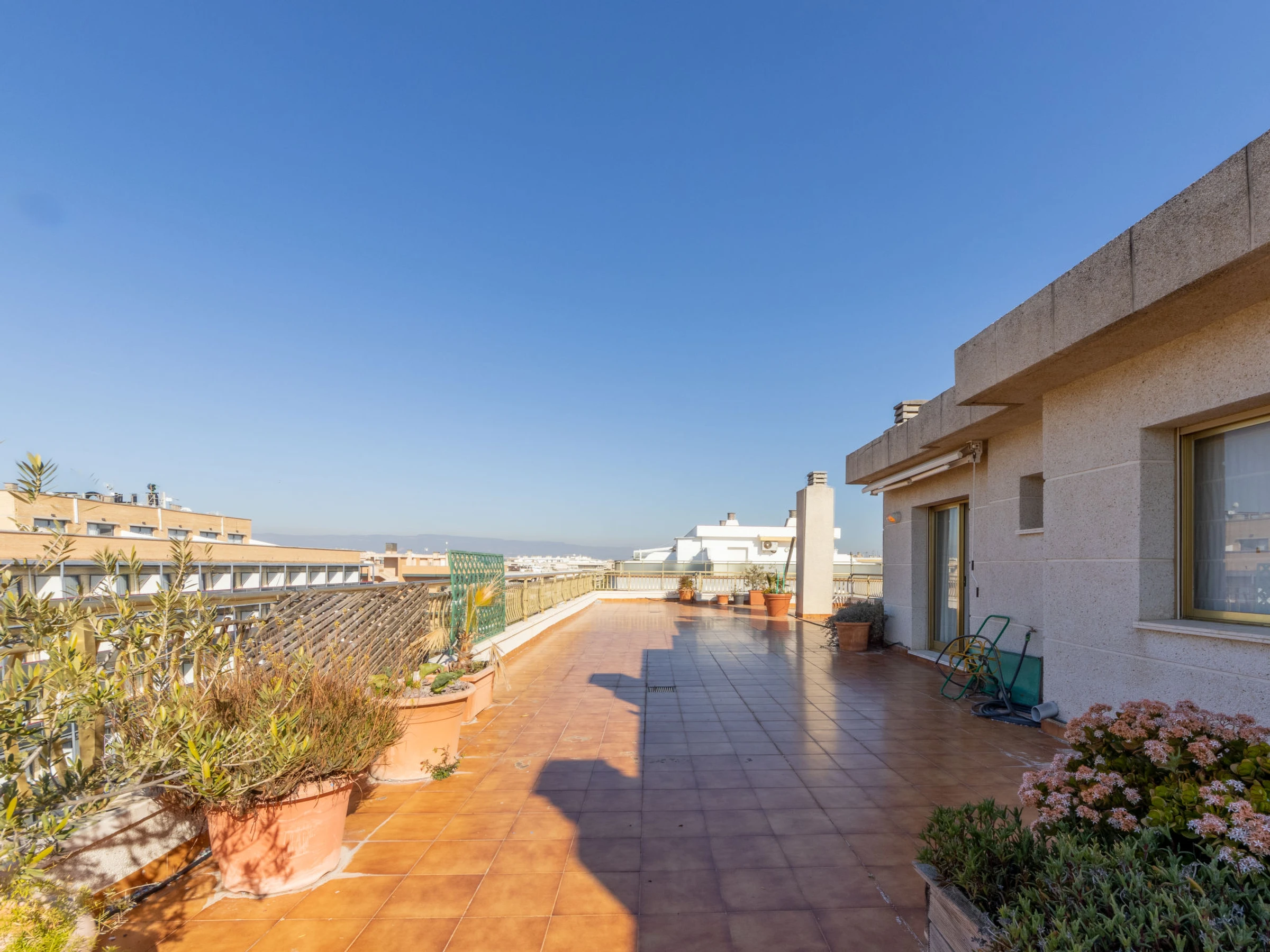 "Indasol", 4-Zimmer-Attikawohnung 80 m2. Objekt geeignet für 6 Erwachsene. Zweckmässig und komfortabel eingerichtet: Wohn-/Esszimmer mit 1 Doppeldiwanbett, Sat-TV und Digital-TV. Ausgang zur Terrasse. 1 Zimmer mit 1 franz. Bett (135 cm, Länge 190 cm), Klimaanlage und Ventilator. Ausgang zur Terrasse. 2 Zimmer, jedes Zimmer mit 2 Betten (90 cm, Länge 190 cm), Klimaanlage und Ventilator. Küche (4 Kochplatten, Backofen, Toaster, Wasserkocher, Mikrowelle, elektrische Kaffeemaschine). Ausgang zur Terrasse. Dusche/WC, sep. WC. Heizung nicht in allen Räumen. Grosse Terrasse 200 m2. Terrassenmöbel, Gartengrill, Liegestühle. Sicht auf die Stadt. Zur Verfügung: Waschmaschine, Bügeleisen, Haartrockner. Internet (WLAN, gratis). Bitte beachten: Nichtraucher-Unterkunft. [hidden] // Reg. Nr.: ESFCTU00004302400044917600000000000000000[hidden]5