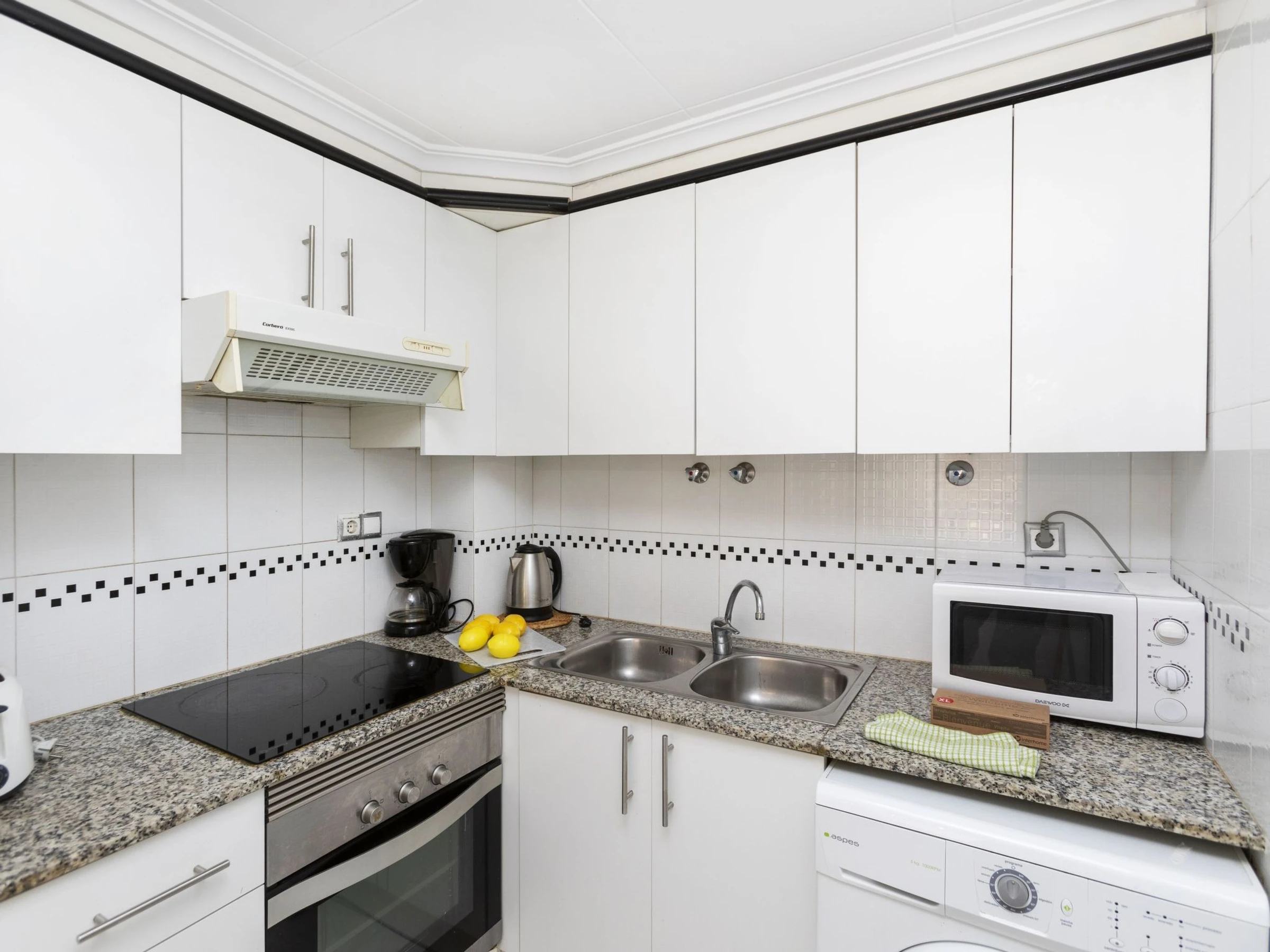 "Jardines Family 204", 3-Zimmer-Wohnung 66 m2 im 2. Stock. Zweckmässig und komfortabel eingerichtet: Wohn-/Esszimmer mit 1 Doppeldiwanbett (135 cm, Länge 190 cm), Klimaanlage und Warmluftheizung. Ausgang zur Terrasse. 1 Zimmer mit 1 franz. Bett (135 cm, Länge 190 cm). 1 Zimmer mit 2 Betten (90 cm, Länge 190 cm). Offene Küche (Backofen, 3 Glaskeramikplatten, Toaster, Wasserkocher, Mikrowelle, Tiefkühler, elektrische Kaffeemaschine). Dusche/WC. Klimaanlage. Terrassenmöbel. Sicht auf die Stadt. Zur Verfügung: Waschmaschine, Safe, Bügeleisen, Haartrockner. Internet (WLAN, gratis). Maximal 1 Haustier/Hund erlaubt. [hidden] // Reg. Nr.: ESFCTU00004302400048586000000000000000000HUTT-[hidden]