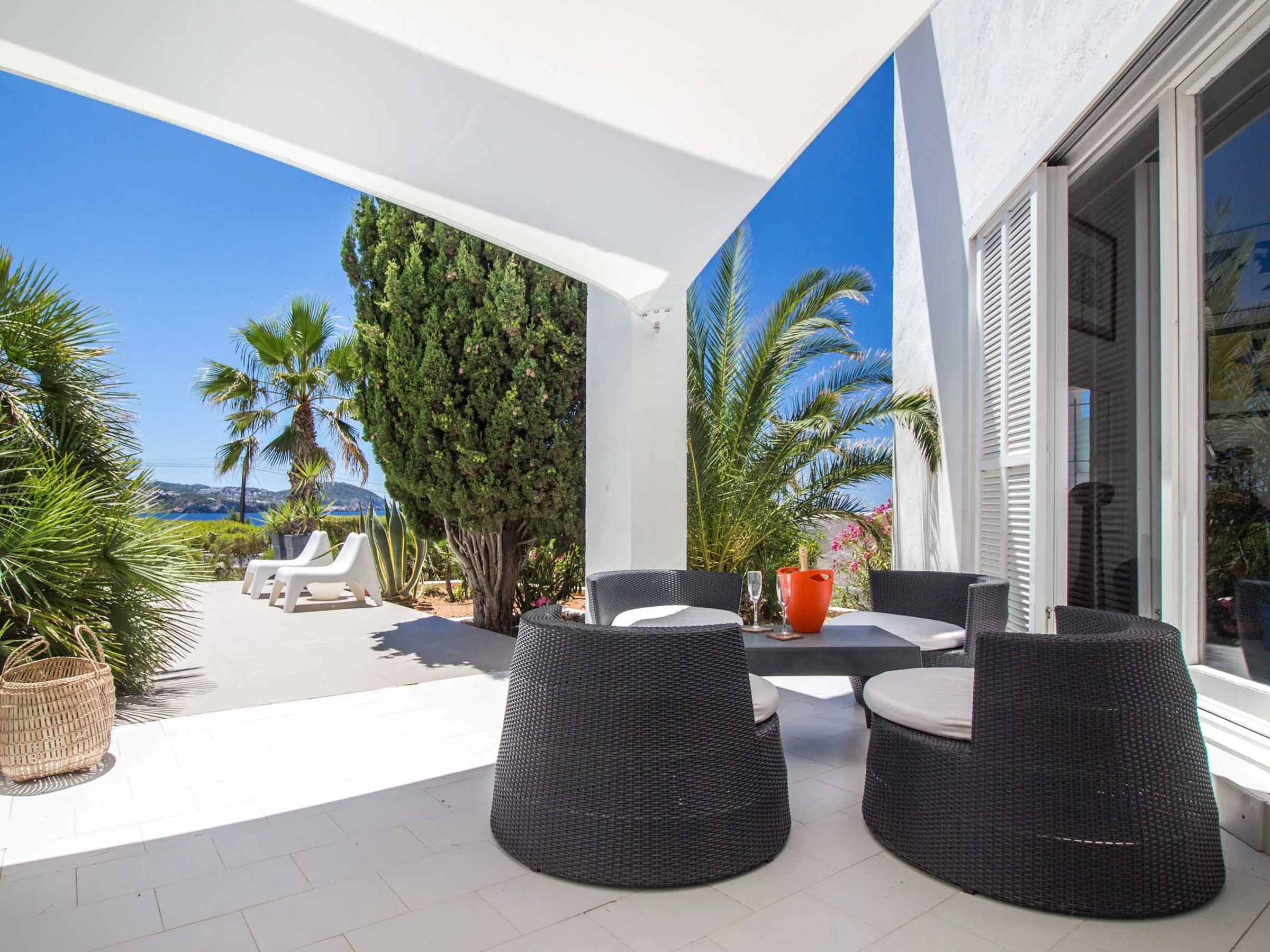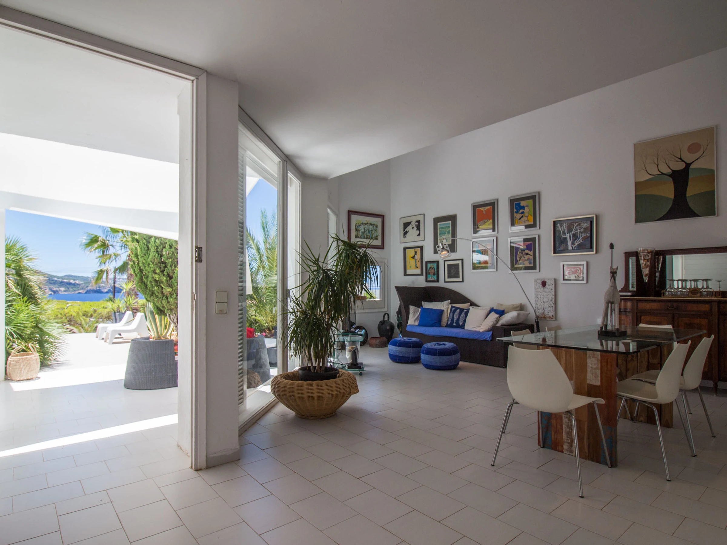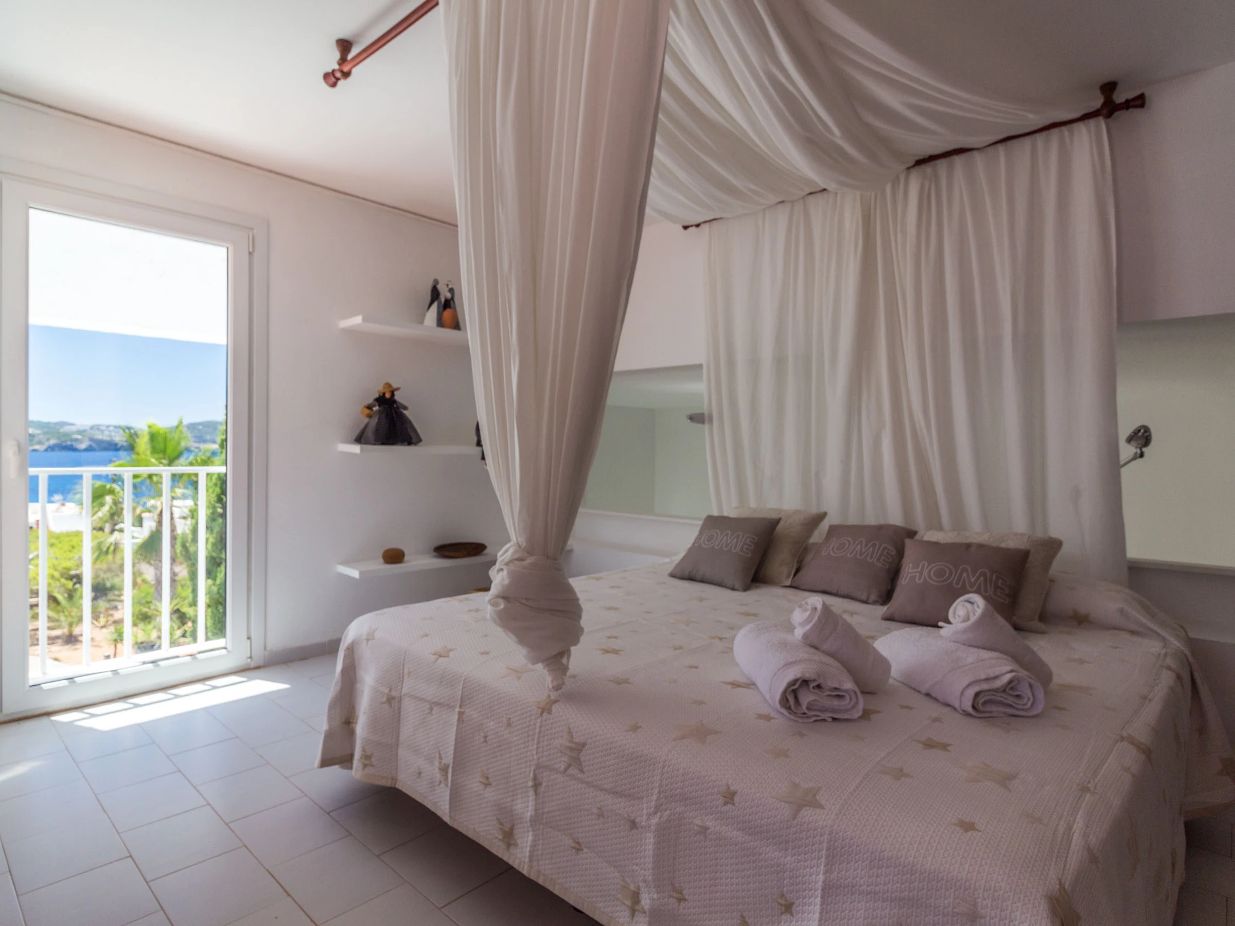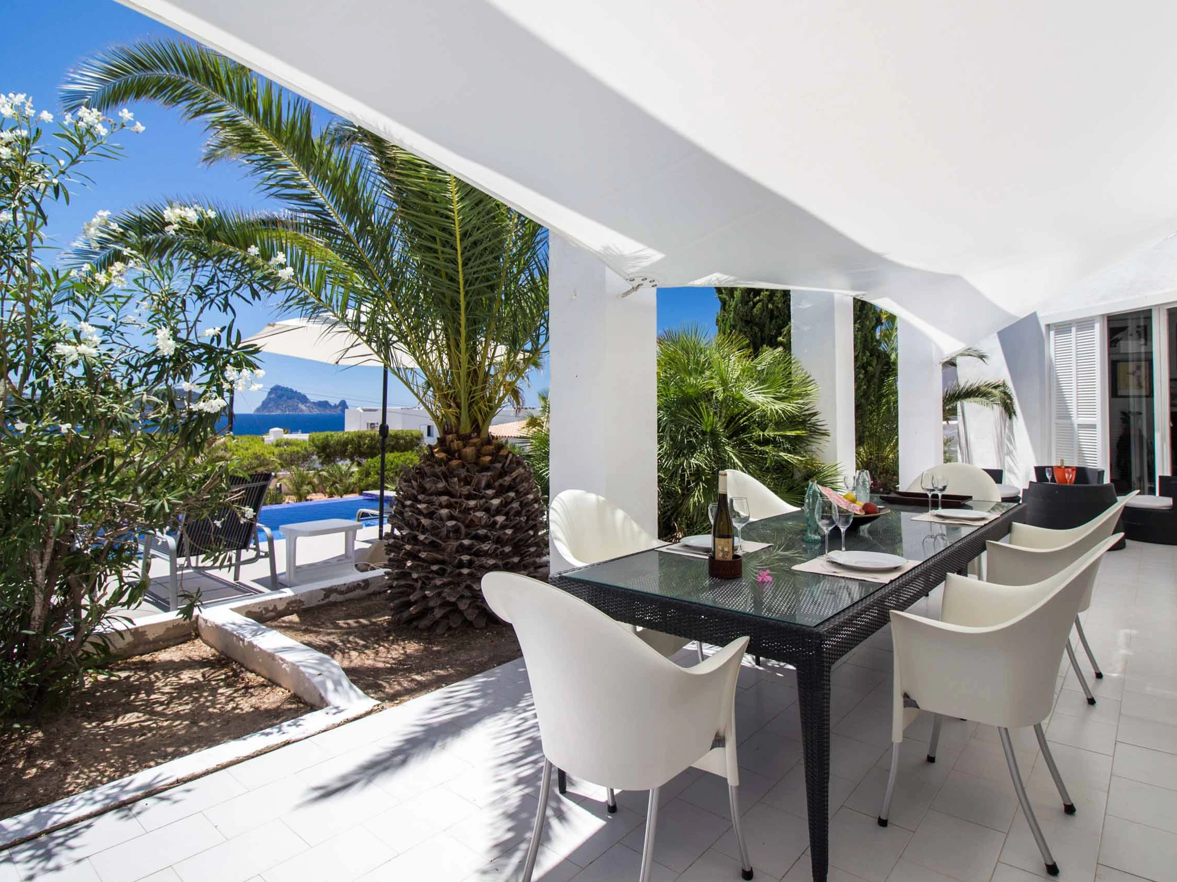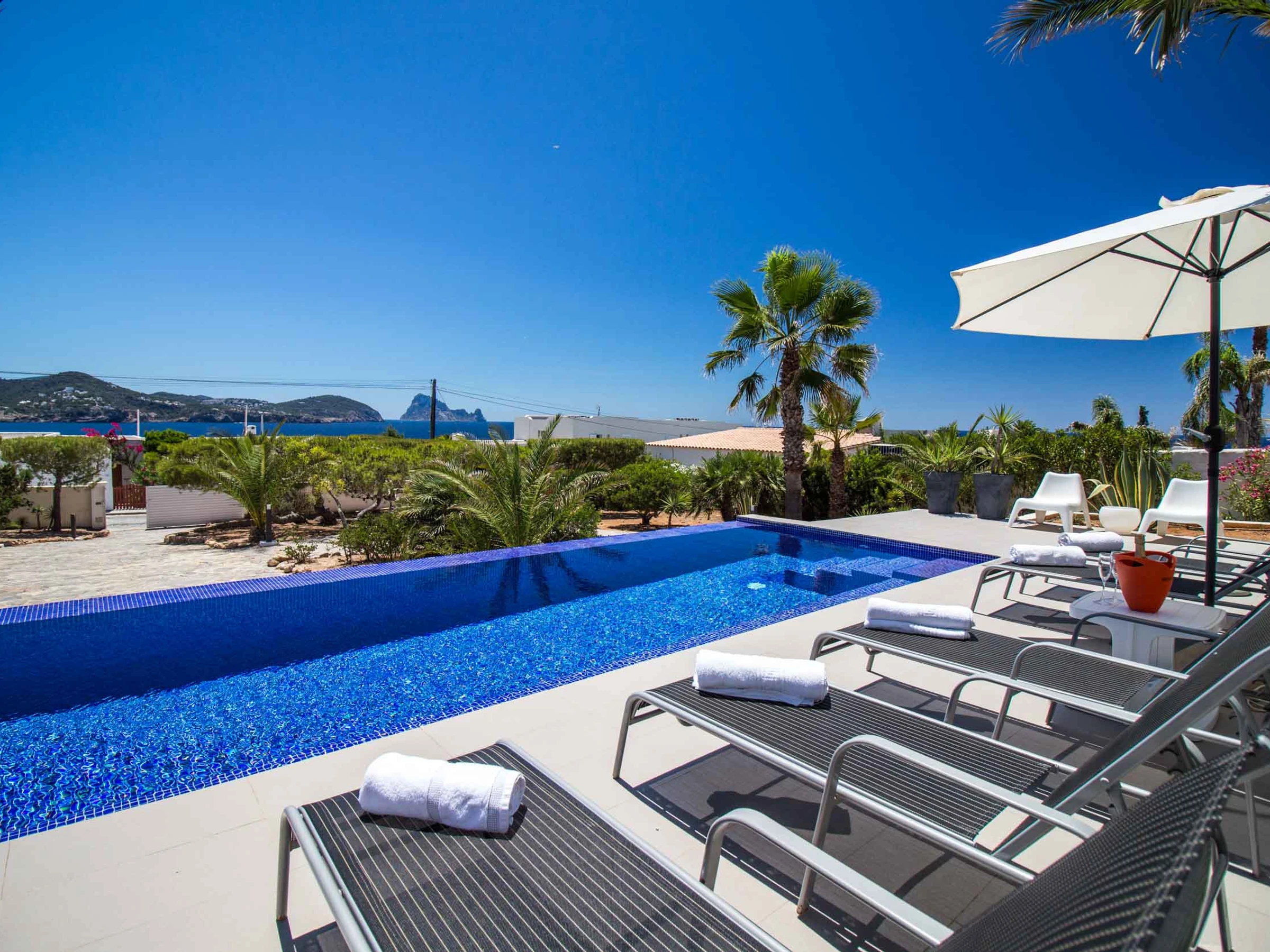 Spektakuläre Aussichten: Genießen Sie atemberaubende Meerblicke und den Blick auf die ikonische Insel Es Vedrá vom Komfort Ihrer Villa aus.