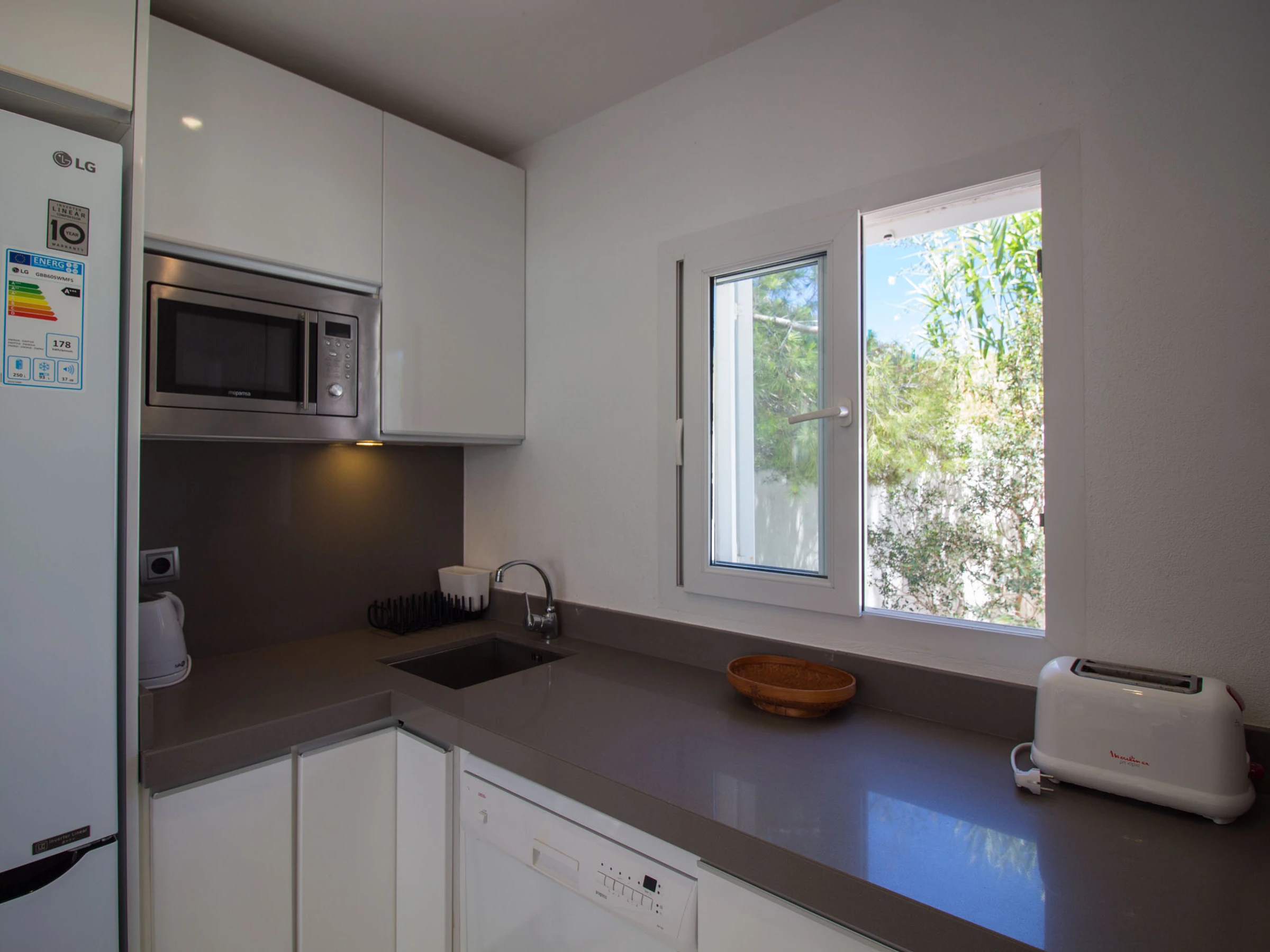 Großzügige Räume: Ein geräumiges Wohnzimmer und eine voll ausgestattete Küche öffnen sich zu einer Terrasse, die zum Genießen des mediterranen Klimas einlädt.
