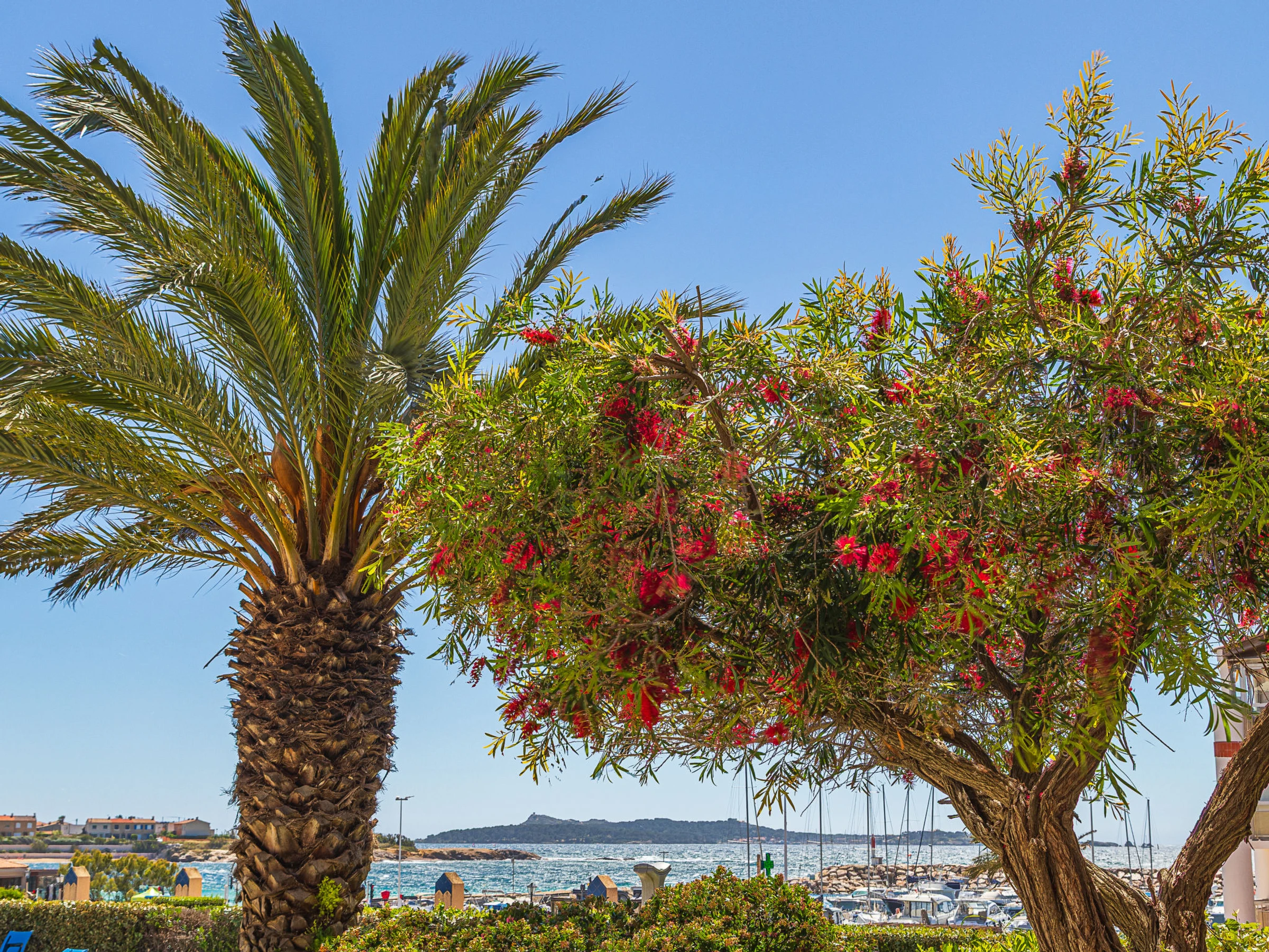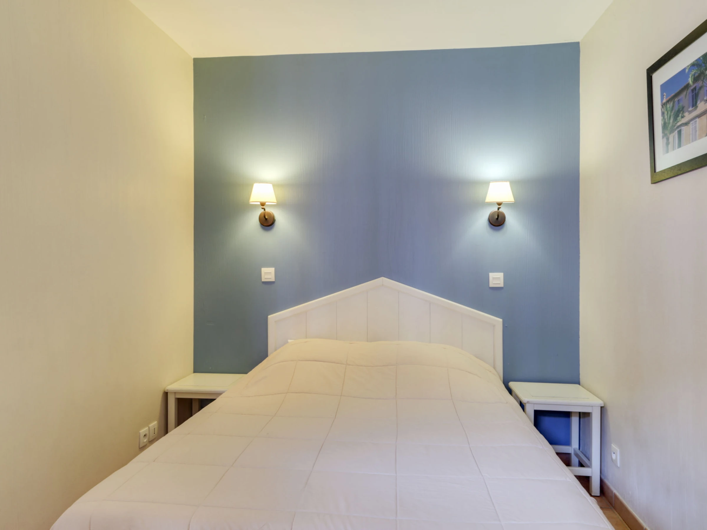 2-Zimmer-Wohnung 32 m2 im 2. Stock. Zweckmässig und schön eingerichtet: Wohn-/Esszimmer mit 1 Doppeldiwanbett (140 cm, Länge 190 cm), TV (Flachbildschirm). Ausgang zur Terrasse. 1 Zimmer mit 1 franz. Bett (1 x 140 cm, Länge 190 cm). Kochnische (Geschirrspüler, 4 Glaskeramikplatten, Toaster, Wasserkocher, Mikrowelle, elektrische Kaffeemaschine). Bad, sep. WC. E-Heizung. Terrasse 9 m2, überdacht, Südwestlage. Terrassenmöbel. Herrliche Sicht auf das Meer und das Schwimmbad. Zur Verfügung: Internet (WLAN, extra). Parkplatz Nr. 460 (Niveau 1) (überdacht), Höhe 190 cm, Breite 232 cm. Bitte beachten: Maximal 1 Haustier/Hund erlaubt. TV nur FR. Rauchmelder. [hidden]