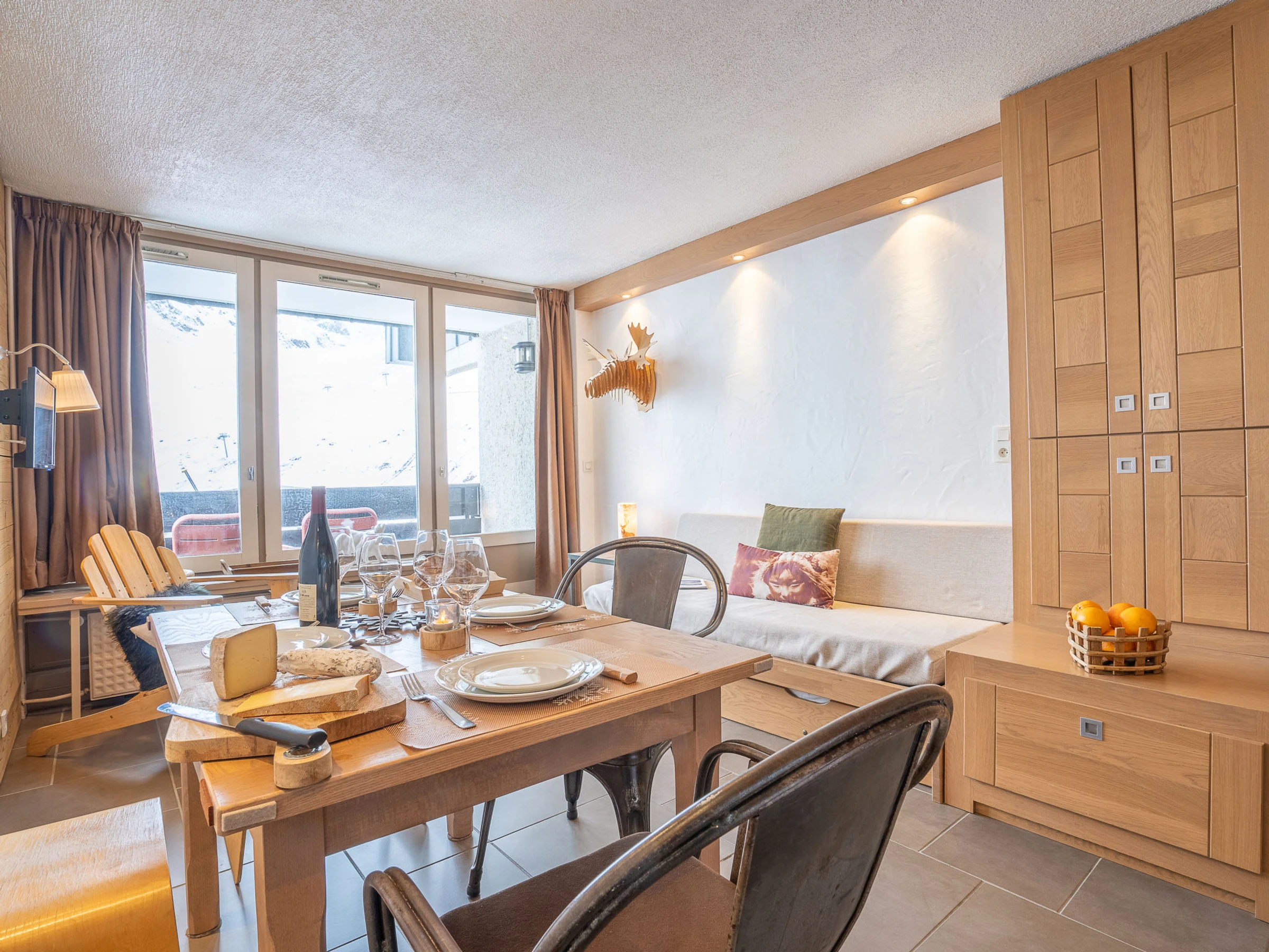 "Grandes Platières I", 1-Zimmer-Studio 25 m2 im 7. Stock. Hell, vollständig renoviert, schön und geschmackvoll eingerichtet: Wohn-/Esszimmer mit 1 Ausziehbett (2 Pers. 2 x 80 cm), TV (Flachbildschirm). Ausgang zum Balkon. Eingang mit 1 x 2 Etagenbetten (80 cm). Kochnische (2 Kochplatten, Geschirrspüler, Mikrowelle, elektrische Kaffeemaschine, Kapseln für die Kaffeemaschine (Nespresso) extra). Bad/WC. Balkon, Südlage. Balkonmöbel. Sehr schöne Panoramasicht auf die Berge und die Skipiste. Zur Verfügung: Internet (Wireless LAN, extra). Bitte beachten: Nichtraucher-Unterkunft. Rauchmelder.