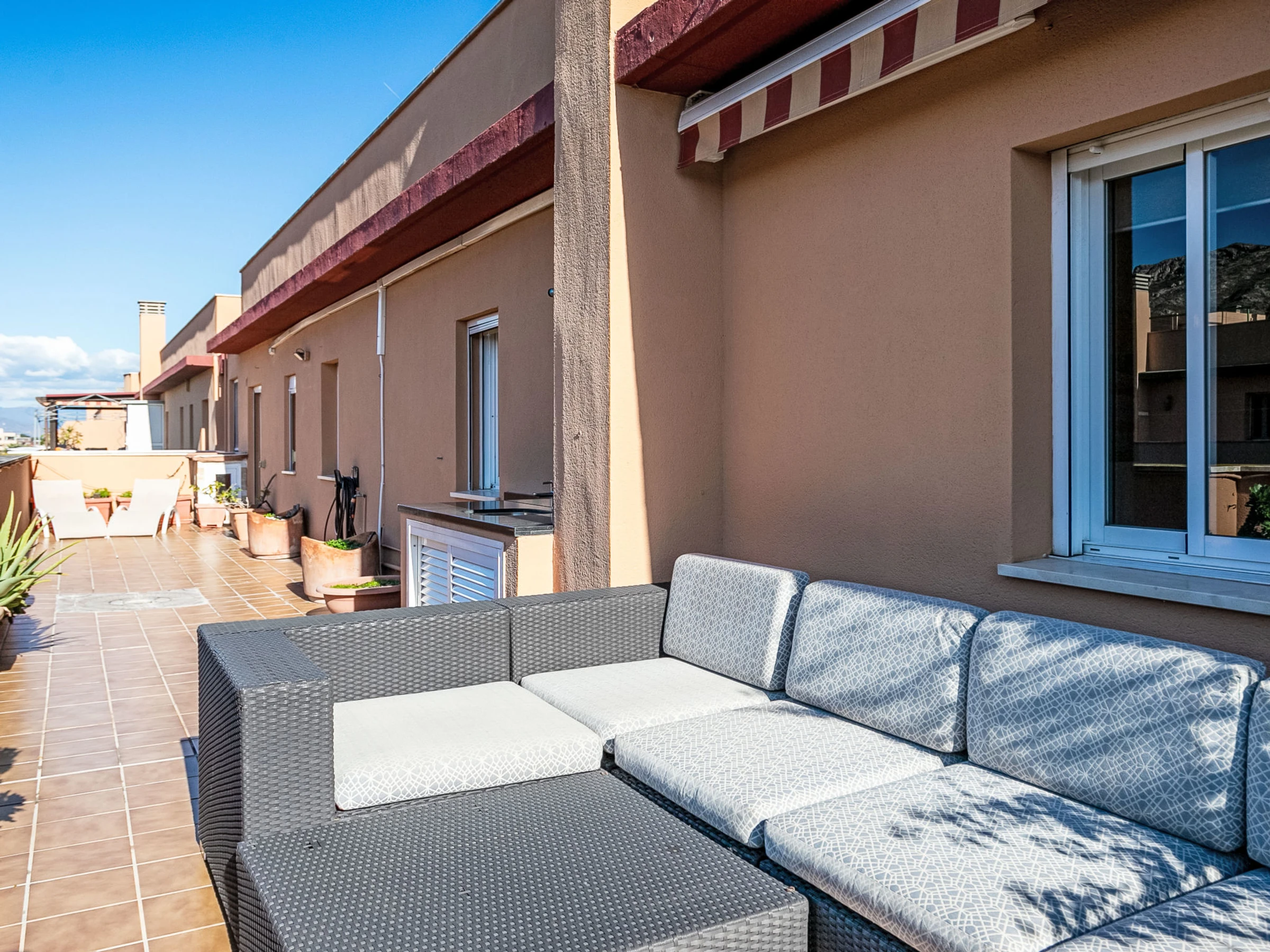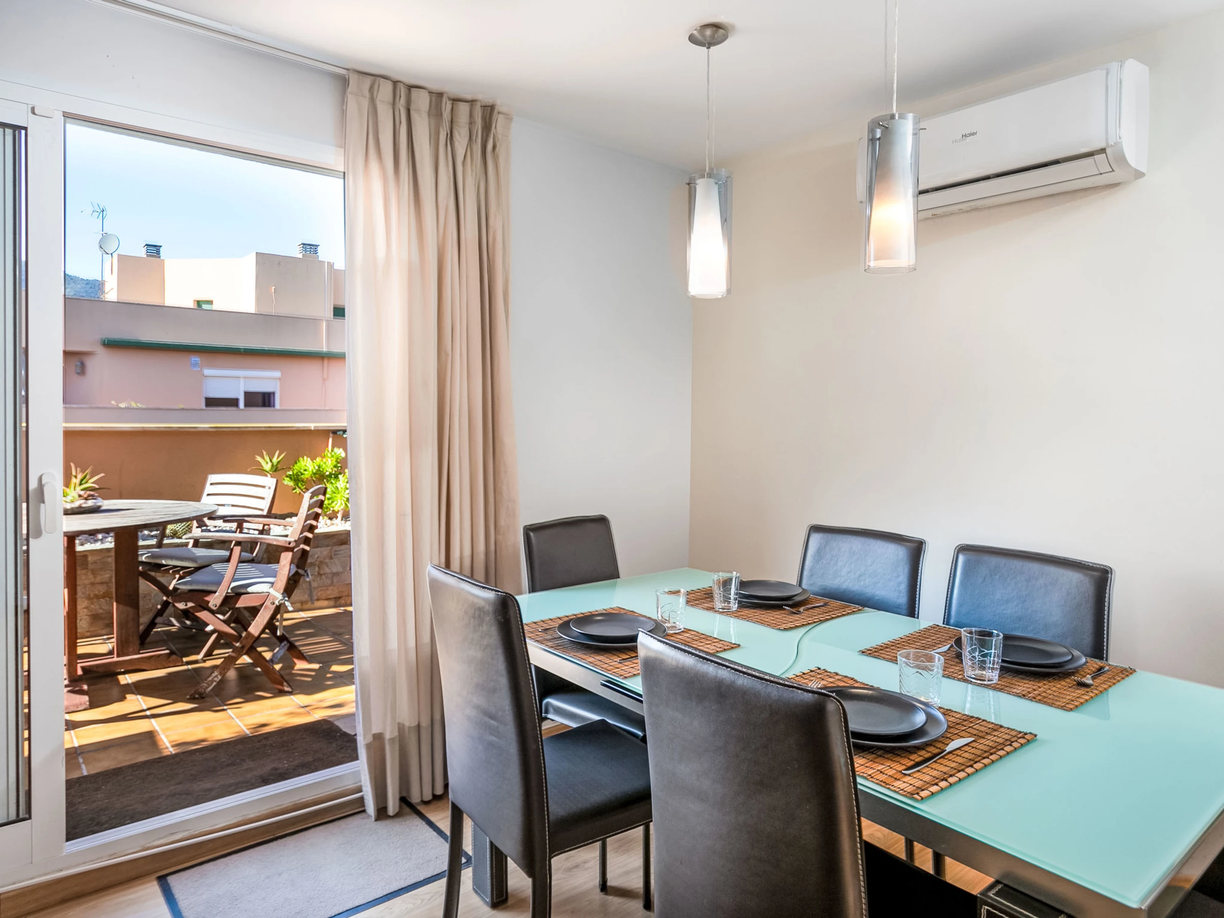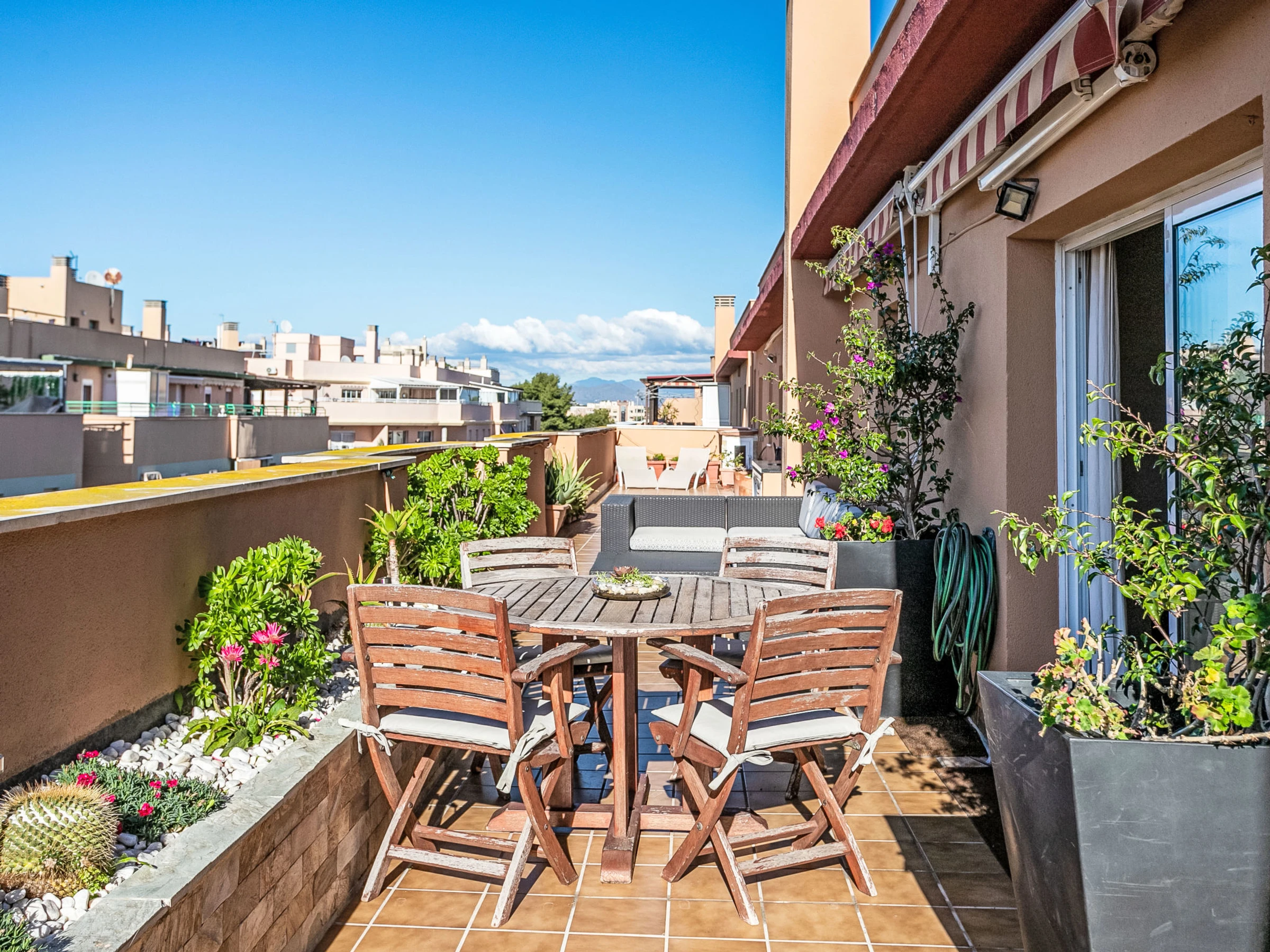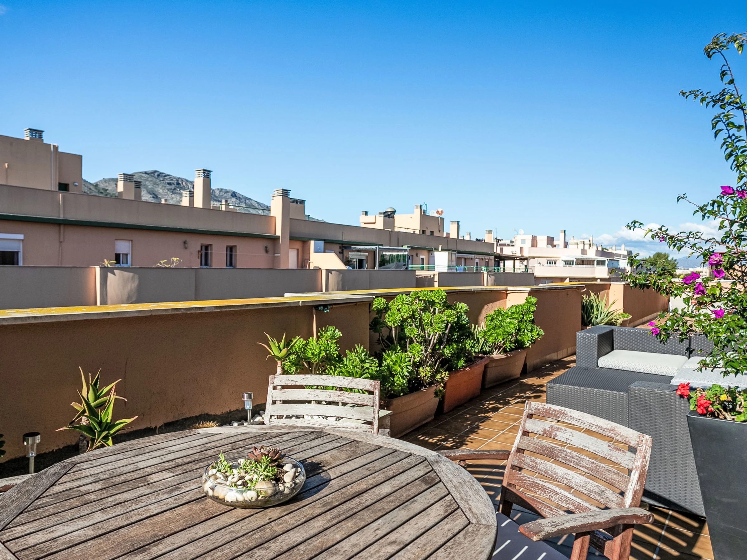 "Pinillo", 4-Zimmer-Wohnung 100 m2, im Dachgeschoss. Objekt geeignet für 4 Erwachsene + 2 Kinder. Geräumig und hell, schön und modern eingerichtet: Wohn-/Esszimmer mit Esstisch, Sat-TV, Klimaanlage und Warmluftheizung. Ausgang zur Terrasse. 1 Doppelzimmer mit 1 franz. Bett (150 cm), Klimaanlage und Warmluftheizung. Ausgang zur Terrasse. 1 Doppelzimmer mit 2 Betten (90 cm). 1 Doppelzimmer mit 1 Ausziehbett (2 x 80 cm, Länge 160 cm). Küche (Backofen, Geschirrspüler, 3 Induktionskochplatten, Toaster, Wasserkocher, Mikrowelle, Tiefkühler, elektrische Kaffeemaschine). 2 Duschen/WC. E-Heizung. Grosse Terrasse 60 m2. Terrassenmöbel, Gartengrill. Panoramasicht. Zur Verfügung: Waschmaschine, Bügeleisen, Haartrockner. Internet (WLAN, gratis). Parkplatz Nr. 24. [hidden] // Reg. Nr.: ESFCTU0000290210007428320000000000000000[hidden]0