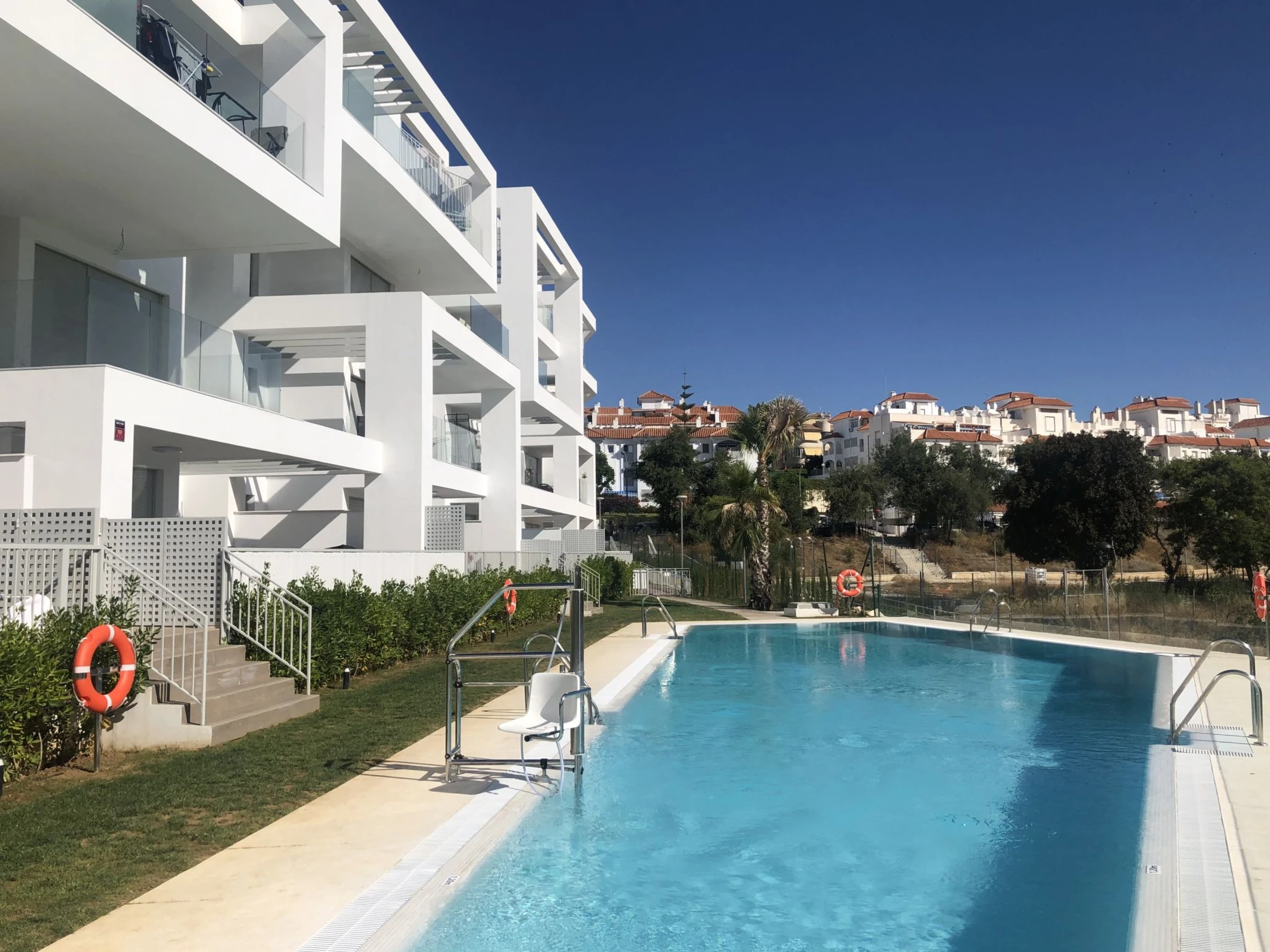 Modernes, schönes, komfortables Appartementhaus "White Stones", auf 3 Stockwerken, Baujahr 2021. Im Ort Torremolinos 900m Playa de la Carihuela, ruhige, sonnige Lage, 900 m vom Meer, vom Strand. Zur Mitbenutzung: Schwimmbad (saisonale Verfügbarkeit: [hidden] - [hidden] Dusche/WC im Poolbereich. Im Hause: Fahrstuhl. Supermarkt, Bushaltestelle, Bahnstation 400 m. Sporthafen, Jacht-Hafen, Segelschule 900 m. Nahe gelegene Sehenswürdigkeiten: Puerto Marina 900 m, Sea Life 900 m, Selwoo Marina 2 km, Aeropuerto de Malaga 11 km, Marbella 45 km, Centro Torremolinos 2.5 km. Der Besitzer akzeptiert keine Jugendgruppen. Die Nachbarschaft ist sehr lärmempfindlich. Ruhe und gutes Benehmen wird erwartet.