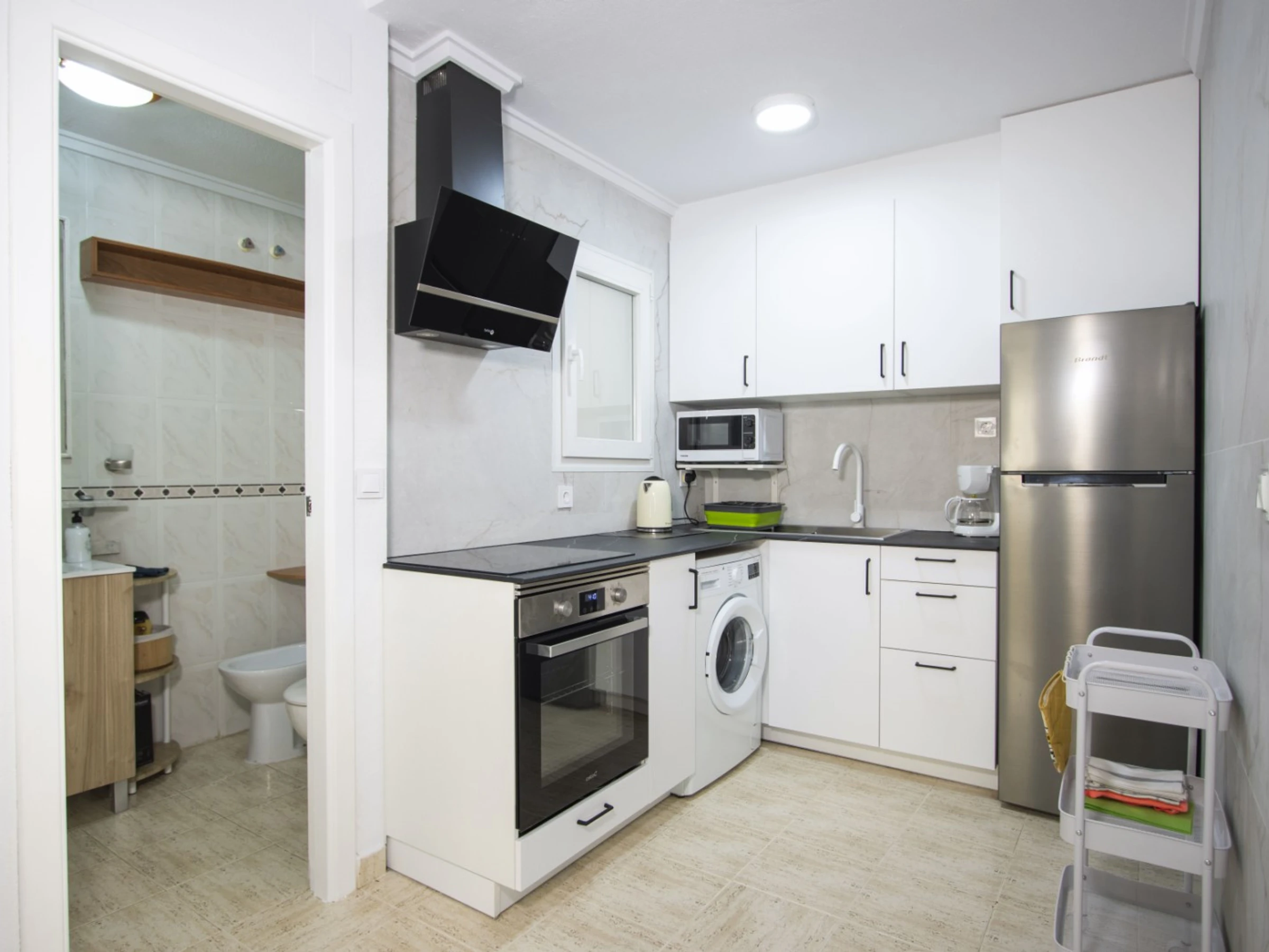 Wir bieten zur Miete einen Bungalow in einer Urbanisation mit Swimmingpool in der Gegend von Aguas Nuevas in der Nähe von La Mata an. Die Wohnung hat eine Fläche von 42 m2 und besteht aus einem Wohnzimmer, zwei Schlafzimmern, einer separaten Küche, einem Badezimmer und einer verglasten Terrasse. Die Apartments verfügen über alles, was Sie zum Wohnen und Entspannen benötigen: Möbel, Haushaltsgeräte (einschließlich Kaffeemaschine), Geschirr, Bettwäsche und Handtücher. Spanisches Fernsehen. Im Salon ist eine Klimaanlage installiert. Das Gebiet verfügt über eine gut ausgebaute Infrastruktur. Der Supermarkt der Supermarktkette Mercadona liegt etwa 350 Meter entfernt. Dort gibt es auch Bars und Cafés. Das Meer ist ca. 1 km entfernt, der Strand La Mata ca. 1,5 km. Unterkunftsmöglichkeit – bis zu 4 Personen (keine Tiere). Das Rauchen im Innenbereich ist strengstens untersagt! Die Miete für ein Babybett und einen Hochstuhl kostet 20 Euro pro Aufenthalt.