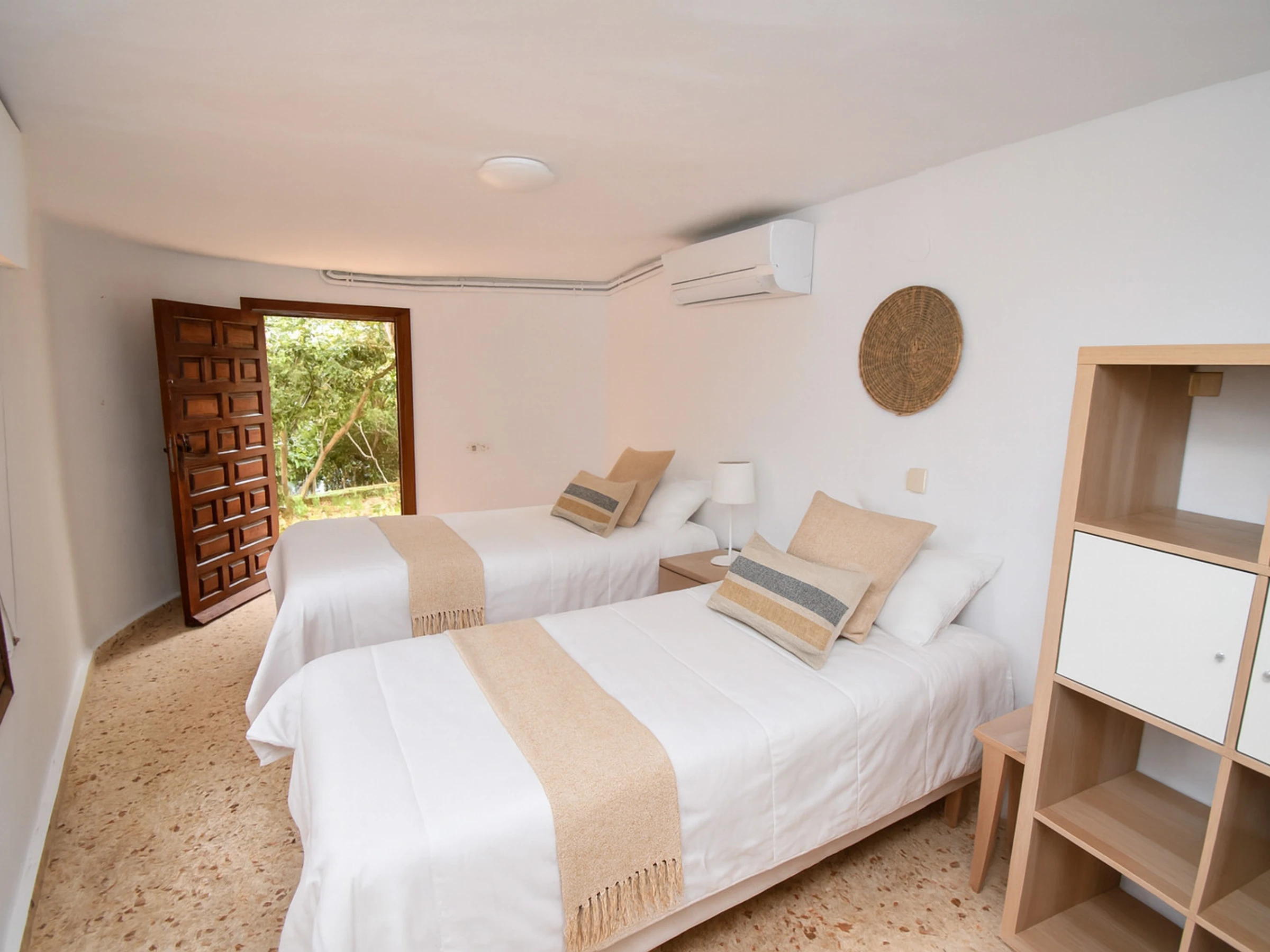 1 zusätzliches Schlafzimmer im Obergeschoss, mit separatem Eingang, Ventilator und privater Terrasse mit Sitzgelegenheiten und Blick auf die Berge