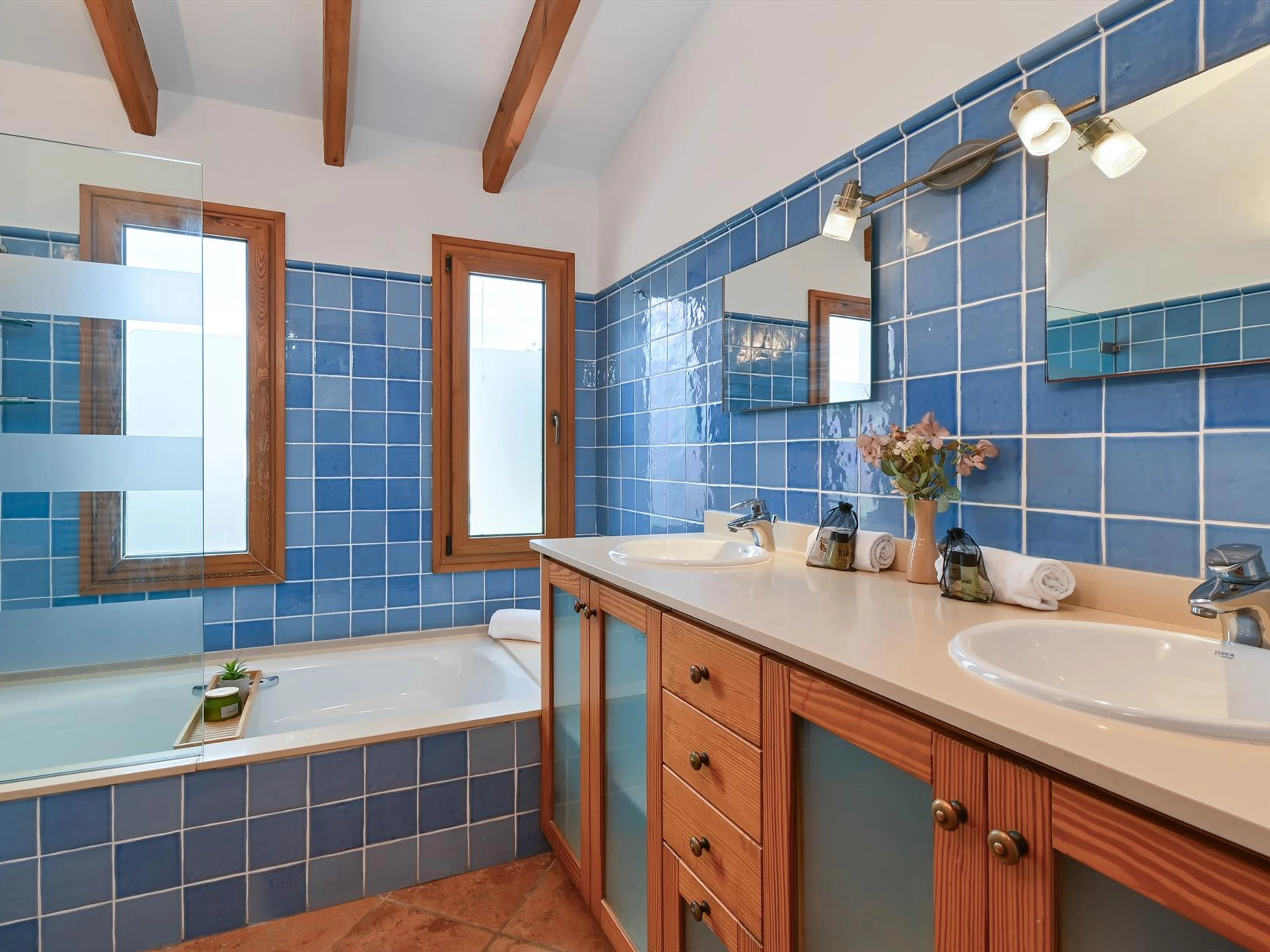 Die Villa verfügt über 4 Schlafzimmer, 3 Badezimmer und 1 Gäste-WC, verteilt