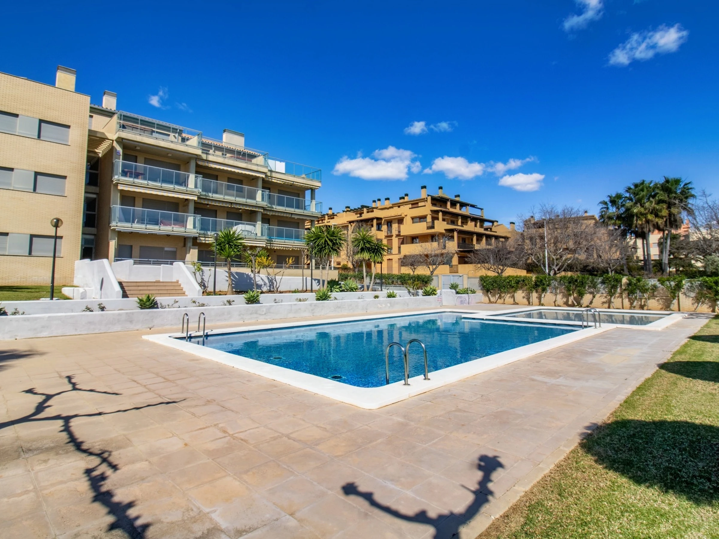 The accommodation is equipped with the following items: lift, garden, washing machine, internet (Wi-Fi), heat pump, air-conditioned, swimming pool communal+children's, garage in the same building, 1 TV.