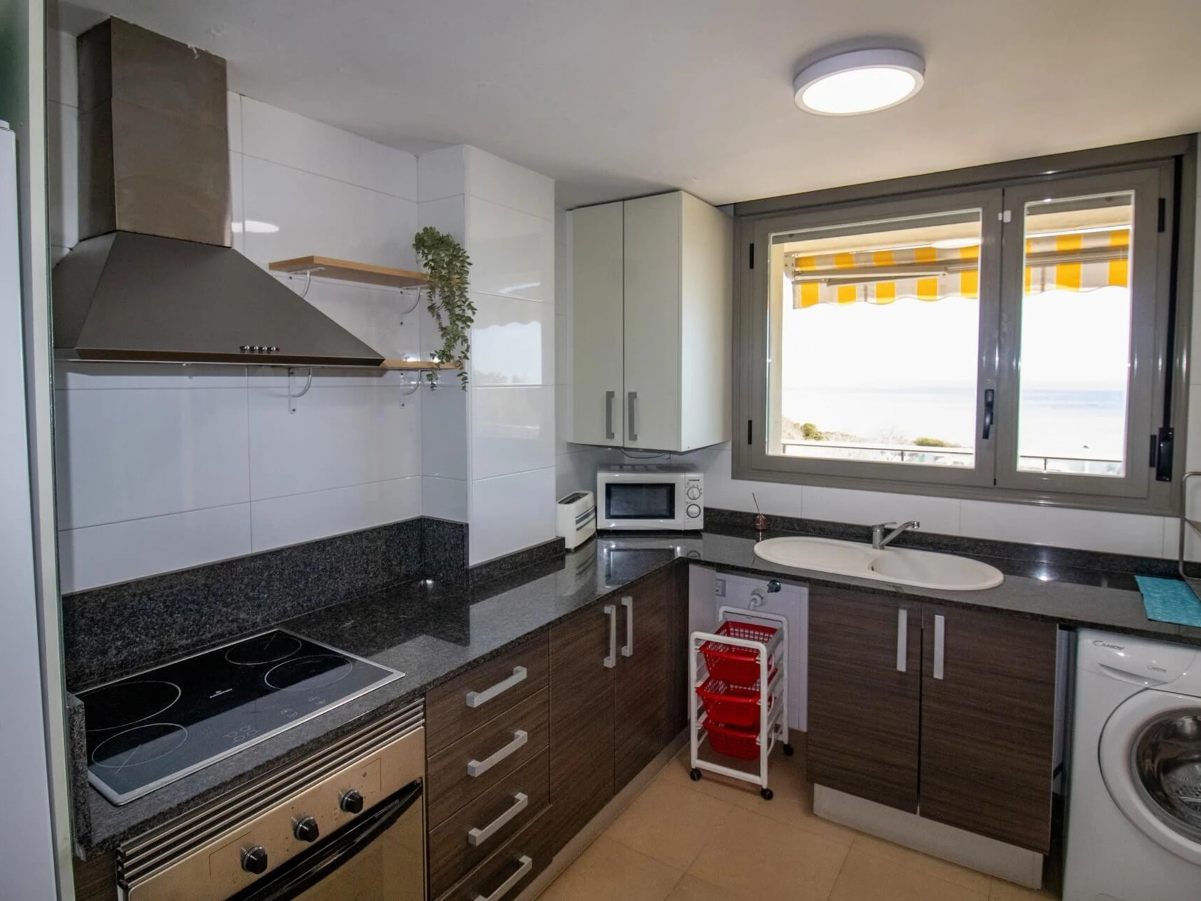 The independent kitchen, of hotplate of glass ceramics, is equipped with refrigerator, microwave, oven, freezer, dishwasher, dishes/cutlery, kitchen utensils, coffee machine and toaster.