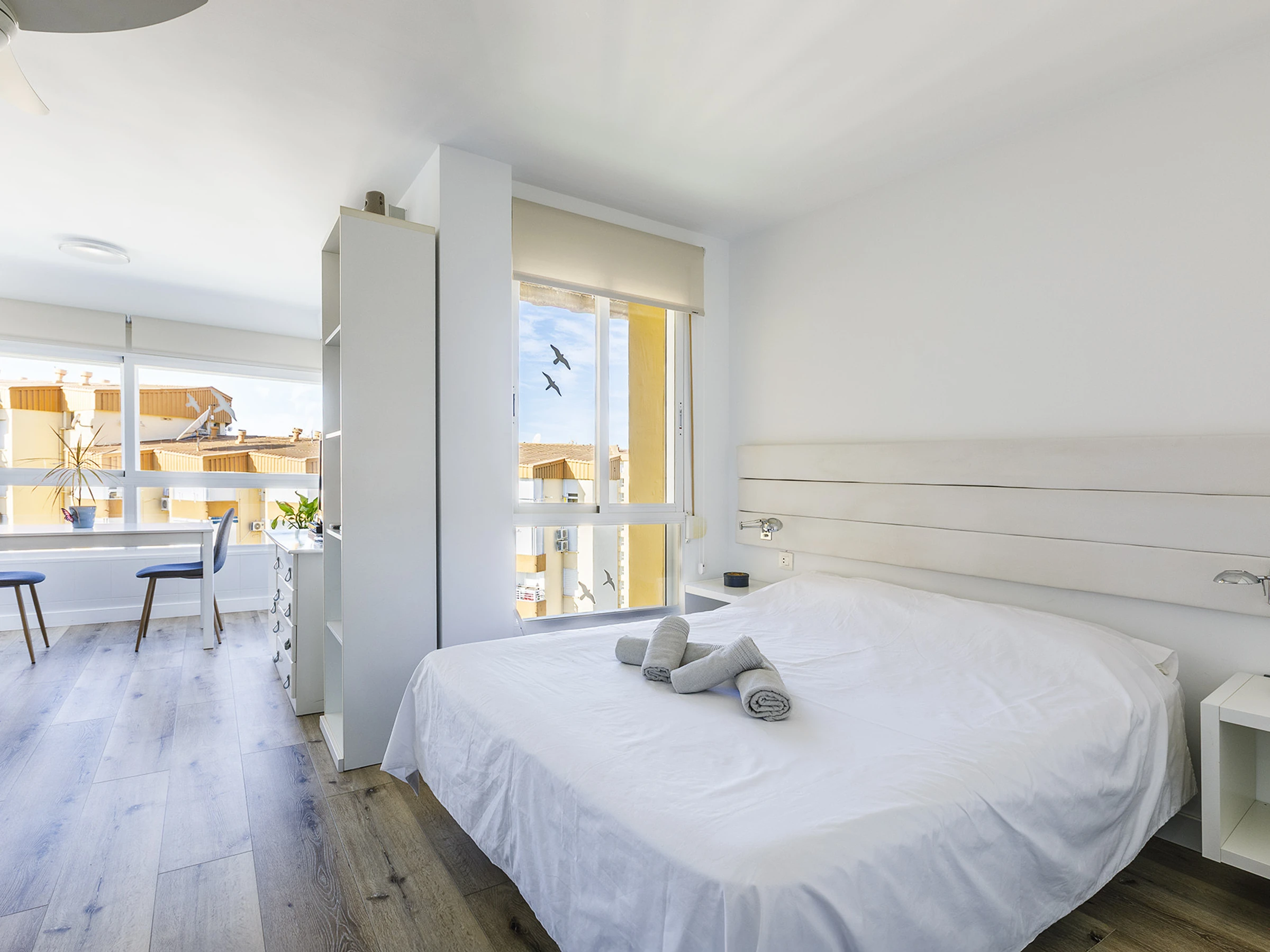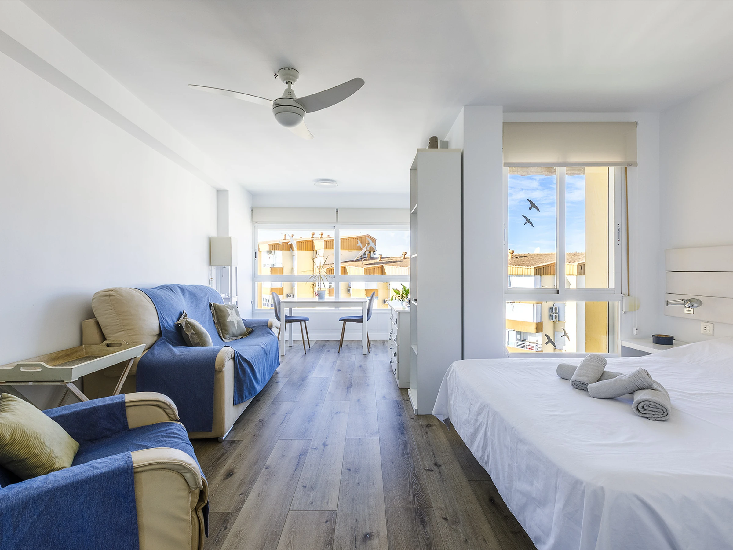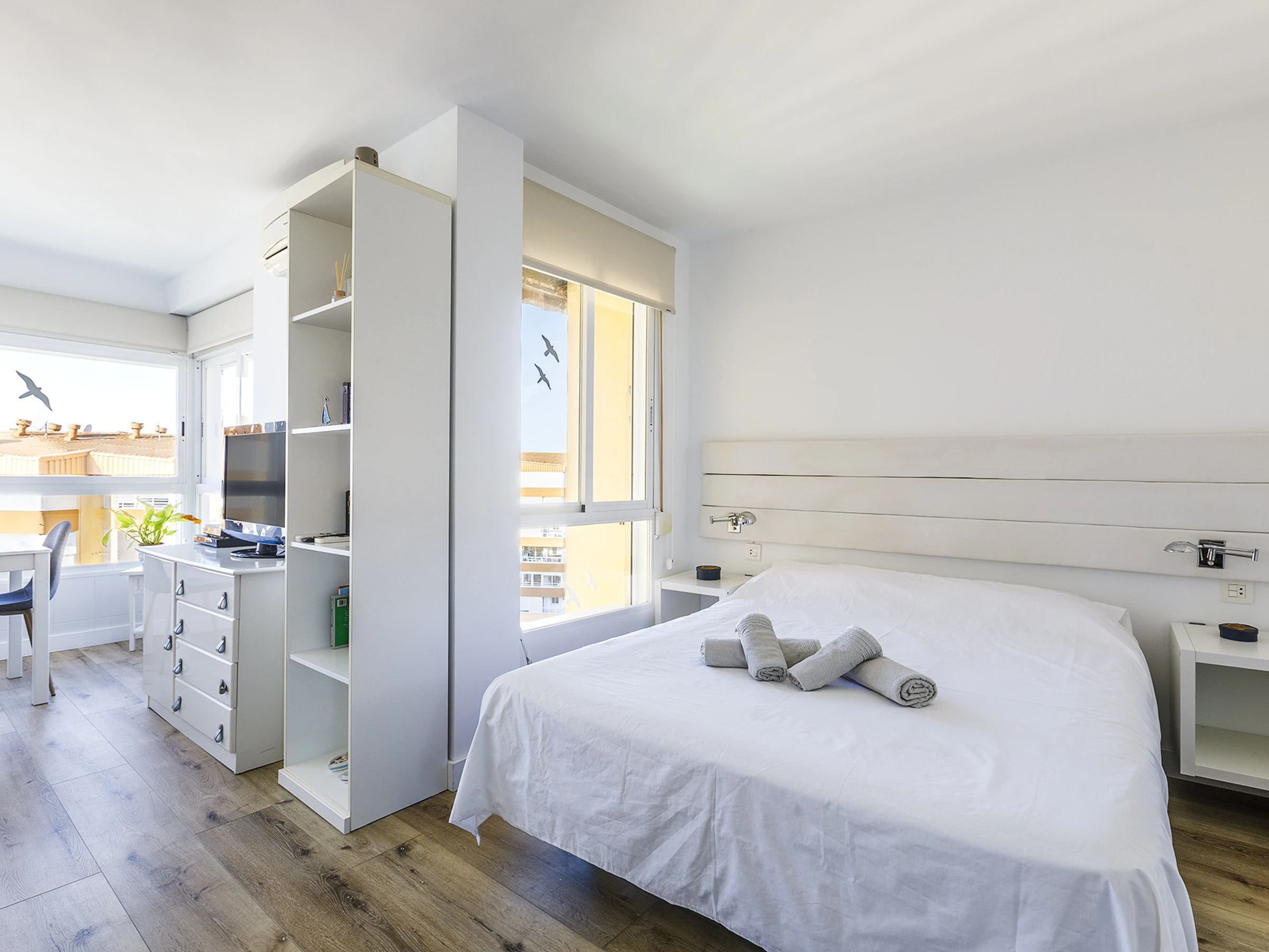 The accommodation features an open-plan studio space, designed to offer comfort in a practical and bright environment.