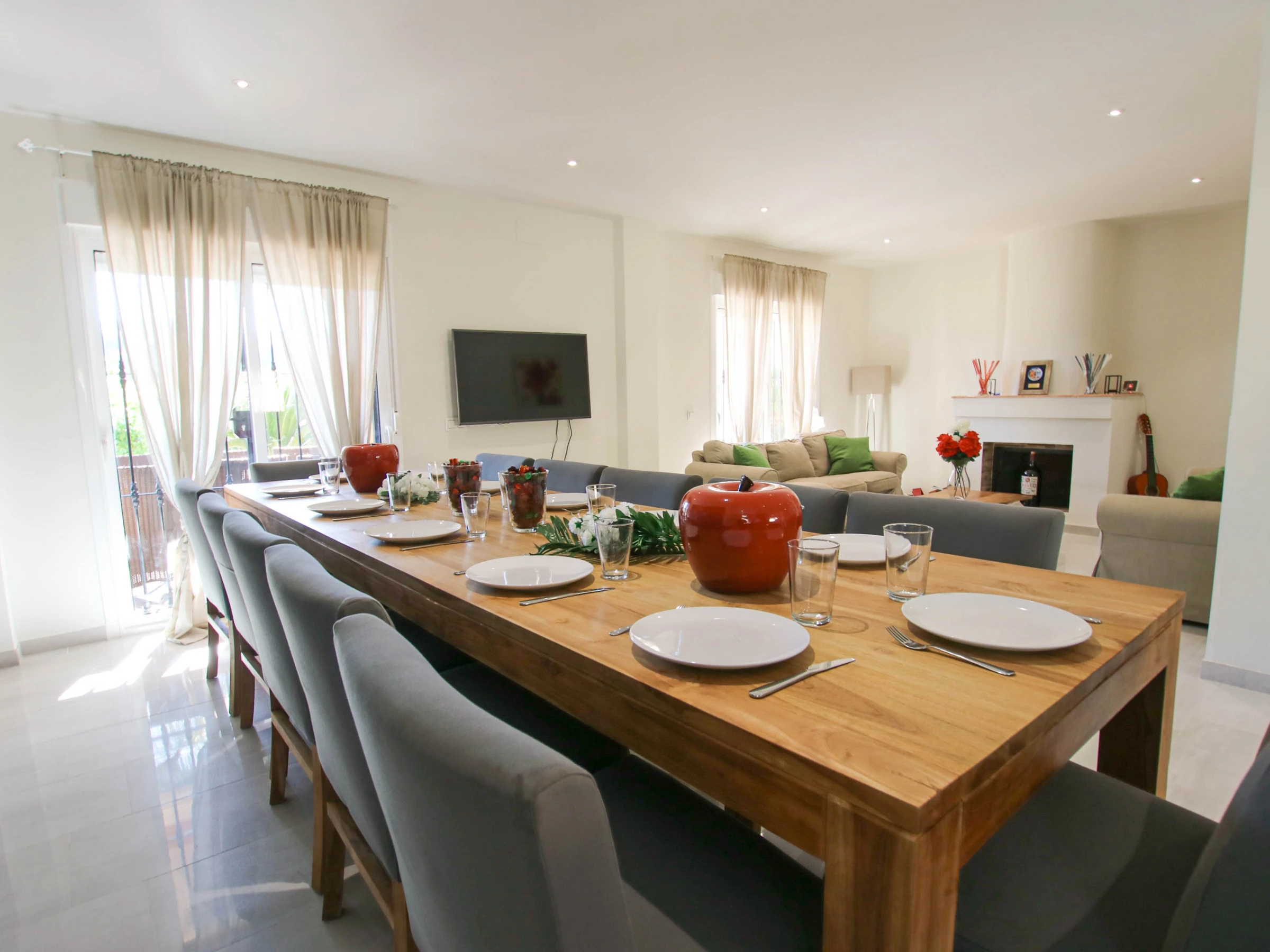 There is a smart TV with flat screen and free access to WIFI, portable music system. Around the pool there are several terraces with comfortable loungers, barbecue and a luxurious lounge sofa. On the terraces you can enjoy a lot of privacy and obstructed views of the surroundings and the mountains of Alhaurín and Málaga. On the terraces there is always a place to sunbathe or be in the shade of palm trees. Next to the villa is a partially covered terrace with a large wooden table with 12 chairs. You can enjoy a delicious outdoor dinner or a barbecue with family and friends. This beautiful villa also has a leisure area, where you will find a ping pong table and a set of darts. This spacious accommodation is ideal for large families, friends, as well as sportsmen. There is an information manual with the nearest supermarkets, restaurants and various information about the different cities you can visit in Andalusia, however your Host can inform you of the what to do and where to go upon arrival. We will be available 24 hours a day at Whatsapp for any questions you may have.