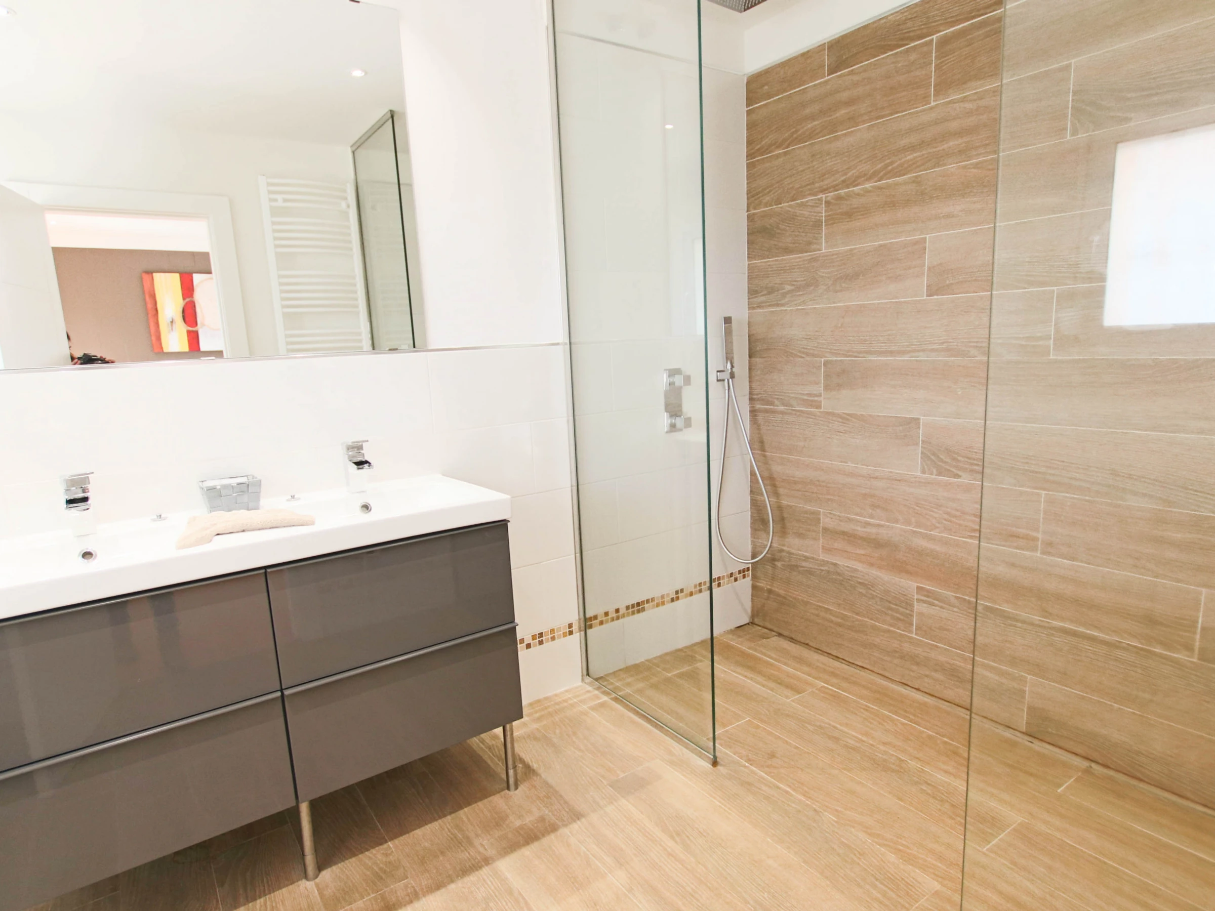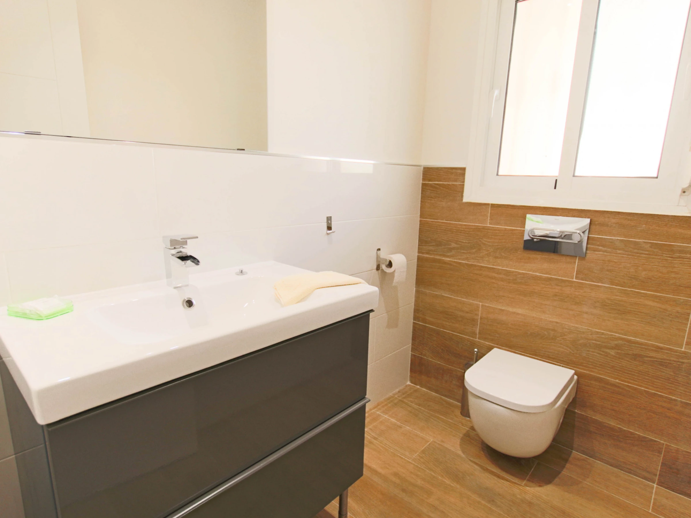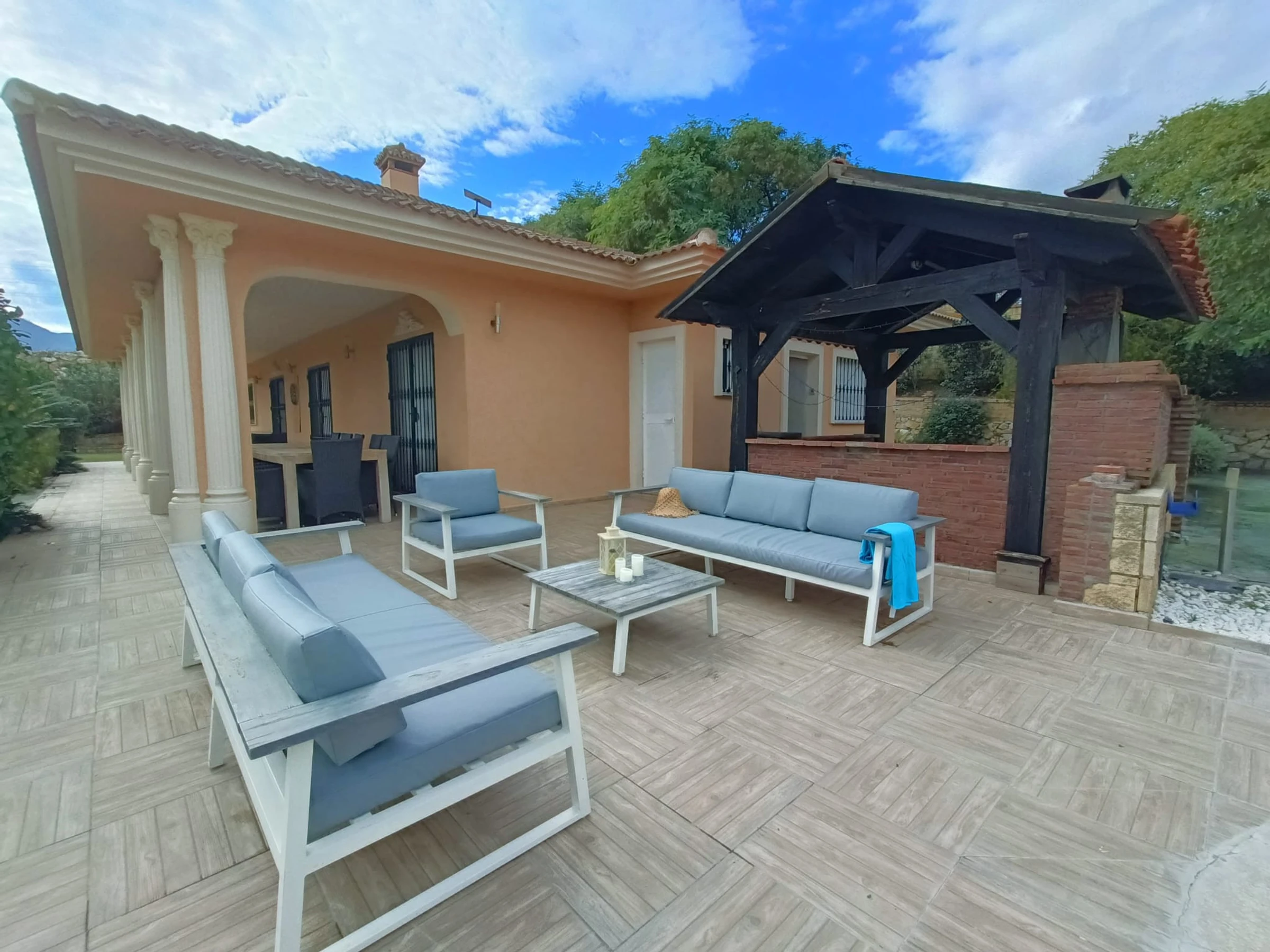 The main house has 3 bedrooms, 2 bathrooms, a large living room with dining room and a fully equipped luxury open plan kitchen. The guest house is situated on the opposite side of the pool and has 3 bedrooms, 1 bathroom and 1 toilet. All bathrooms are equipped with a large shower. Showers and taps have LED lighting.