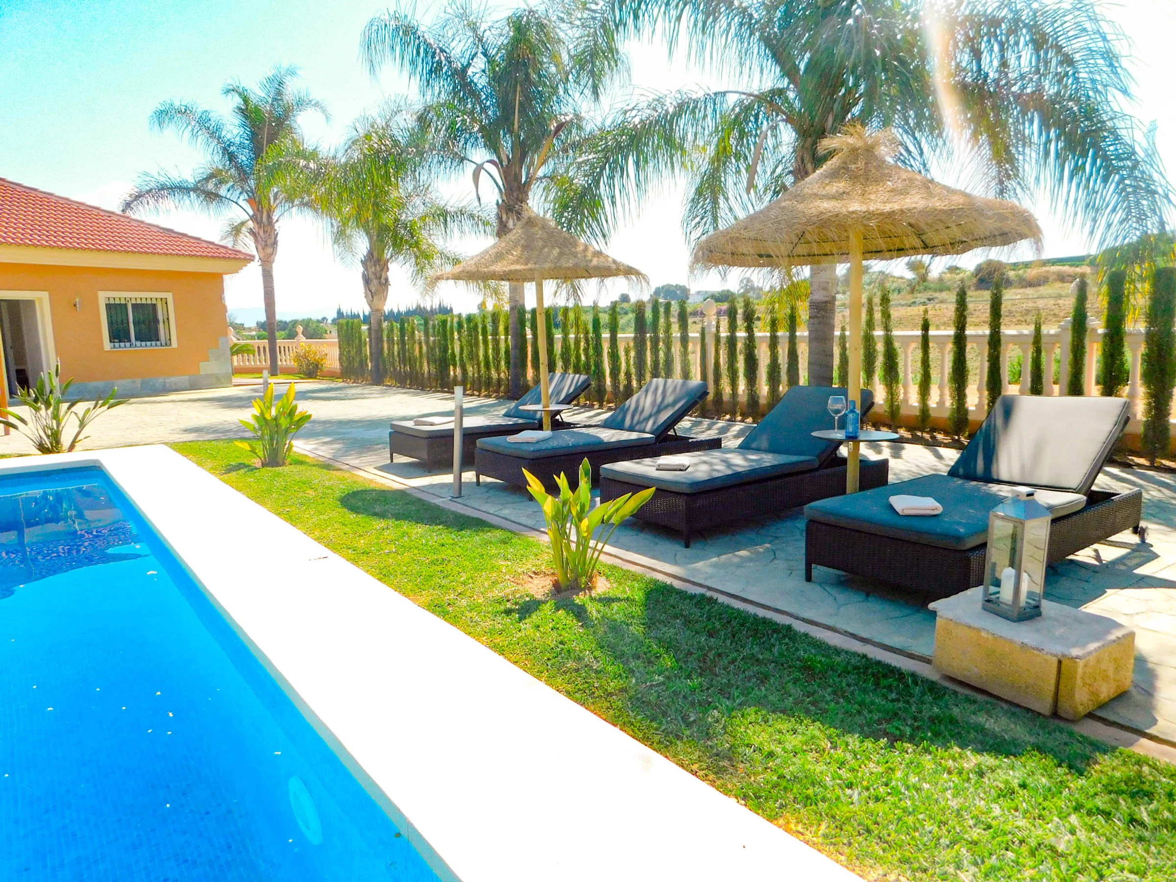 Rancho Las Palmeras is a luxury holiday accommodation, situated in the countryside and consists of a detached villa with private swimming pool and a separate guest house. The villa has a total of 6 bedrooms, 3 bedrooms in the main house and 3 in the guest house.