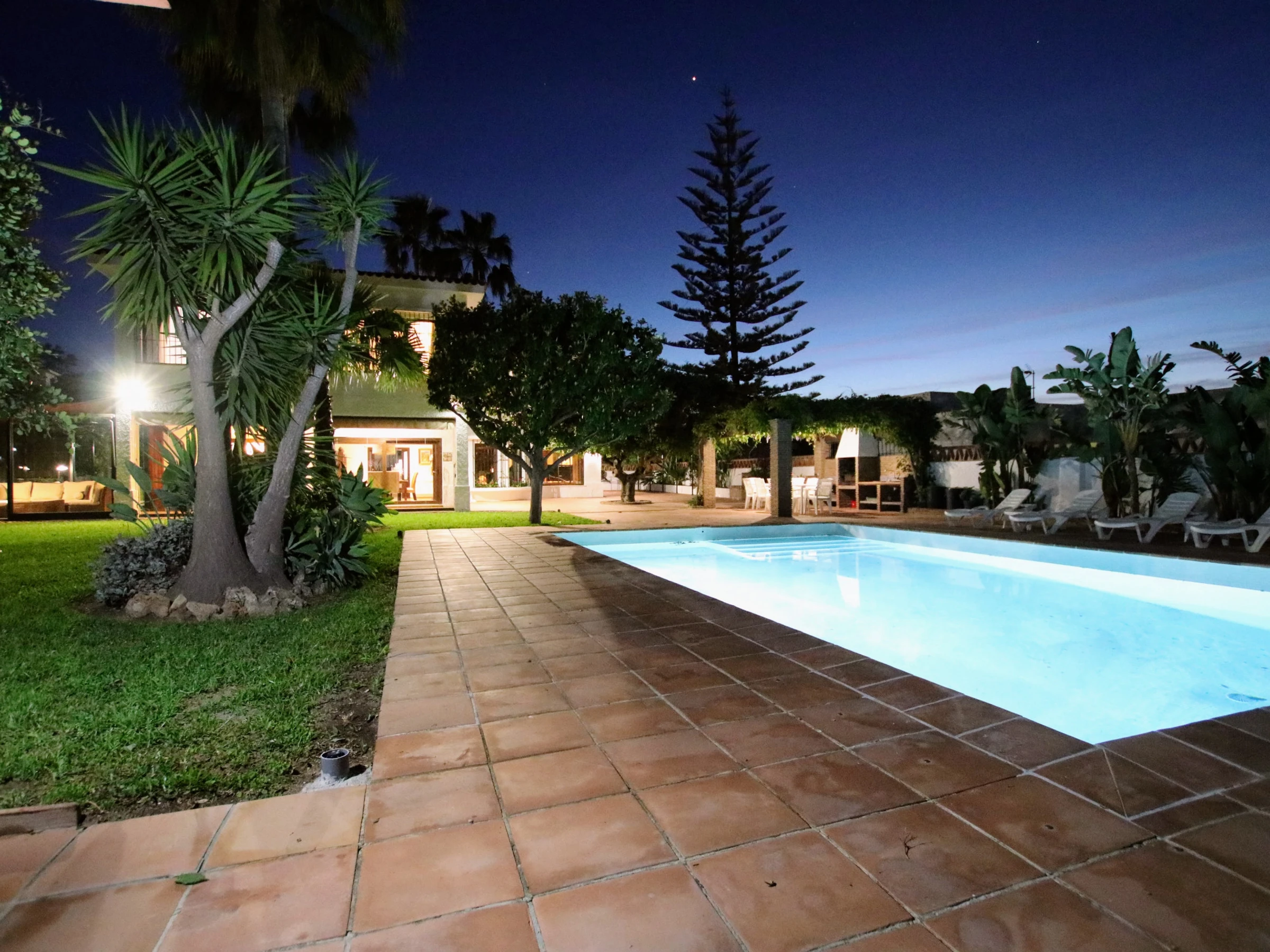 -Lounge: designed with good taste and quite spacious, it features a large chaise longue-style sofa, several armchairs, Full HD TV and large windows that provide access to a large terrace overlooking the garden and swimming pool. Very bright and spacious. It also has a fireplace for the winter.