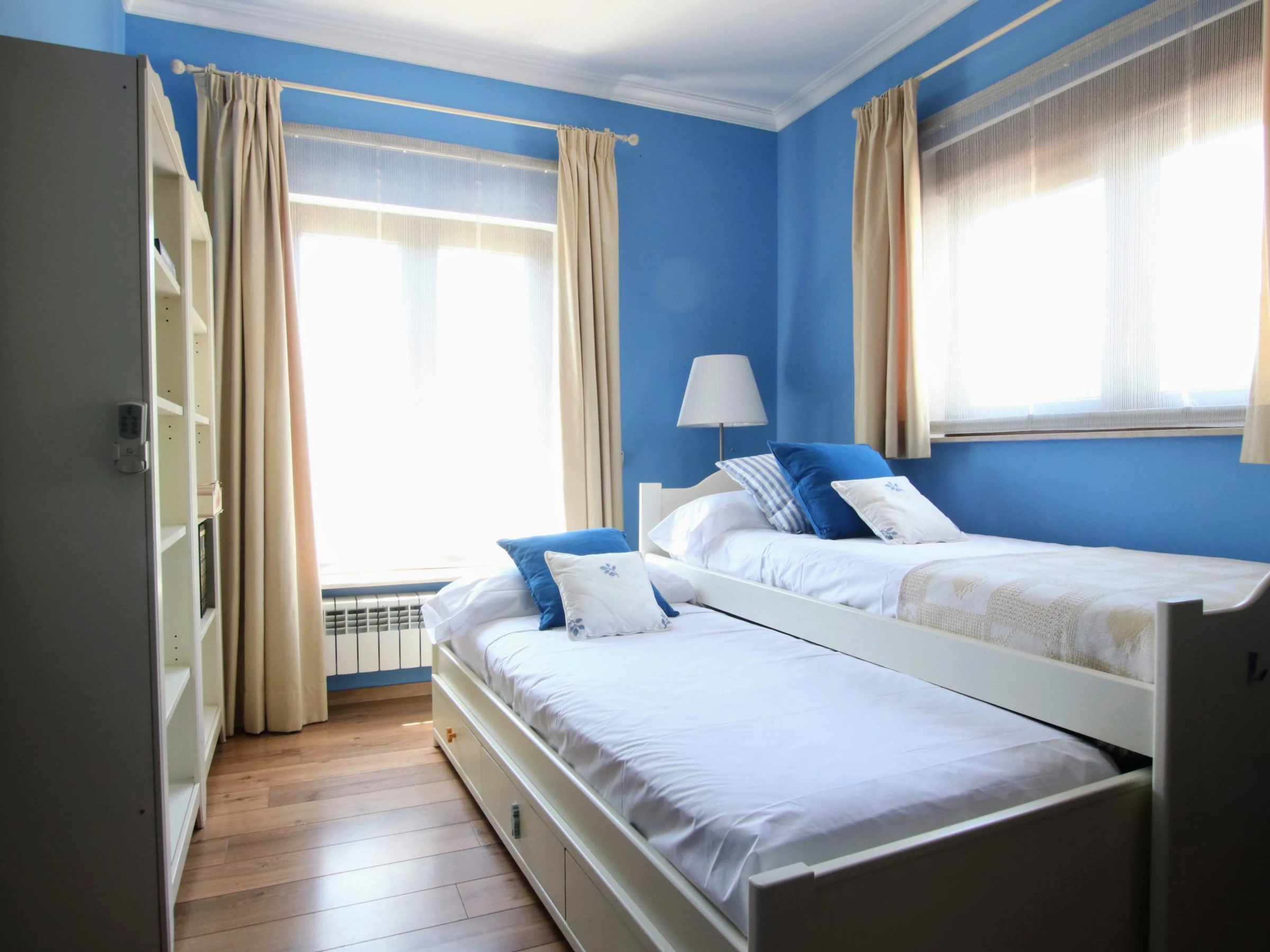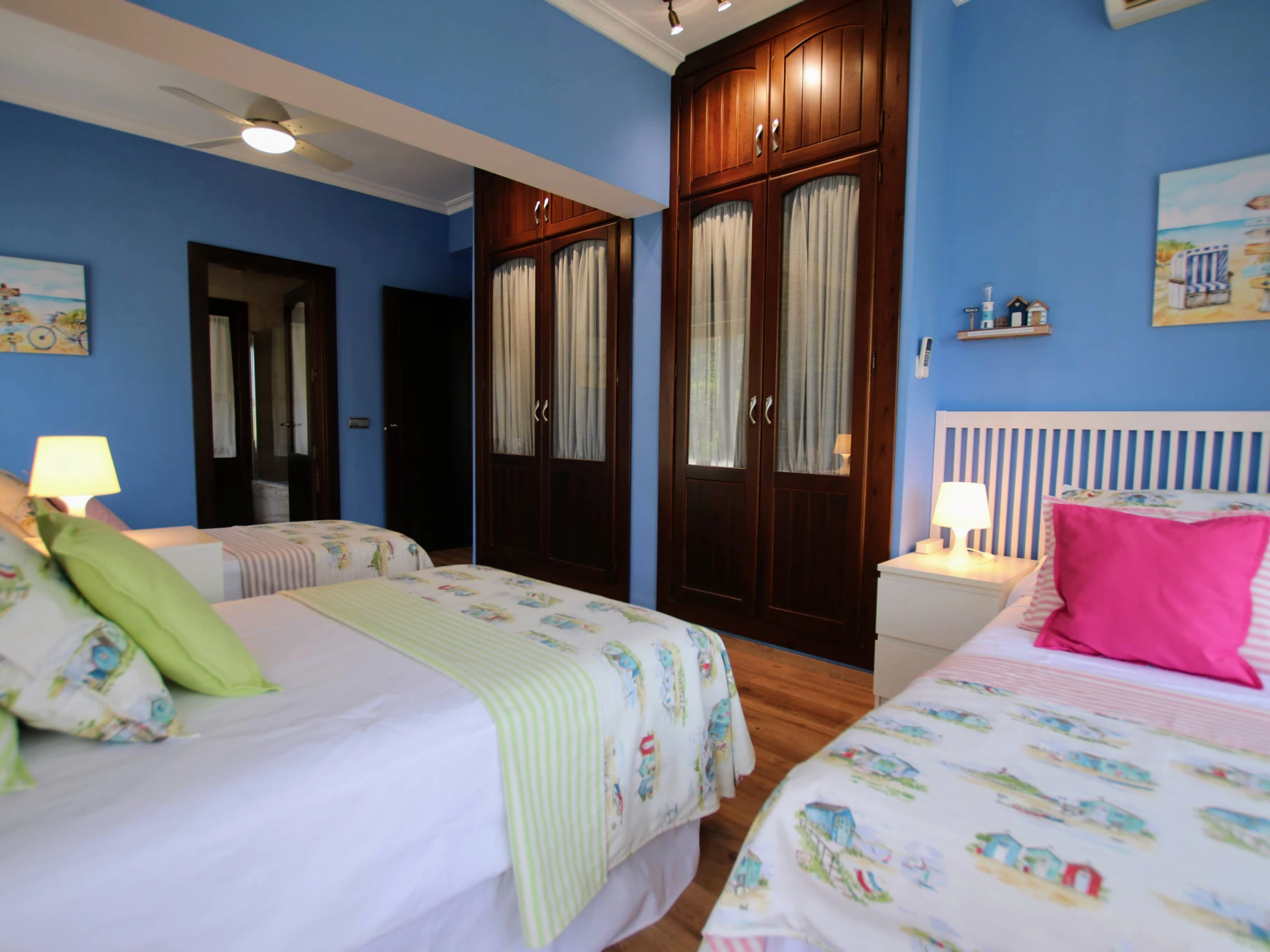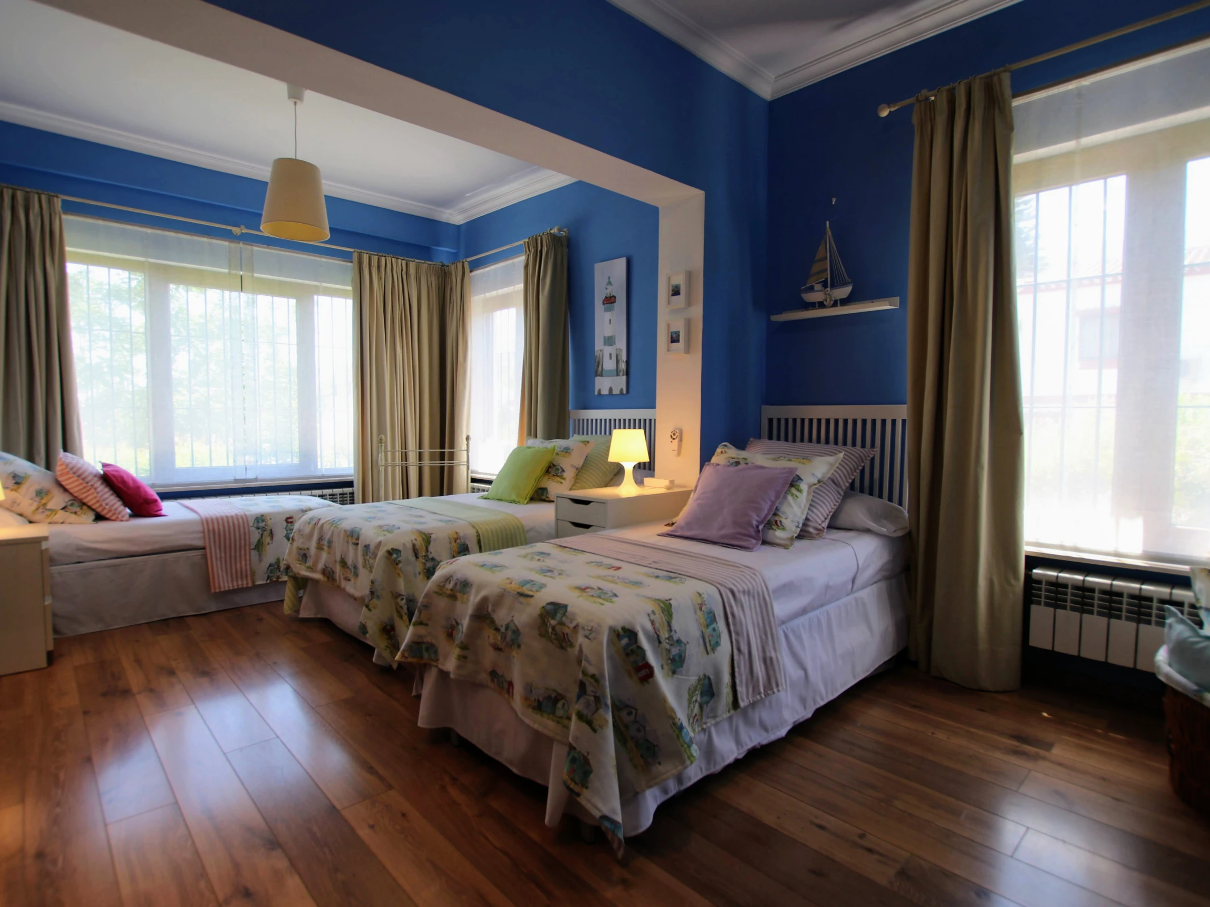 -Bedroom C: consists of two single beds of 80x200cm, one single bed of 90x120cm and another single bed of 105x200cm. It has air conditioning, built-in wardrobe and large windows that provide plenty of natural light. It has access to a bathroom with a bathtub that is shared with bedroom D.