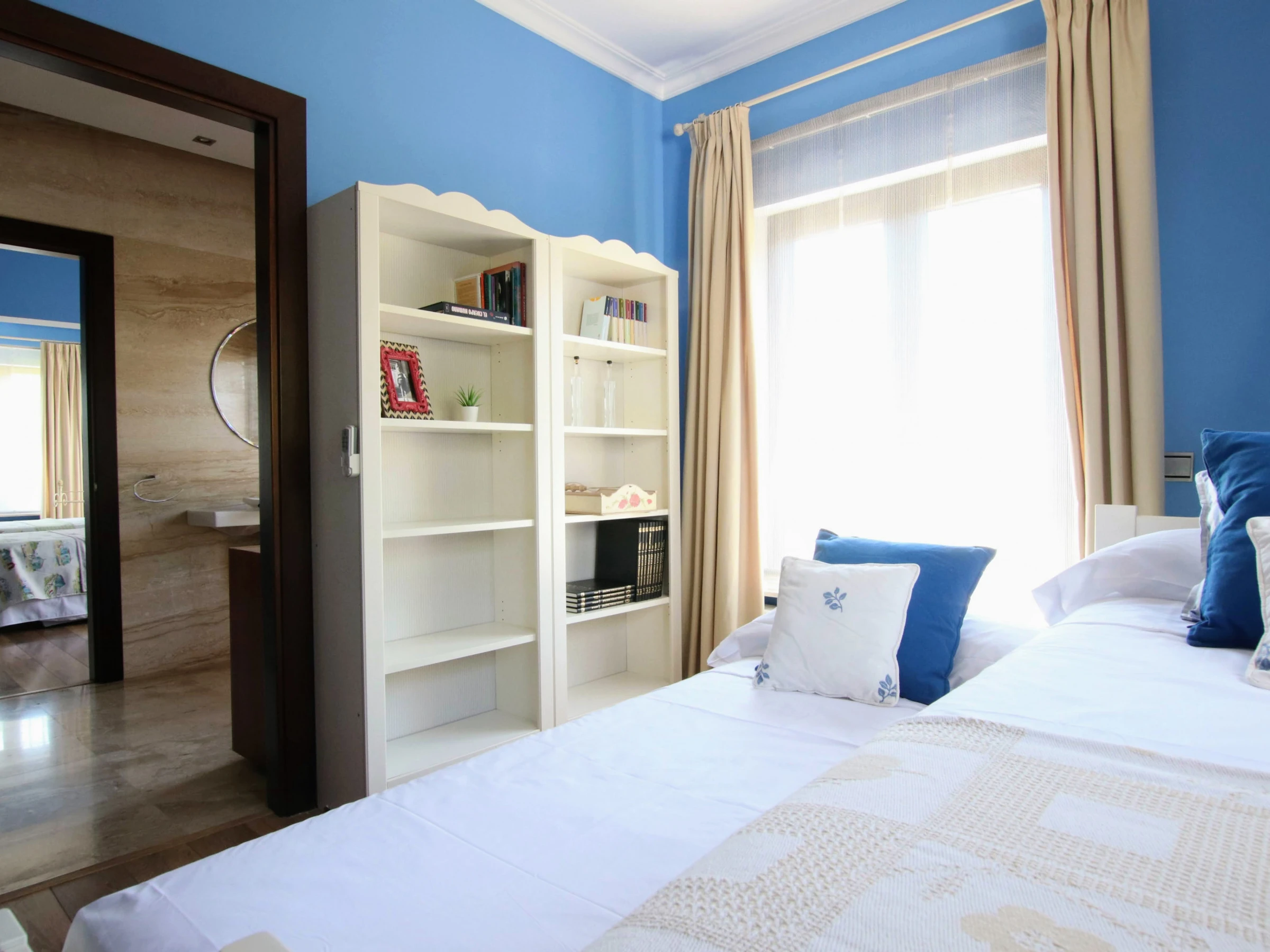 -Bedroom D: consists of two single beds of 90x200cm, with windows that provide plenty of light. It has access to a bathroom with a bathtub that is shared with bedroom C. It has air conditioning.