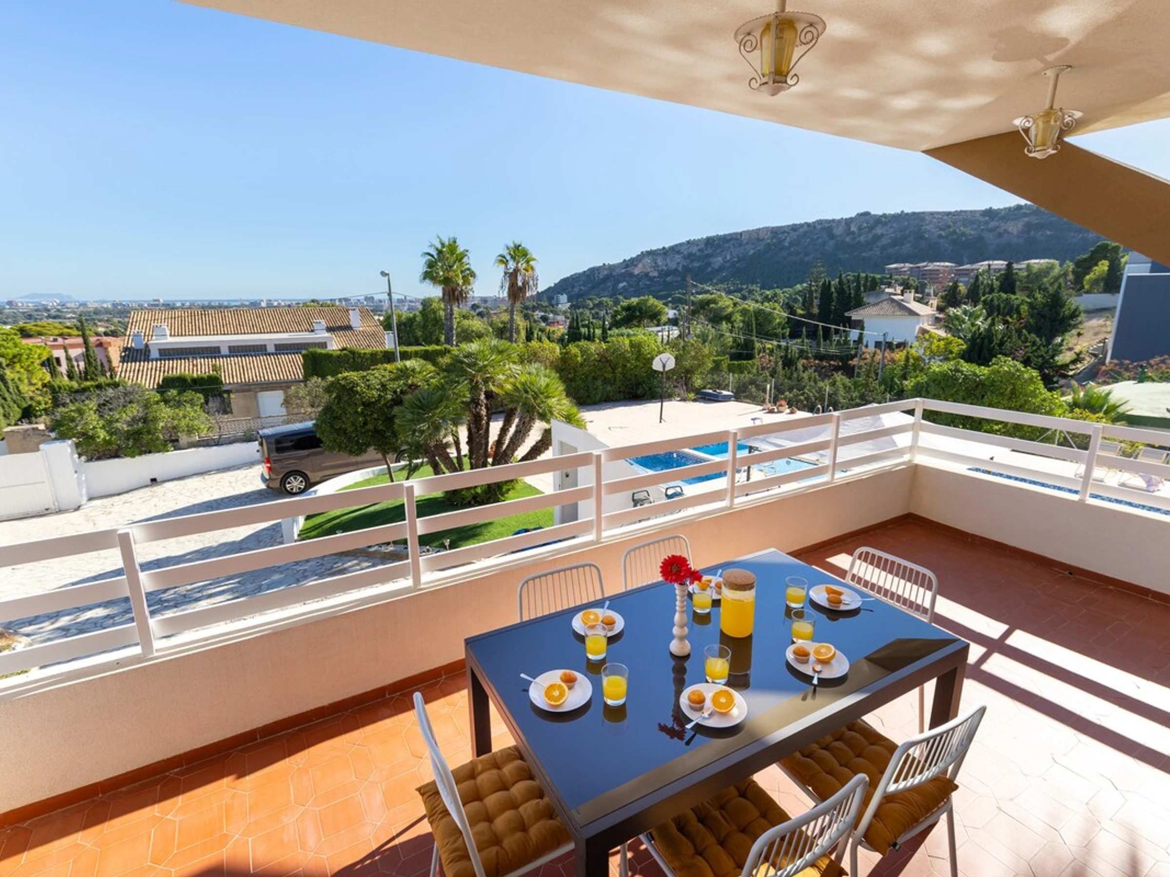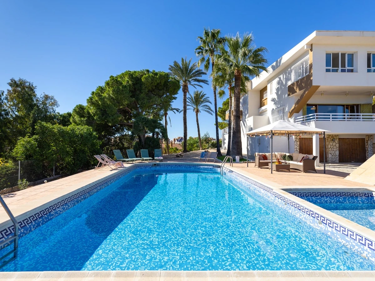 Vistahermosa is a truly impressive villa with 7 bedrooms and 3 bathrooms, a living-dining room with space for 16 people, and interiors that include a gym.