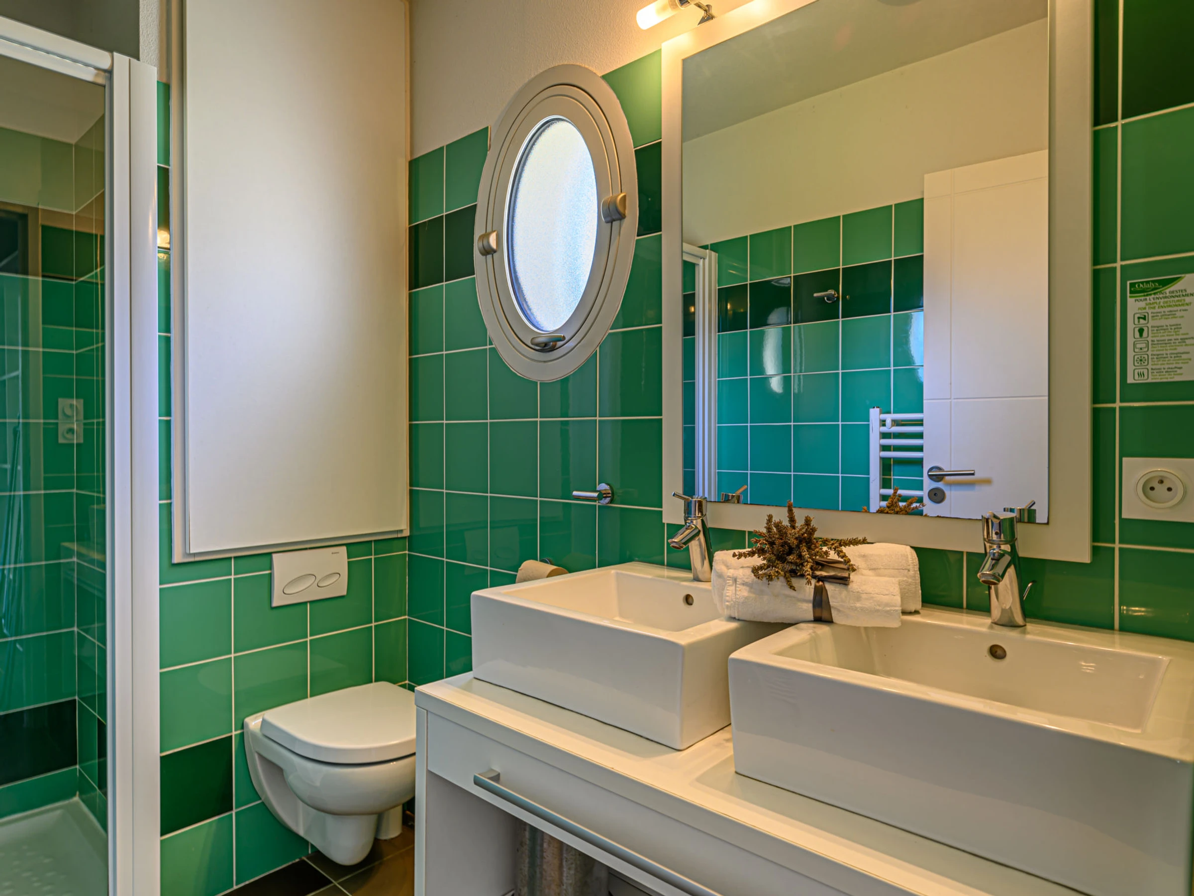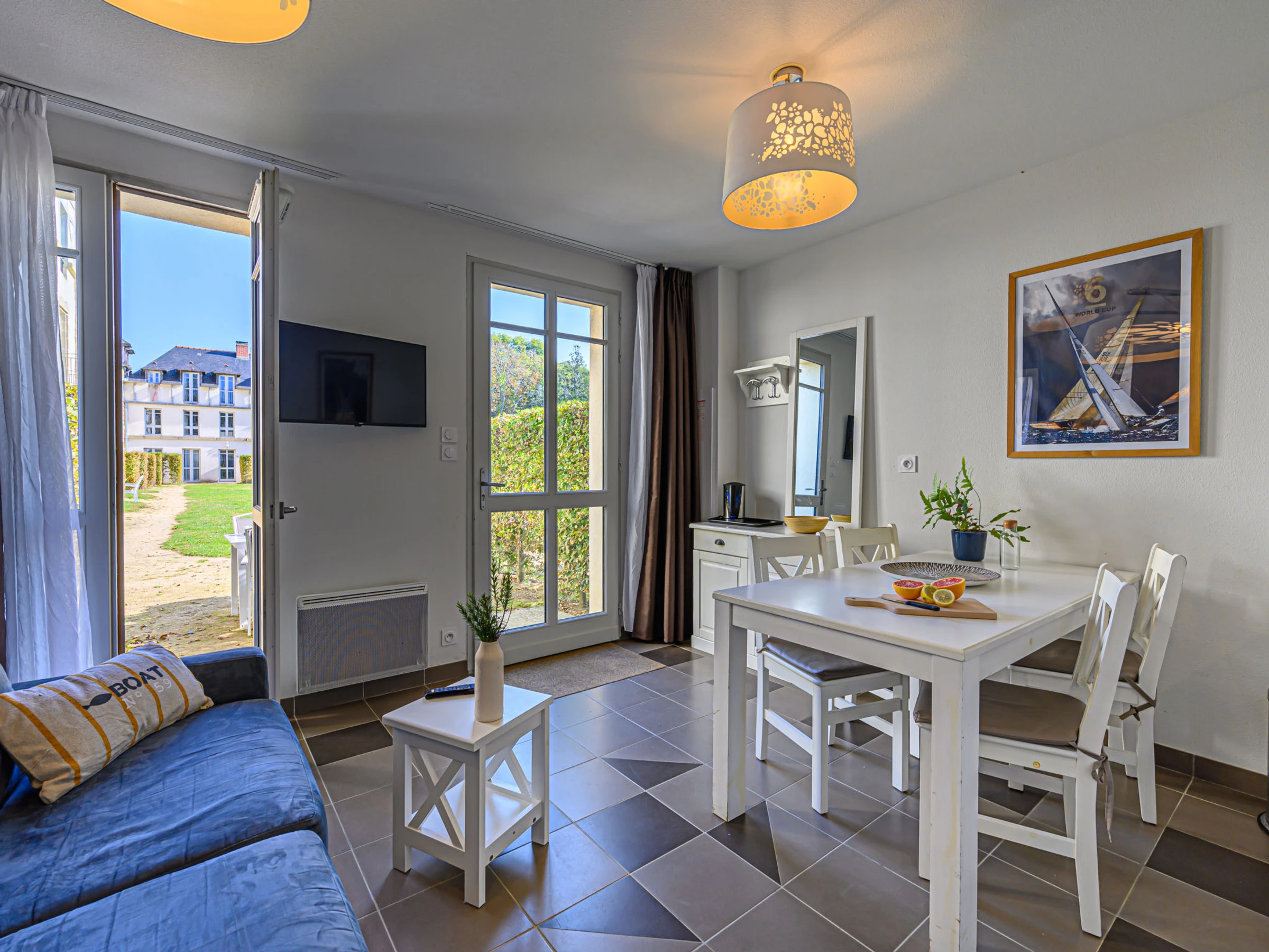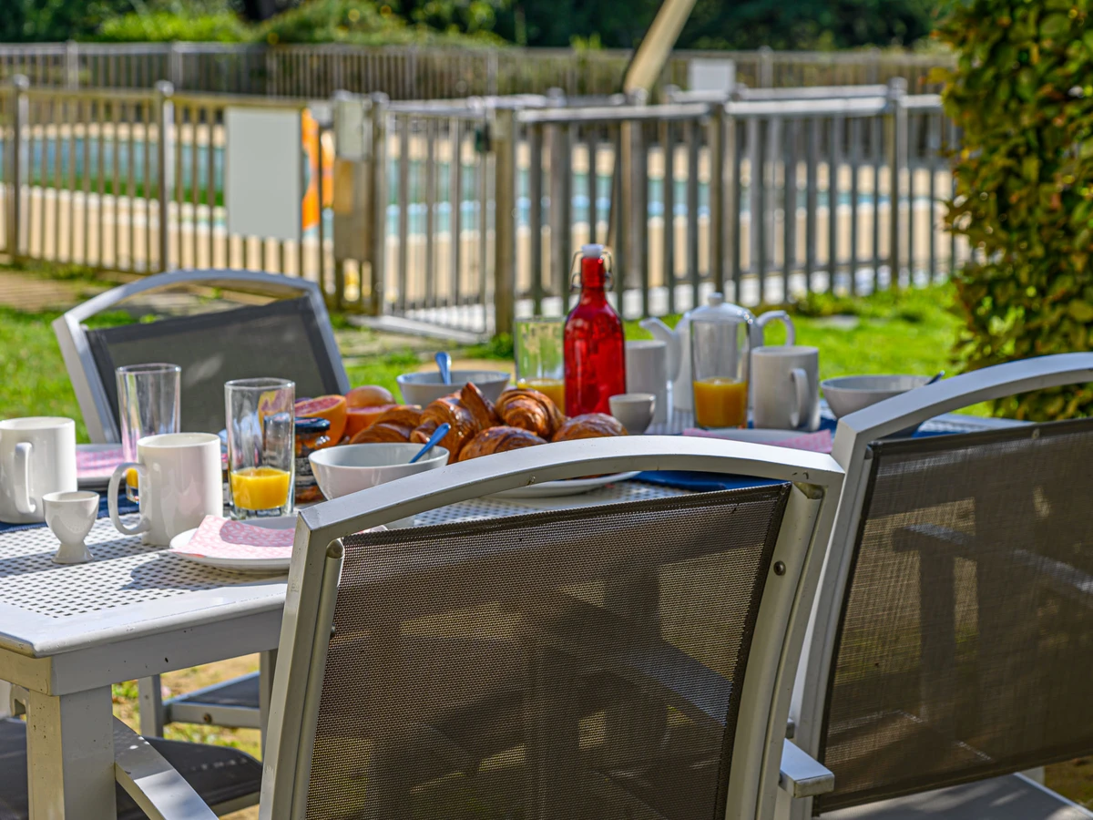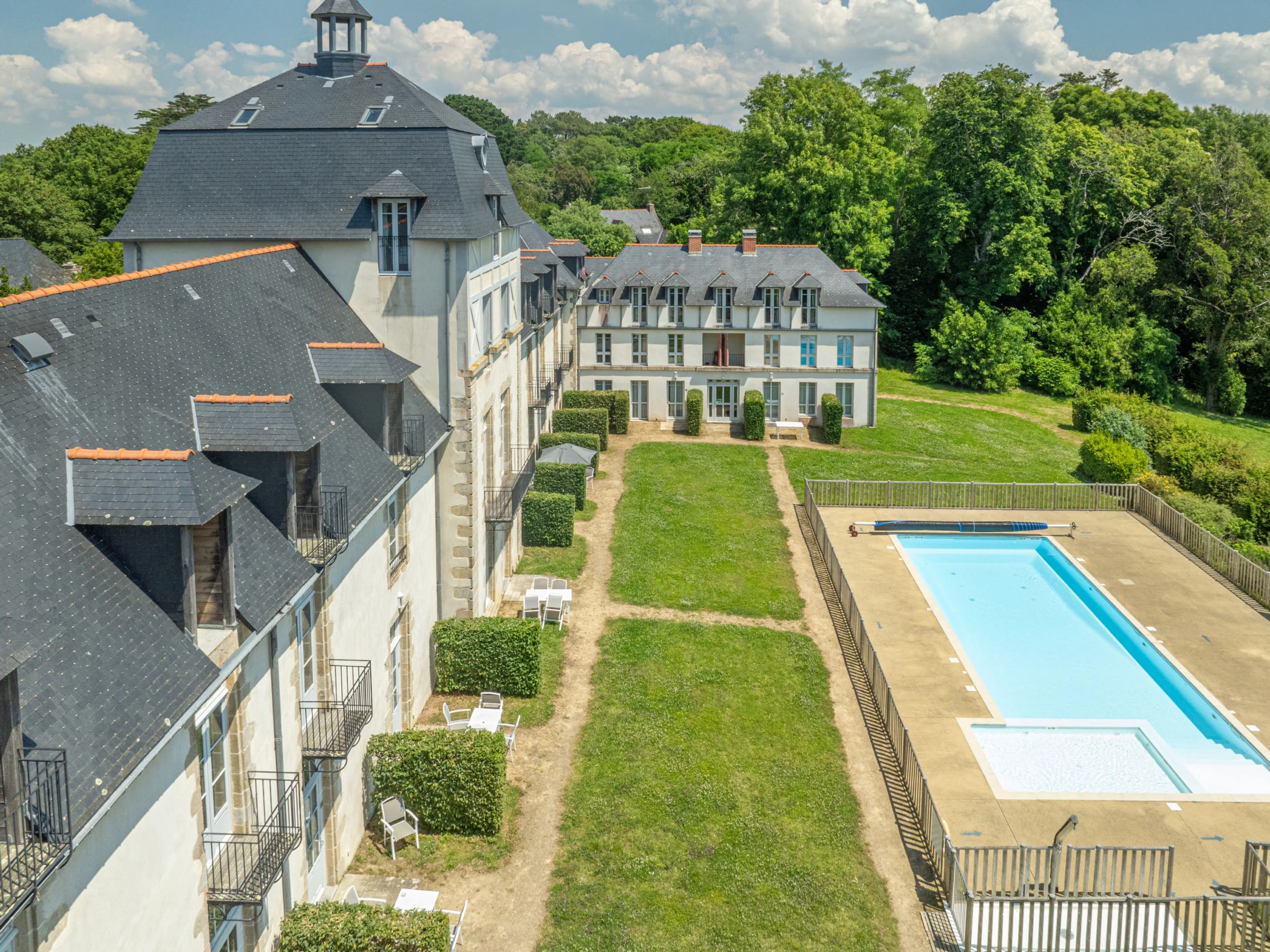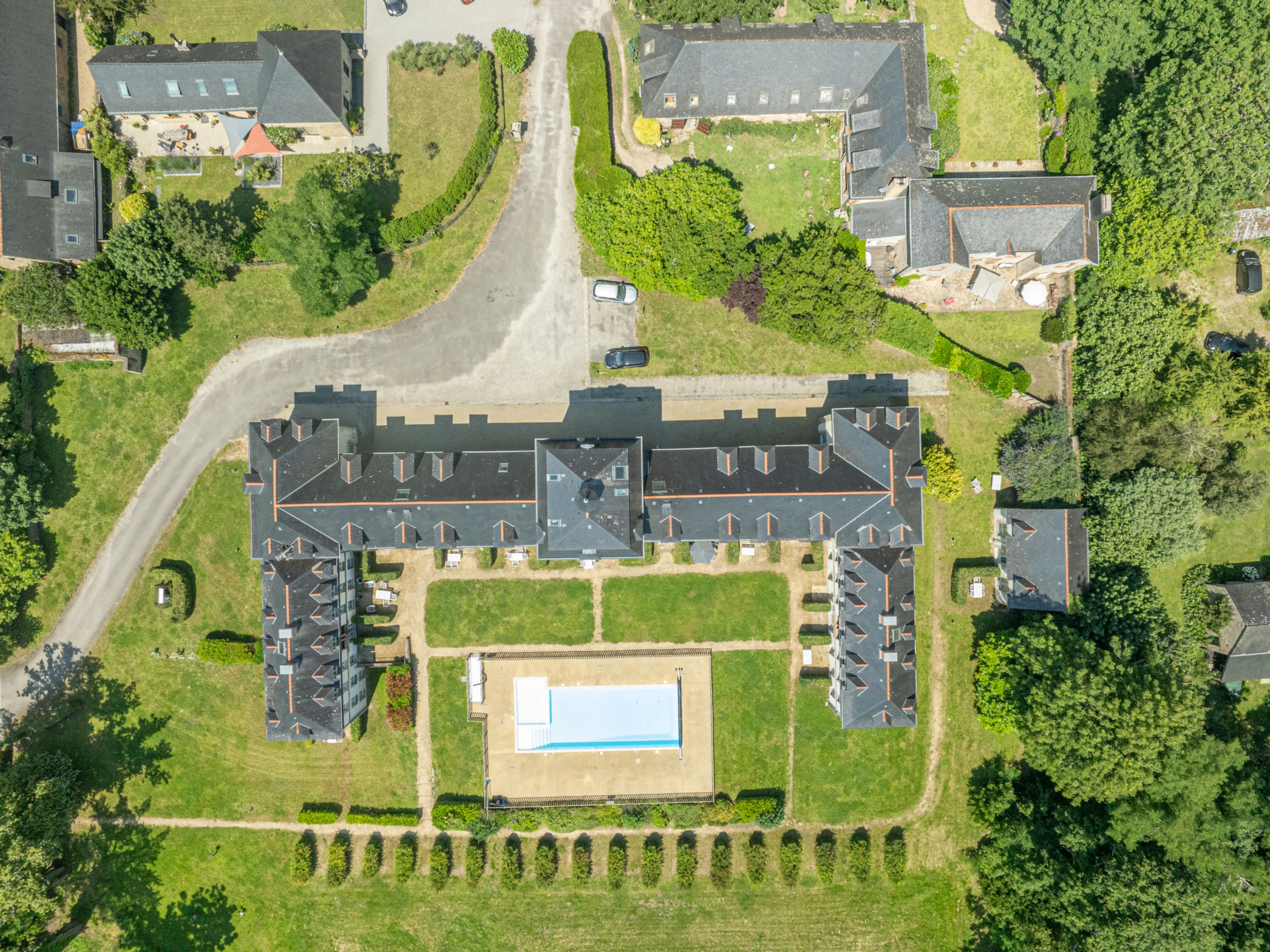 "Le Château de Kergonano", 3-room apartment 35 m2, on the ground floor. Comfortable and beautiful furnishings: living/sleeping room with 1 double sofabed, dining table and TV (flat screen). Exit to the terrace. 1 room with 1 french bed. 1 small children's room 5 m2 with sliding door with 1 x 2 bunk beds (90 cm, length 190 cm). Kitchenette (dishwasher, 4 ceramic glass hob hotplates, kettle, microwave, electric coffee machine, Capsules for coffee machine (Nespresso) extra). Shower/WC. Electric heating. Terrace 6 m2. Terrace furniture. View of the swimming pool and the garden. Facilities: Internet (WiFi, extra). Reserved parking. Please note: non-smokers only. Smoke alarm, fire extinguisher. Daily cleaning and change of linen possible on request and at extra cost. Offer by a private individual according to  Art. 155, IV of CGI.