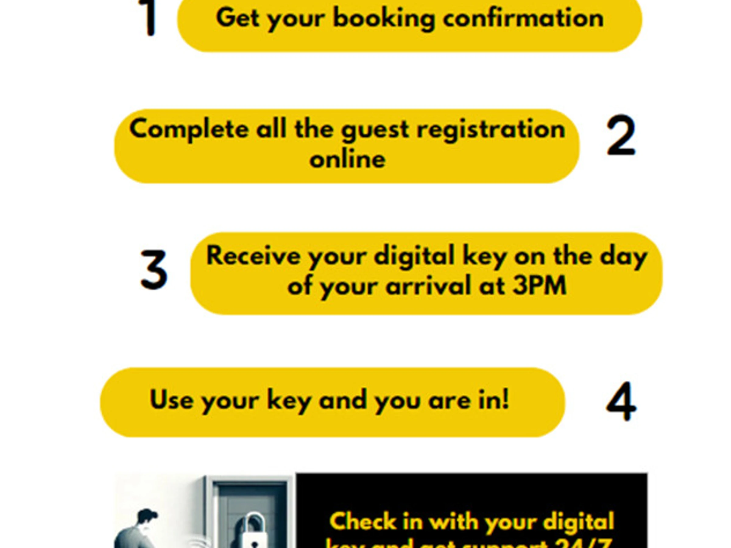 Entries from 9:00 pm onwards are made in person at the apartments and have an extra cost of €30.