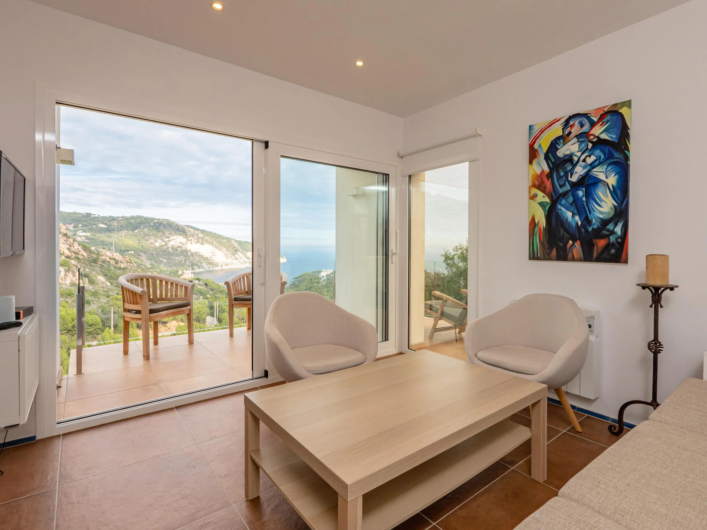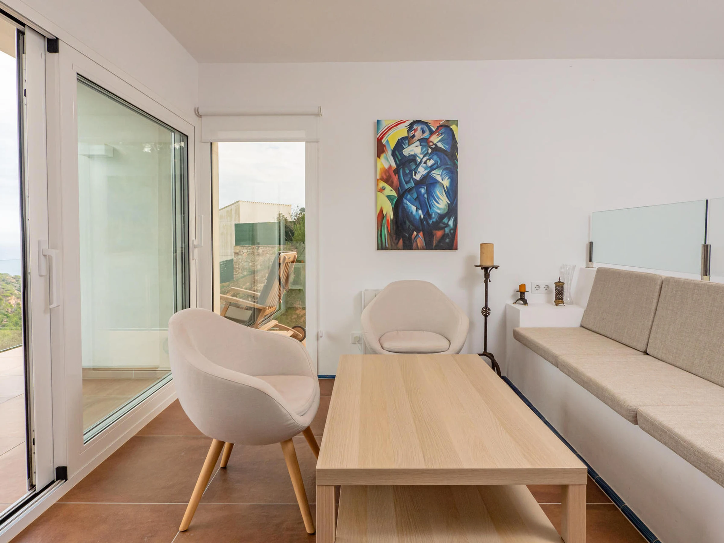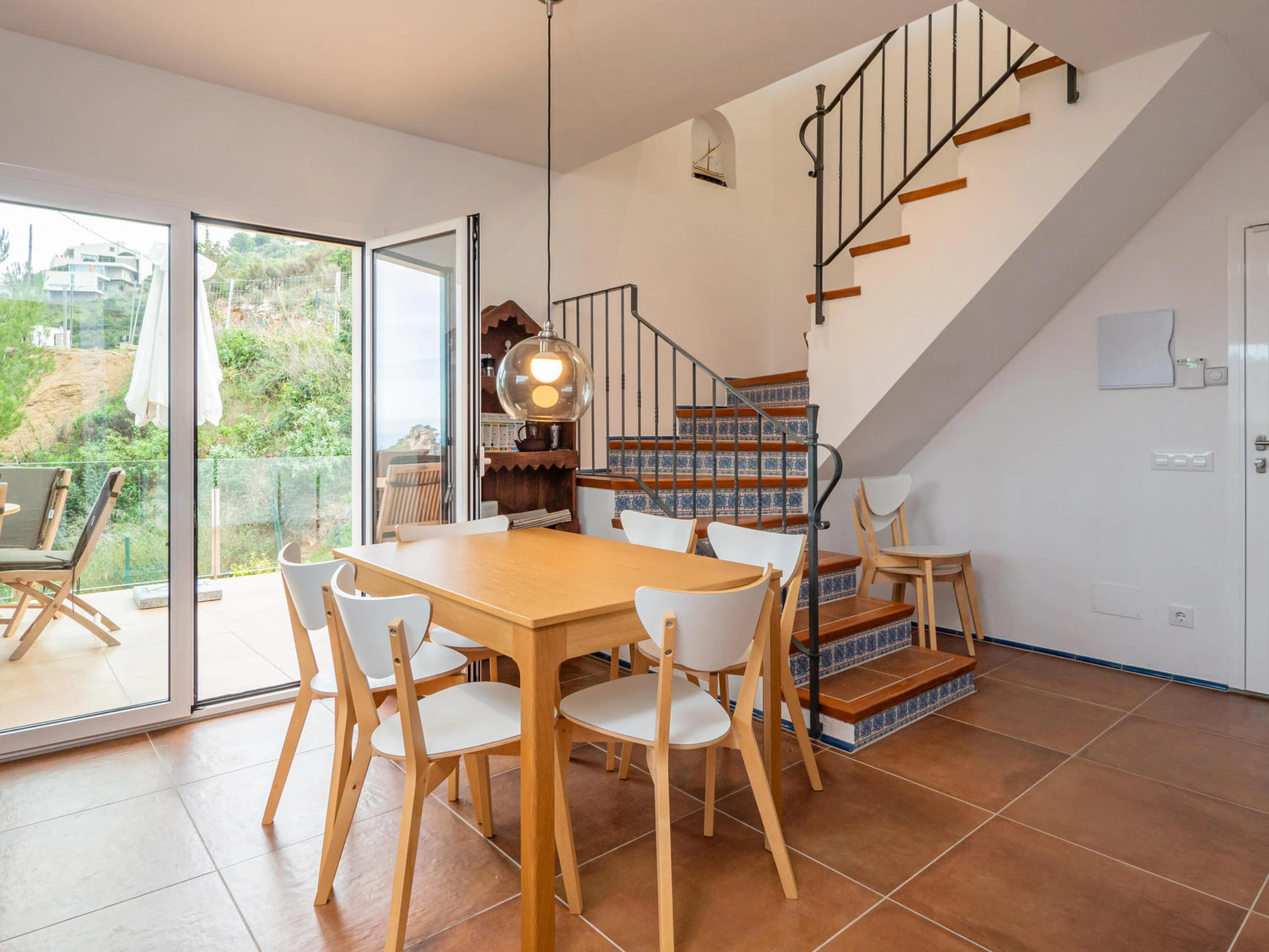 Community of two apartments with spectacular views of the sea and community pool, 10 minutes walk from Aiguablava beach, Begur, Costa Brava. Capacity for 4 people, 2 rooms. Distributed on two floors. At the entrance of the apartment we find a double room with a matrimonial bed and a bathroom with a shower, a dining room with a fully equipped open kitchen and direct access to the terrace with spectacular views of the sea. The terrace is equipped with a table, 6 chairs and a parasol, ideal for family meals. On the upper floor is the living room with access to a terrace with views, a double suite-type room with a double bed and a bathroom with a shower. Outside is the pool, with sun loungers, pool chairs and a small table. An area with an Argentine barbecue and a laundry room with a washing machine, dryer, ironing board and iron and a bathroom with shower; all of it communal. There are stairs to access the apartment. It does not have parking. You can park on the street without problem. The apartment has Wi-Fi Television service not guaranteed due to poor coverage in the area. Sheets and towels included in the reservation. For any questions regarding this property, please do not hesitate to contact us.