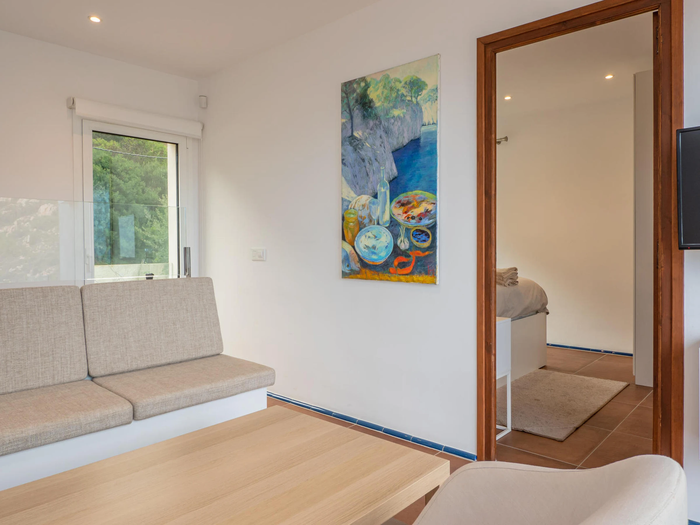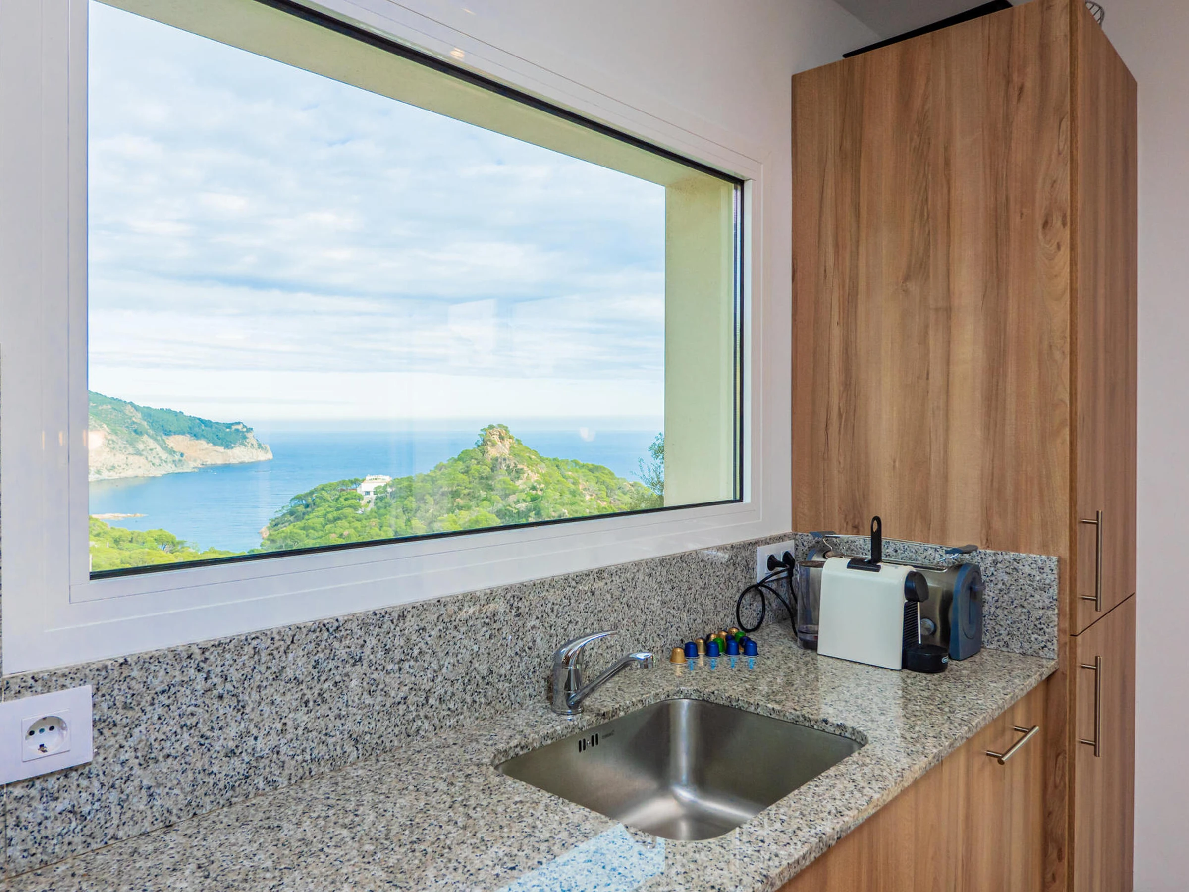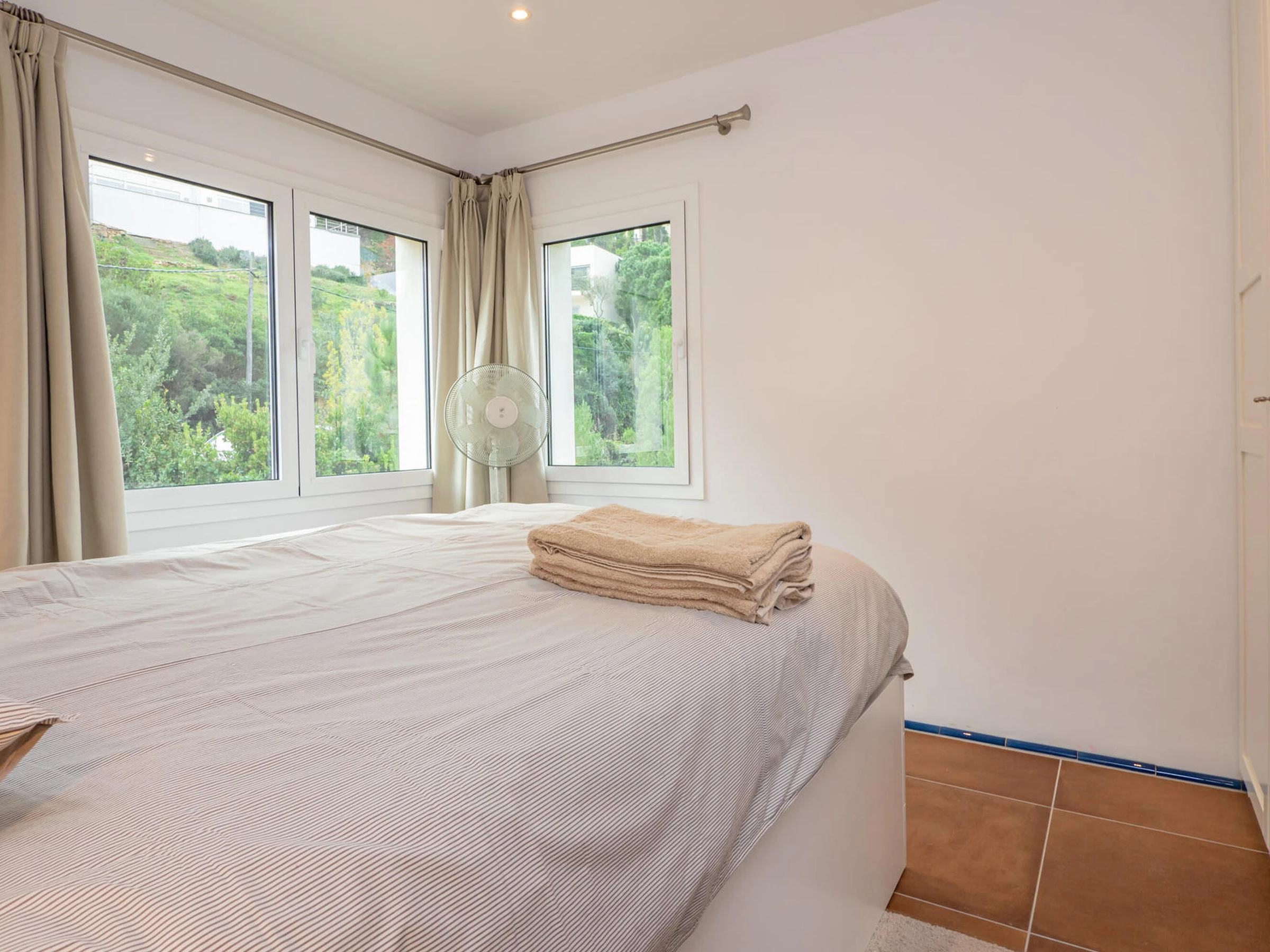 Community of two apartments with spectacular views of the sea and community pool, 10 minutes walk from Aiguablava beach, Begur, Costa Brava. Capacity for 4 people, 2 rooms. Distributed on two floors. At the entrance of the apartment we find a double room with a matrimonial bed and a bathroom with a shower, a dining room with a fully equipped open kitchen and direct access to the terrace with spectacular views of the sea. The terrace is equipped with a table, 6 chairs and a parasol, ideal for family meals. On the upper floor is the living room with access to a terrace with views, a double suite-type room with a double bed and a bathroom with a shower. Outside is the pool, with sun loungers, pool chairs and a small table. An area with an Argentine barbecue and a laundry room with a washing machine, dryer, ironing board and iron and a bathroom with shower; all of it communal. There are stairs to access the apartment. It does not have parking. You can park on the street without problem. The apartment has Wi-Fi Television service not guaranteed due to poor coverage in the area. Sheets and towels included in the reservation. For any questions regarding this property, please do not hesitate to contact us.
