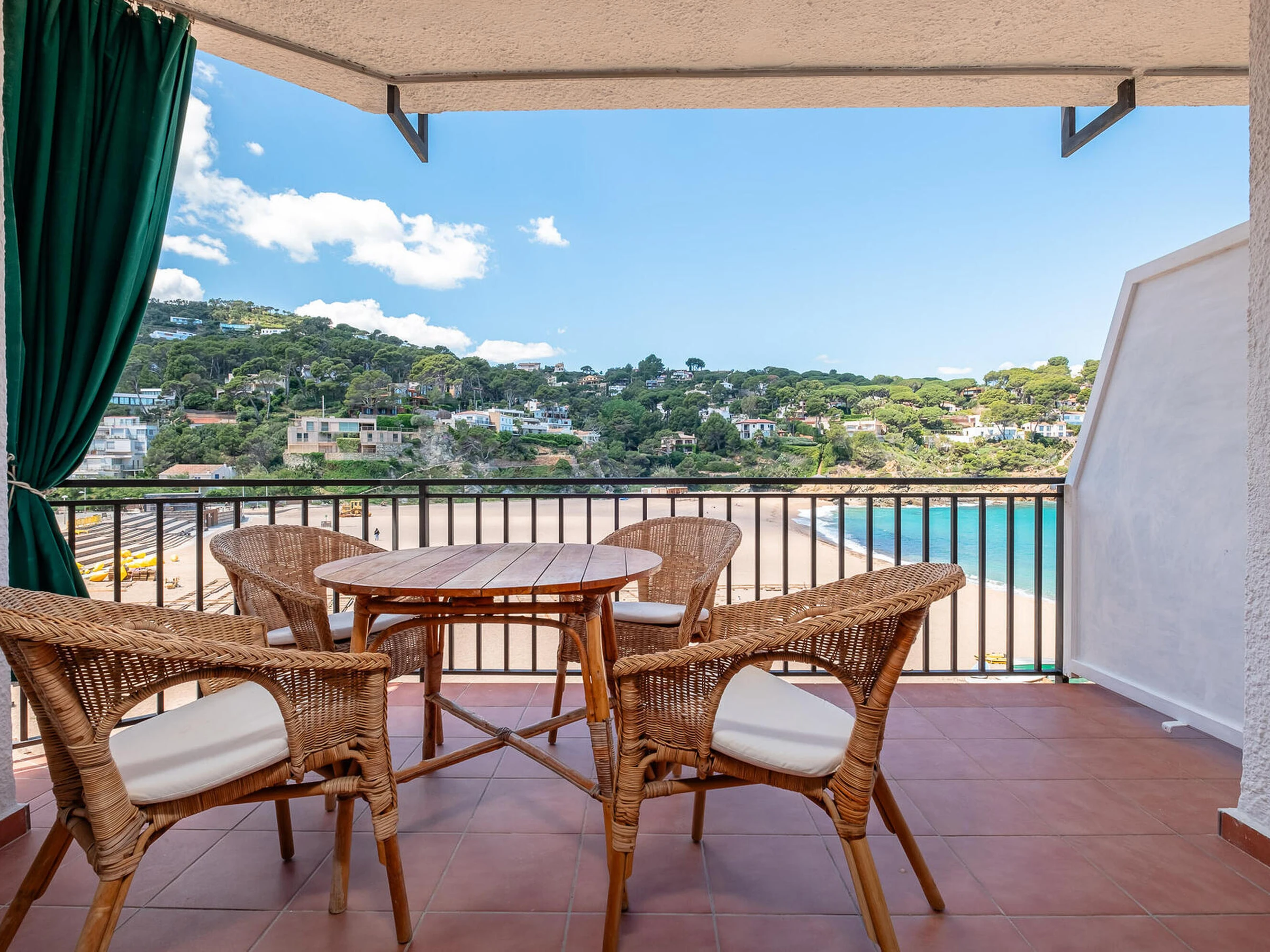 Apartment located in front of the beach Sa Riera, 5 minutes driving from the center of Begur, Costa Brava. Capacity for 4 people, 2 bedrooms It consists of a cozy living room with terrace and views directly to the beach of Sa Riera, a fully equipped kitchen with everything necessary, 2 double bedrooms, one with two single beds and the other with a double bedAnd 1 bathroom. The double bed makes 1,80 x 2 m; the single beds are standard sizes. It is a second floor and there are stairs to access the property. Not parquing space. Pets are not allowed. 3G TV service and internet not guaranteed due to poor coverage in the area. For any questions or if you want more information about this property, please do not hesitate to contact us.