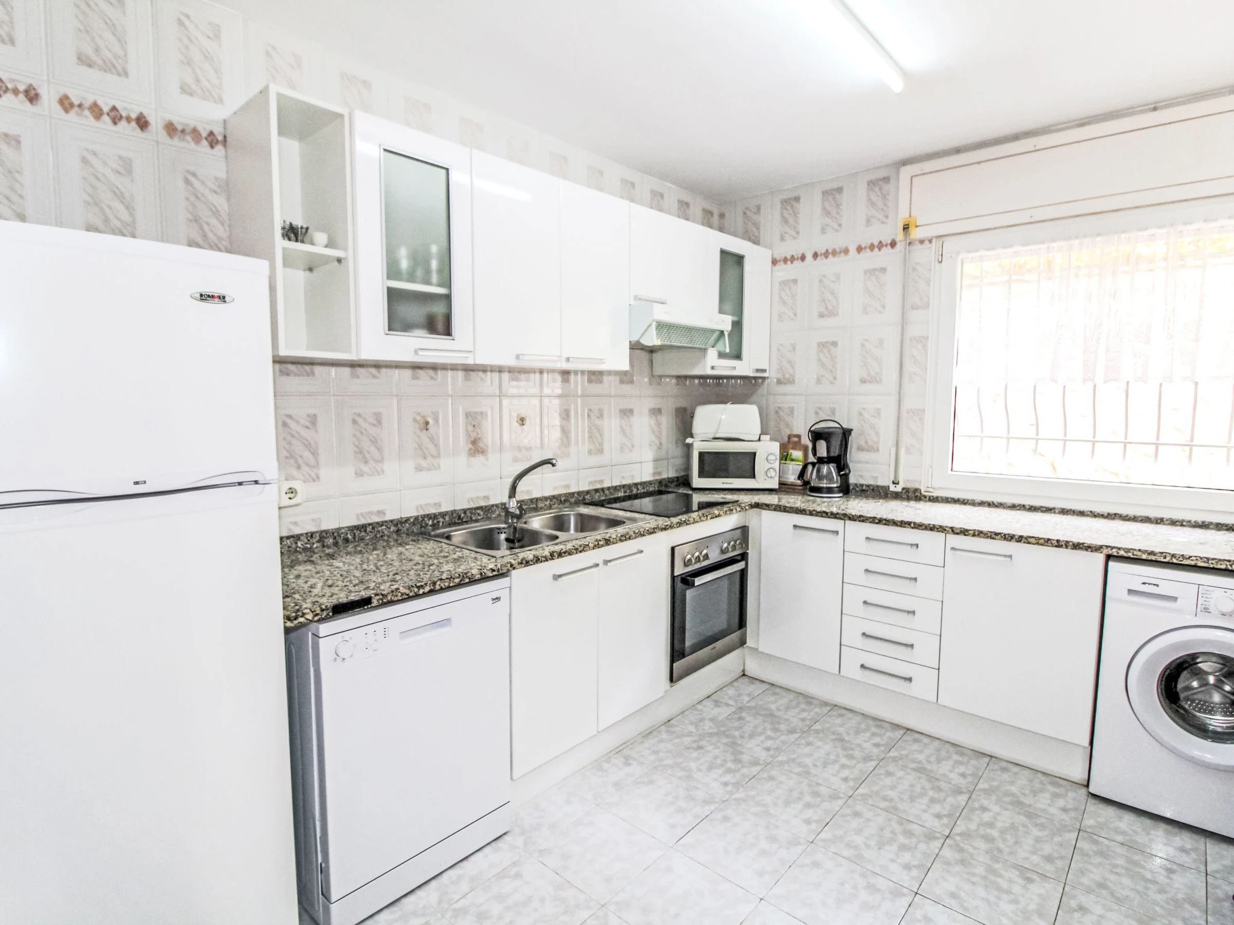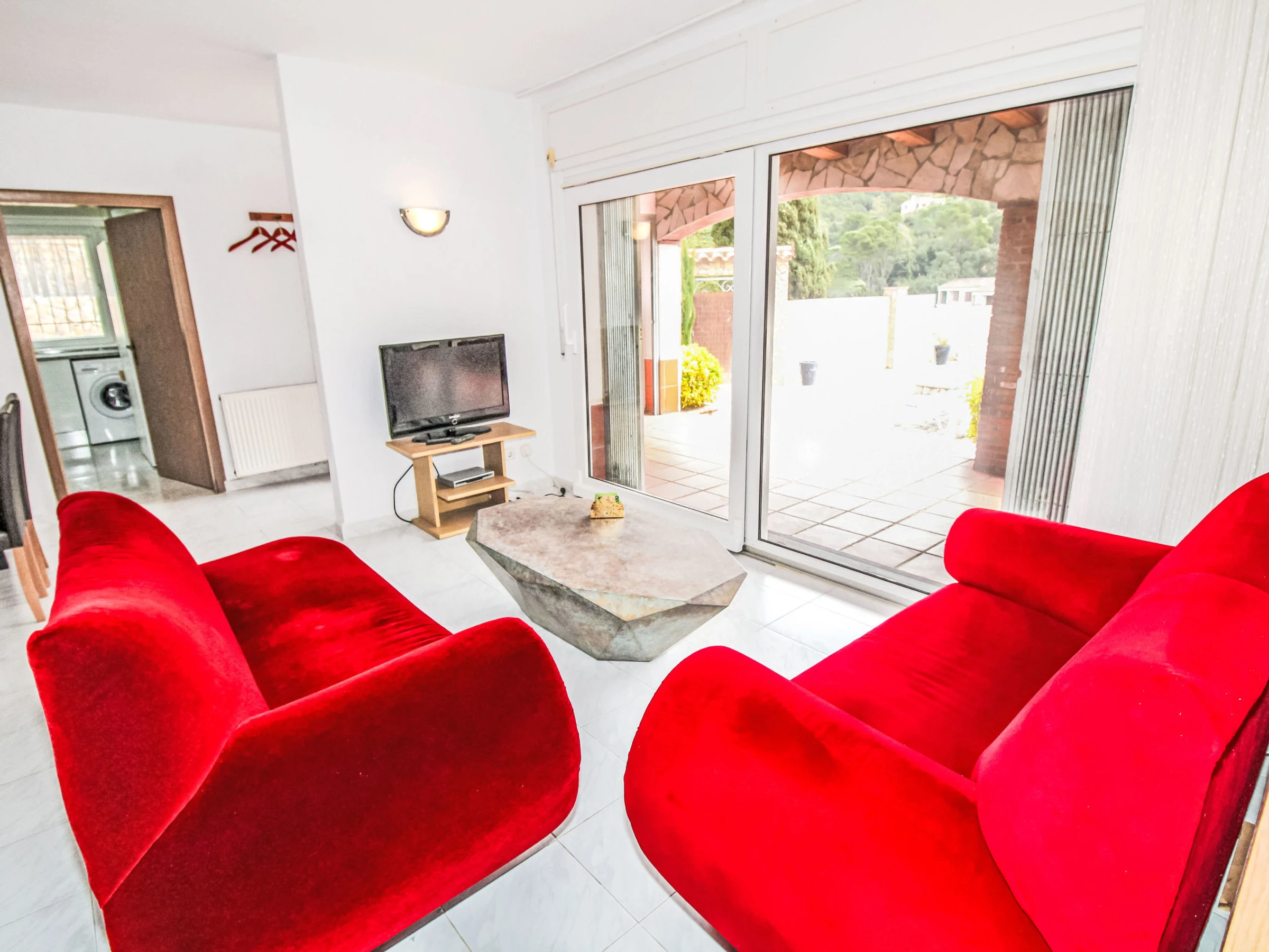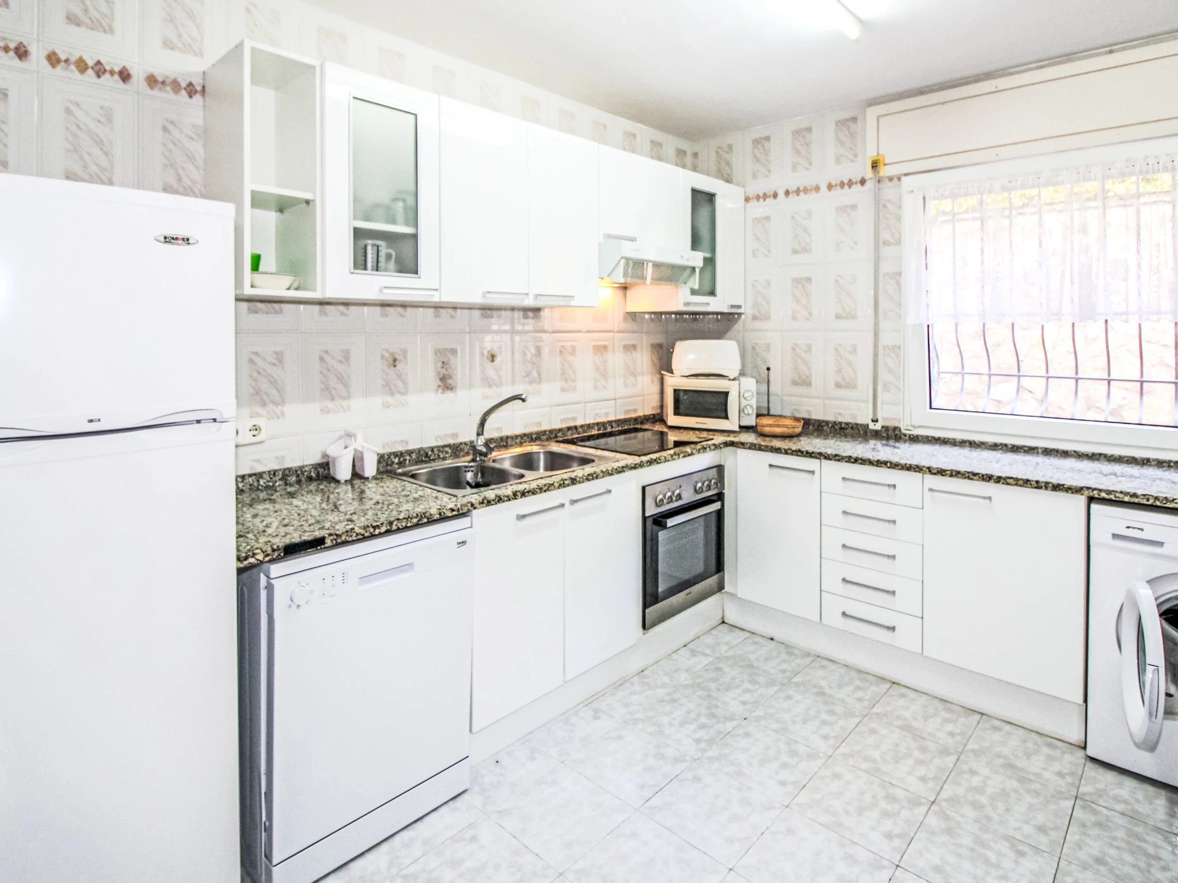 "Roca Mas Mato", 4-room house 120 m2. Spacious, practical and comfortable furnishings: living/dining room. 3 rooms, each room with 1 french bed (150 cm, length 190 cm), fan. Kitchen (oven, dishwasher, toaster, kettle, microwave). 2 baths/WC. Terrace furniture, barbecue, deck chairs. Facilities: washing machine. Parking at the house. [hidden]