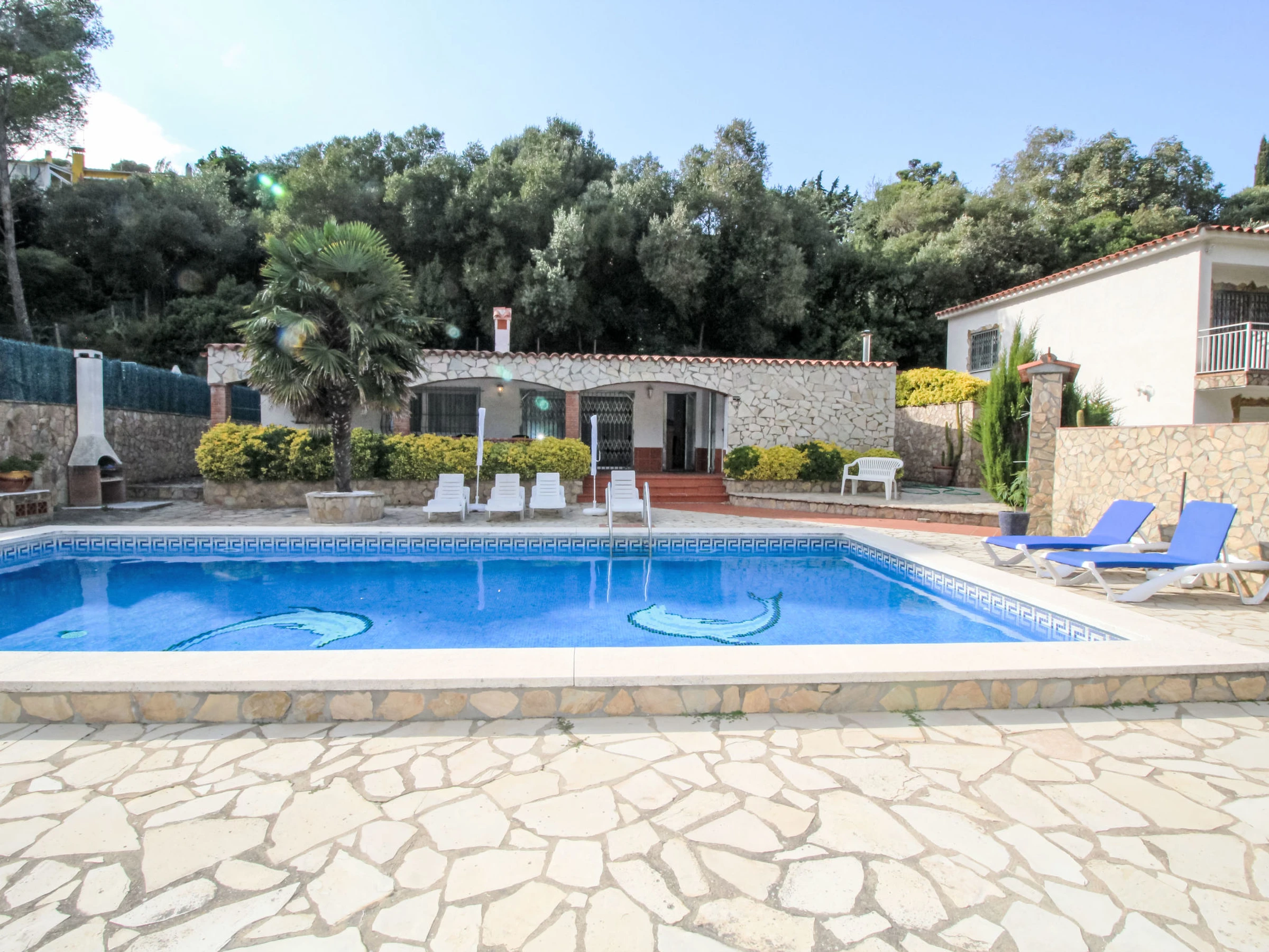 Sa Riera: Simple house "Roca Mas Mato". In a sunny, elevated position, 700 m from the sea, 700 m from the beach, on a main road. Private: swimming pool (4 x 8 m, depth 100 - 180 cm, seasonal availability: [hidden] and [hidden] Grocery 700 m, supermarket 4.6 km, restaurant, bar 700 m, bus stop 4.6 km, sandy beach 700 m. Please note: car recommended. The owner does not accept any groups. The owner does not accept any youth groups. Neighbourhood highly sensitive to noise. Quietness and good behaviour expected.