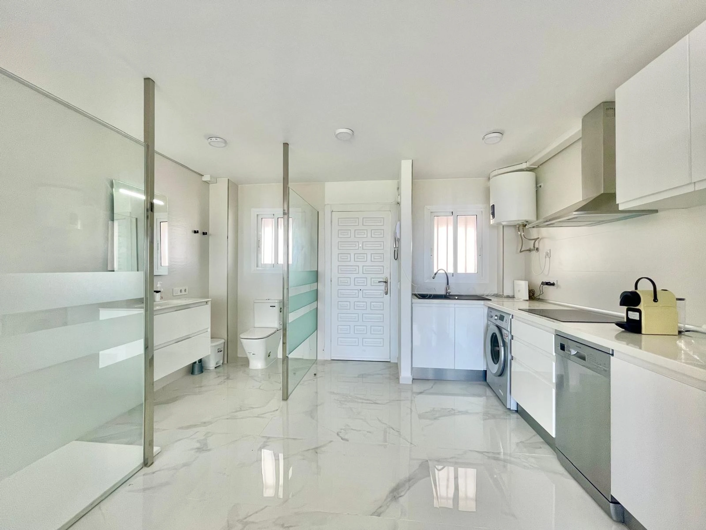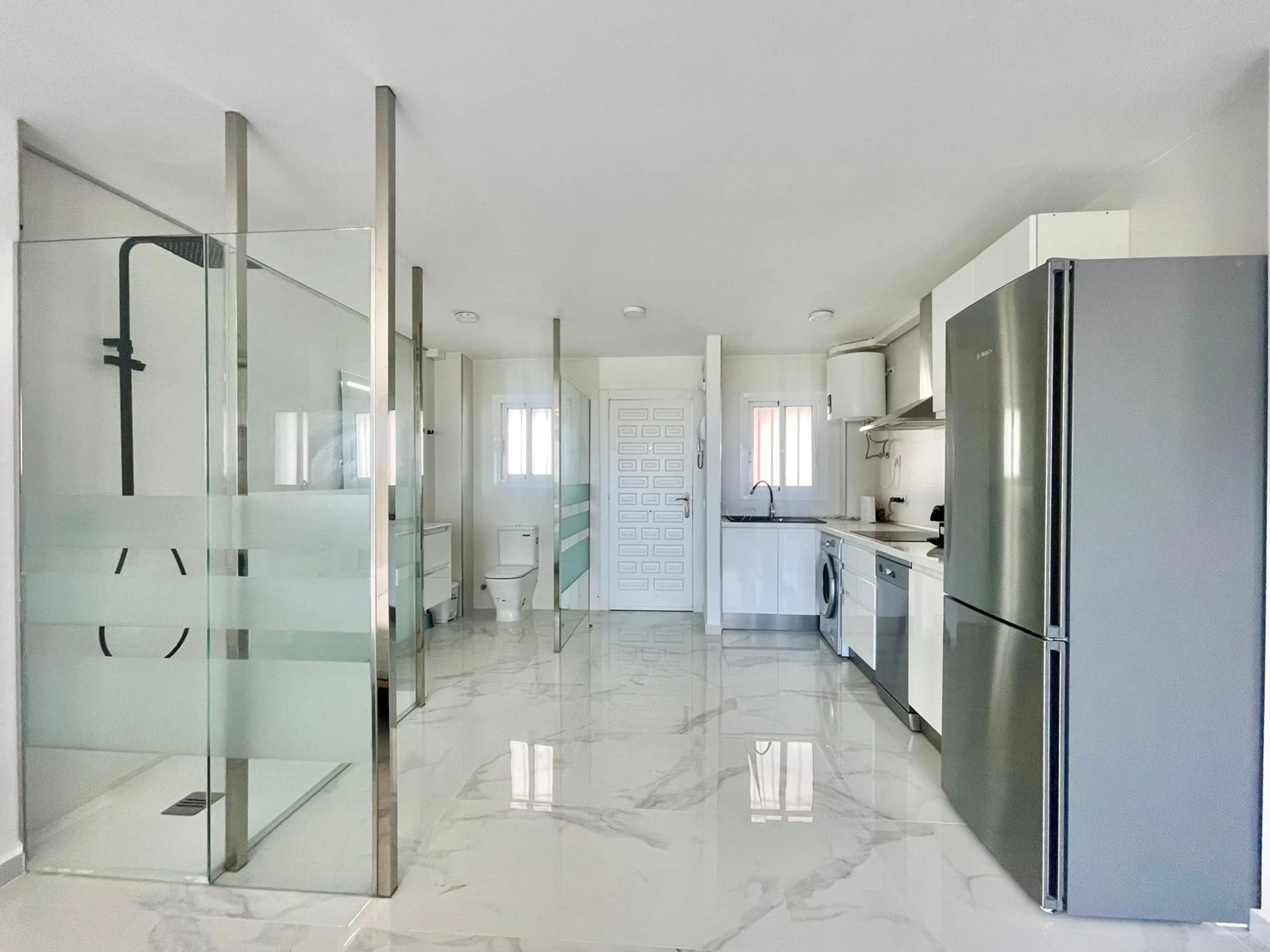 The studio in Benidorm has capacity for 2 people. Accommodation of 40 m² beautiful and modern, with sea views. It is located 100 m from the sandy beach "Playa Levante", 100 m from the supermarket "Carrefour express", 1 km from the city "Casco Antiguo Benidorm", 1 km from the natural park "Serra Gelada", 2 km from the bus station "Benidorm", 2 km from the water park "Aqualandia", 4 km from the Golf course "Villaitana", 65 km from the airport "Alicante Airport" and is located in an ideal area for families and in the urban centre. It has a lift, washing machine, iron, internet access (wifi), hairdryer, heat pump heating, air conditioning, communal swimming pool, covered parking in the same building, 1 fan, 1 Television. The American kitchen, with vitroceramic hob, is equipped with fridge, microwave, freezer, dishwasher, crockery/cutlery, utensils/kitchen, coffee maker, toaster and kettle.