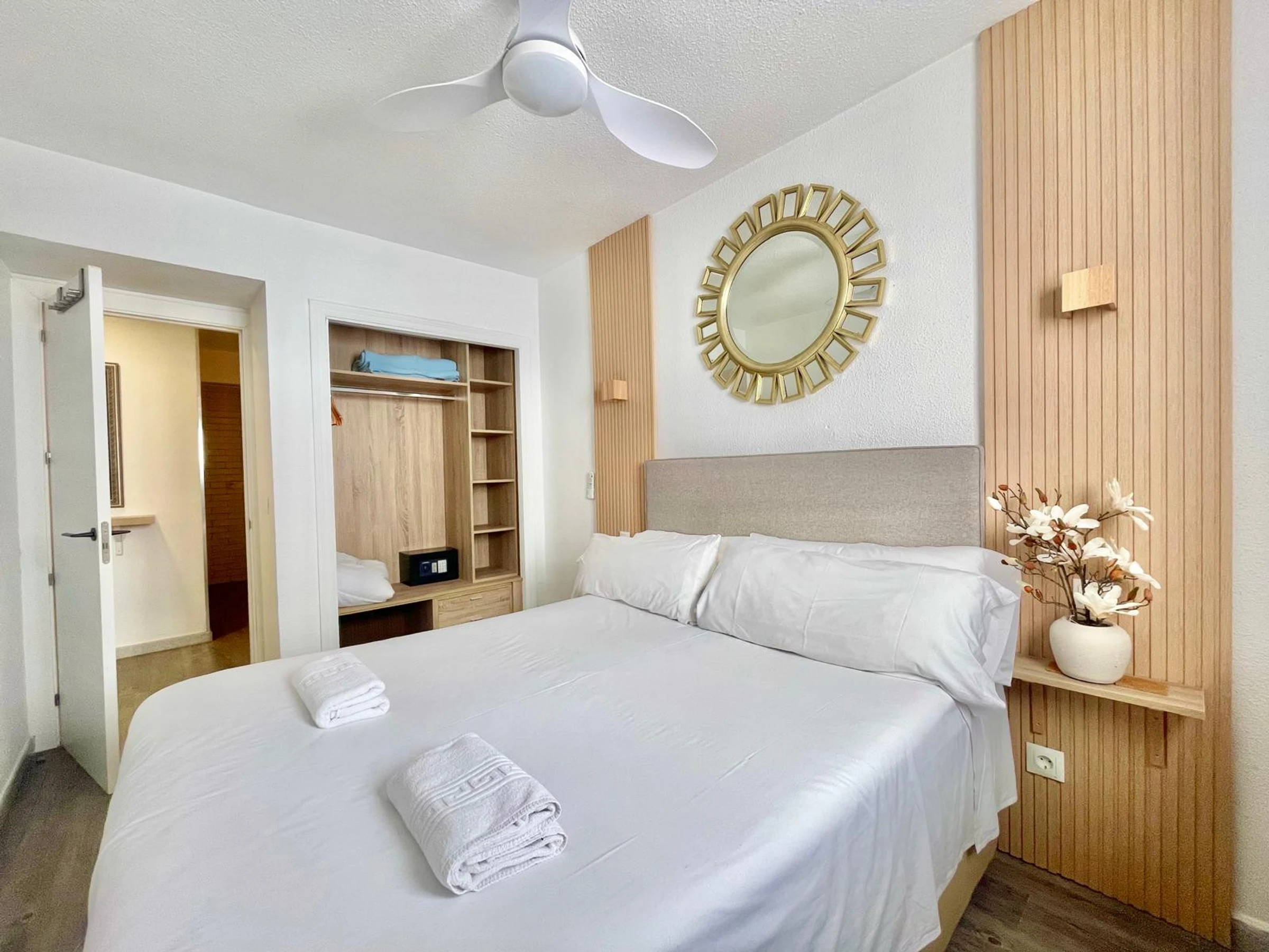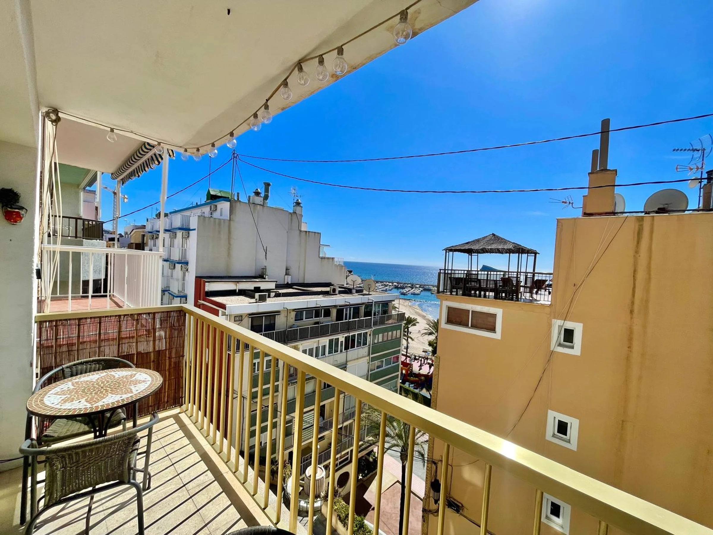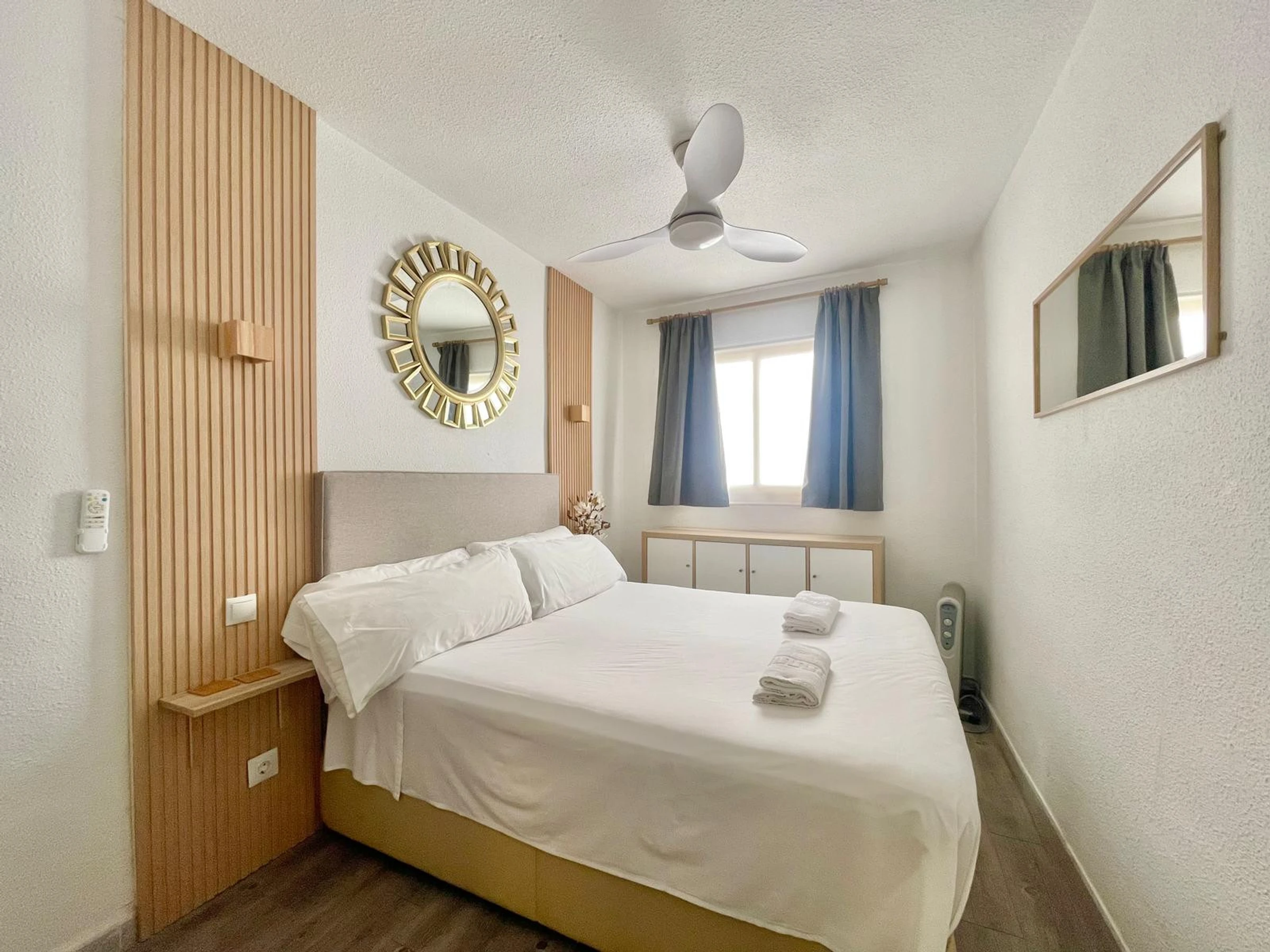 The apartment in Benidorm has 2 bedroom(s) and capacity for 4 people. Accommodation of 70 m² furnished with taste and modern, with sea views. It is located 0 m from the city "Casco Antiguo Benidorm", 100 m from the restaurant "Zona Restaurantes", 200 m from the sandy beach "Playa de Poniente", 300 m from the supermarket "Supermercado", 2 km from the bus station "Estación de Benidorm", 3 km from the theme park "Terra Mítica", 3 km from the water park "Aqualandia", 3 km from the natural park "Serra Gelada", 3 km from the Golf course "VIllaitana", 65 km from the airport "Aeropuerto de Alicante", 65 km from the train station "Estación de Alicante" and is located in an ideal area for families and next to the sea. It has a lift, 5 m² terrace, iron, internet access (wifi), heat pump heating, air conditioning, Television. The American kitchen, with ceramic hob, is equipped with fridge, oven, freezer, washing machine, crockery/cutlery, utensils/kitchen, coffee maker, toaster and kettle.