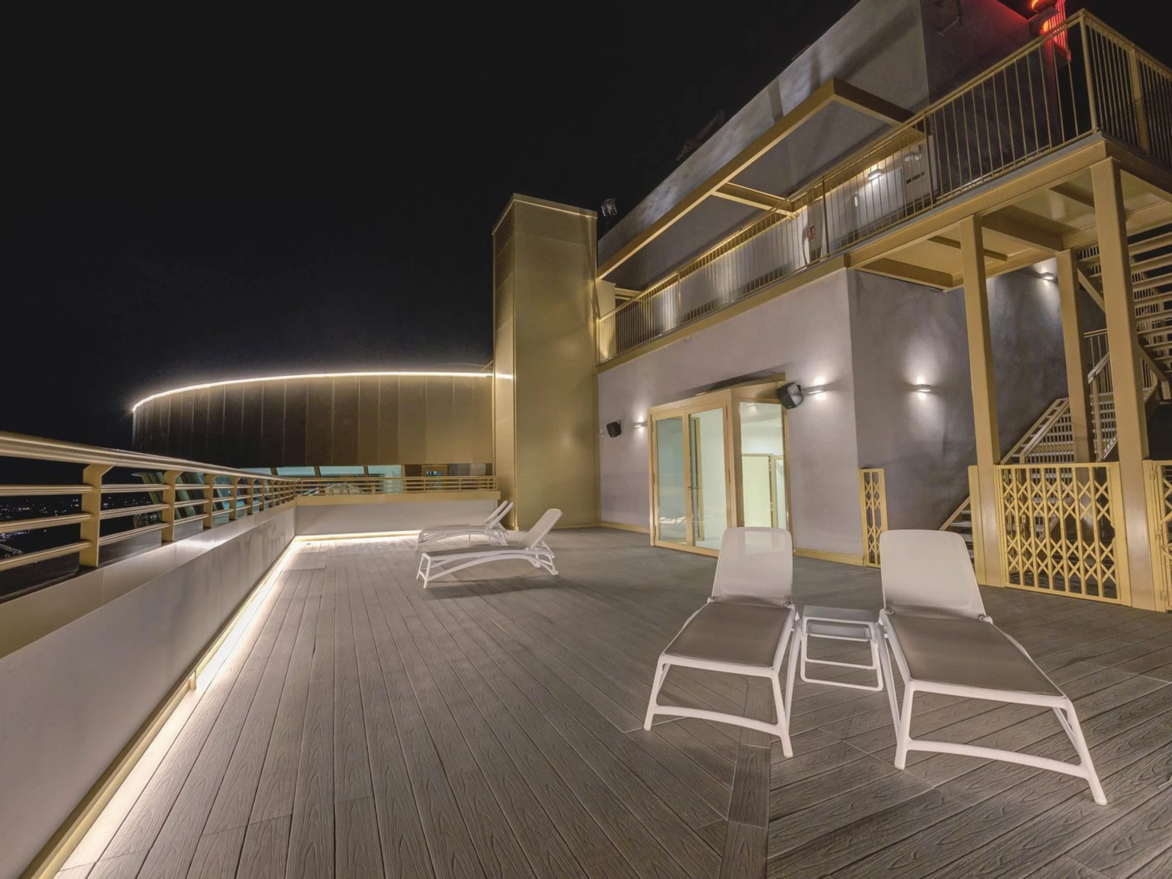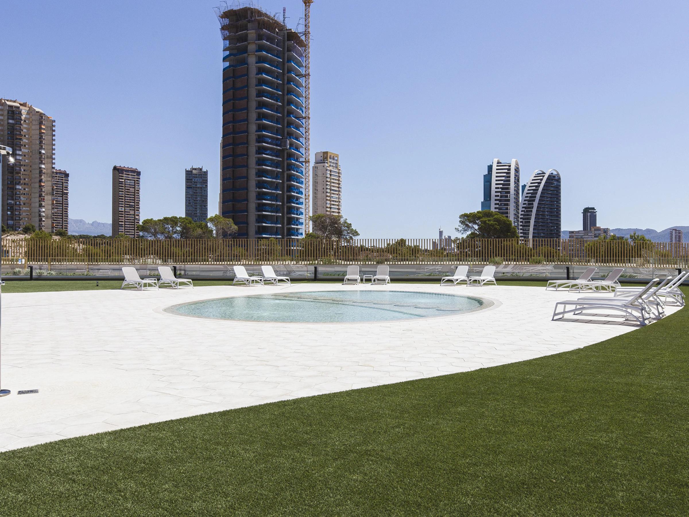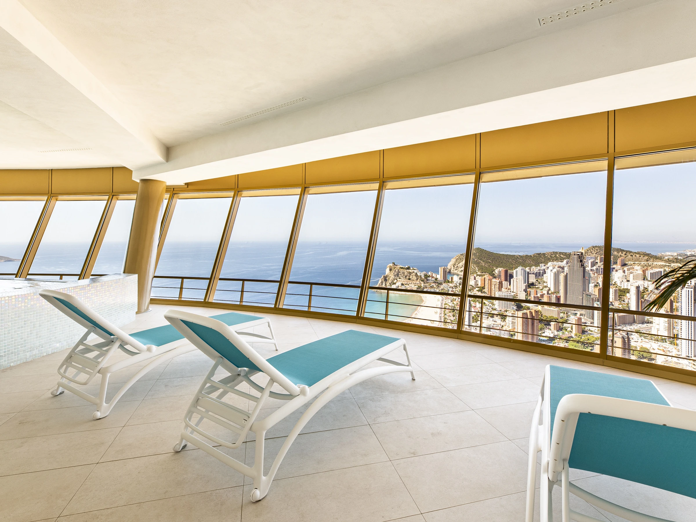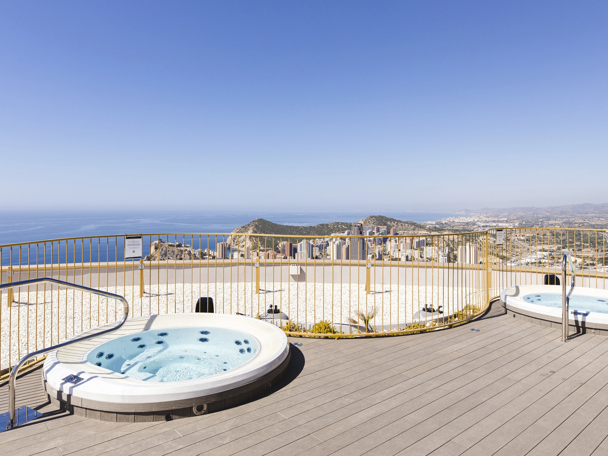 The Intempo Residential Sky Resort culminates on the 47th floor. This is where you can enjoy a sunrise or sunset like nowhere else in Benidorm from its 198 metres high. It also has an area with Balinese beds to enjoy the Mediterranean sun, and 4 jacuzzis with magnificent sea views.