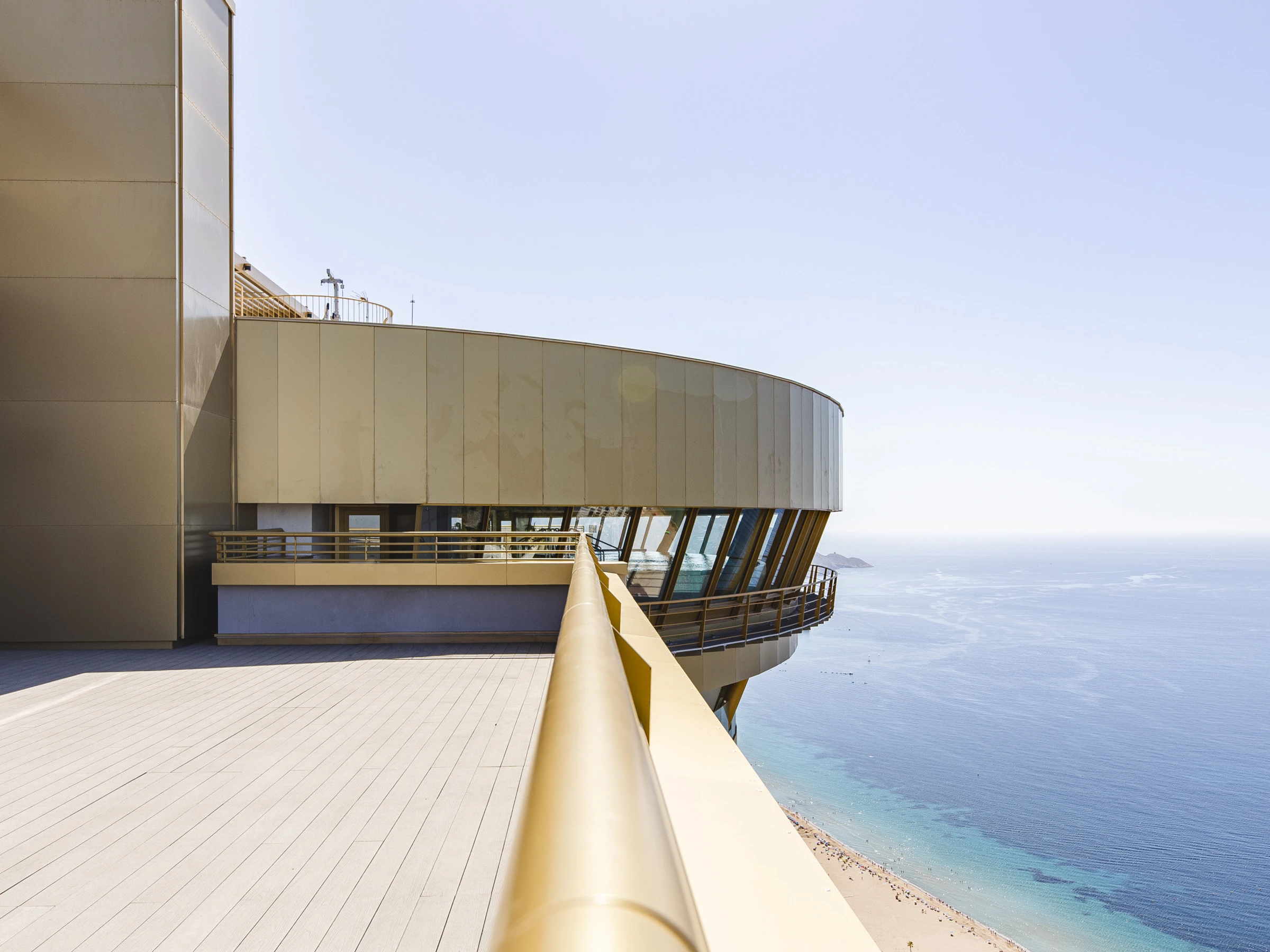 On the 46th floor we can also sit on one of its 2 terraces to read the newspaper, a book or simply chat, with the Mediterranean as our witness.