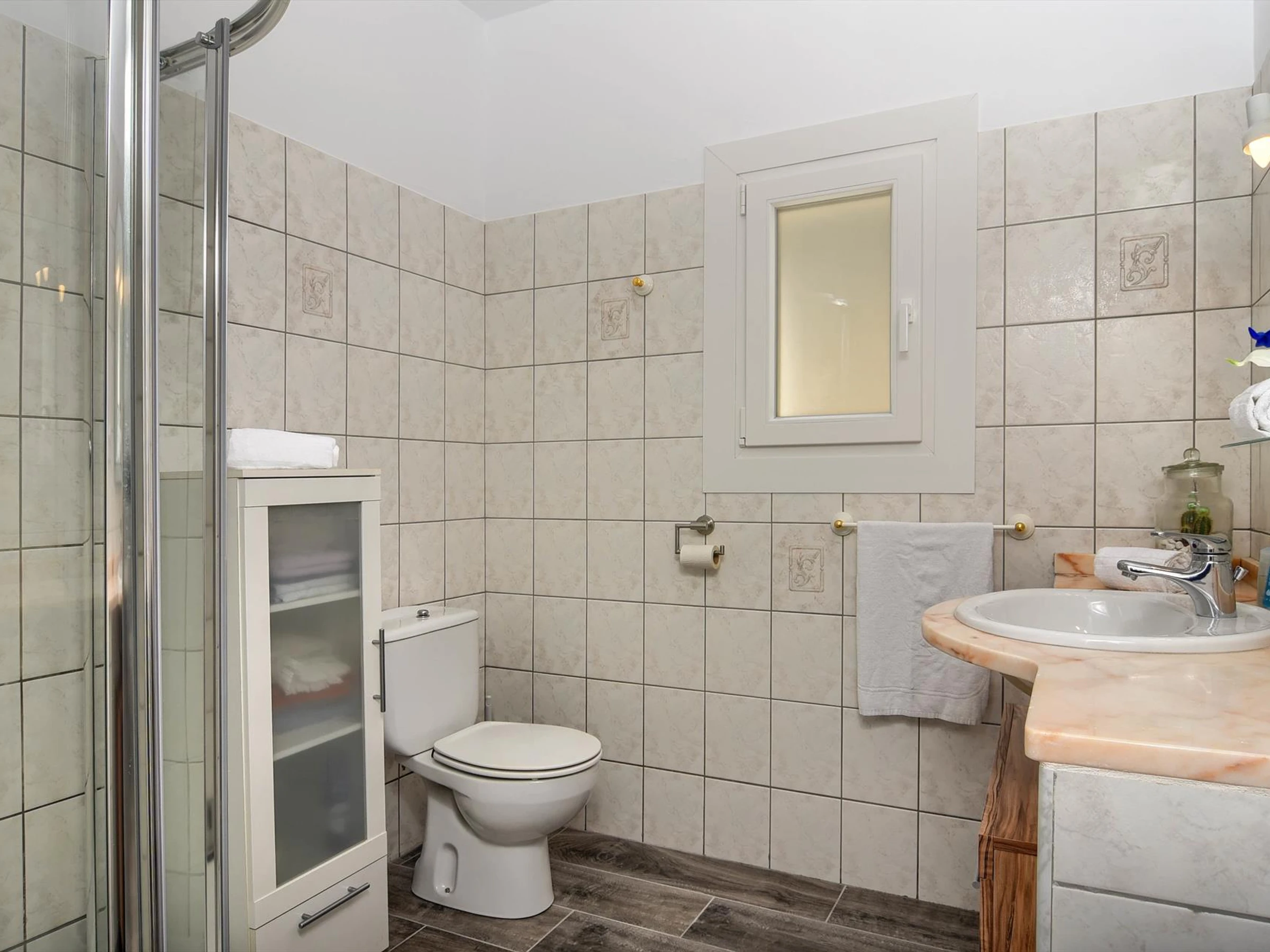 * bathroom with single washbasin, shower and toiletExterior of this holiday