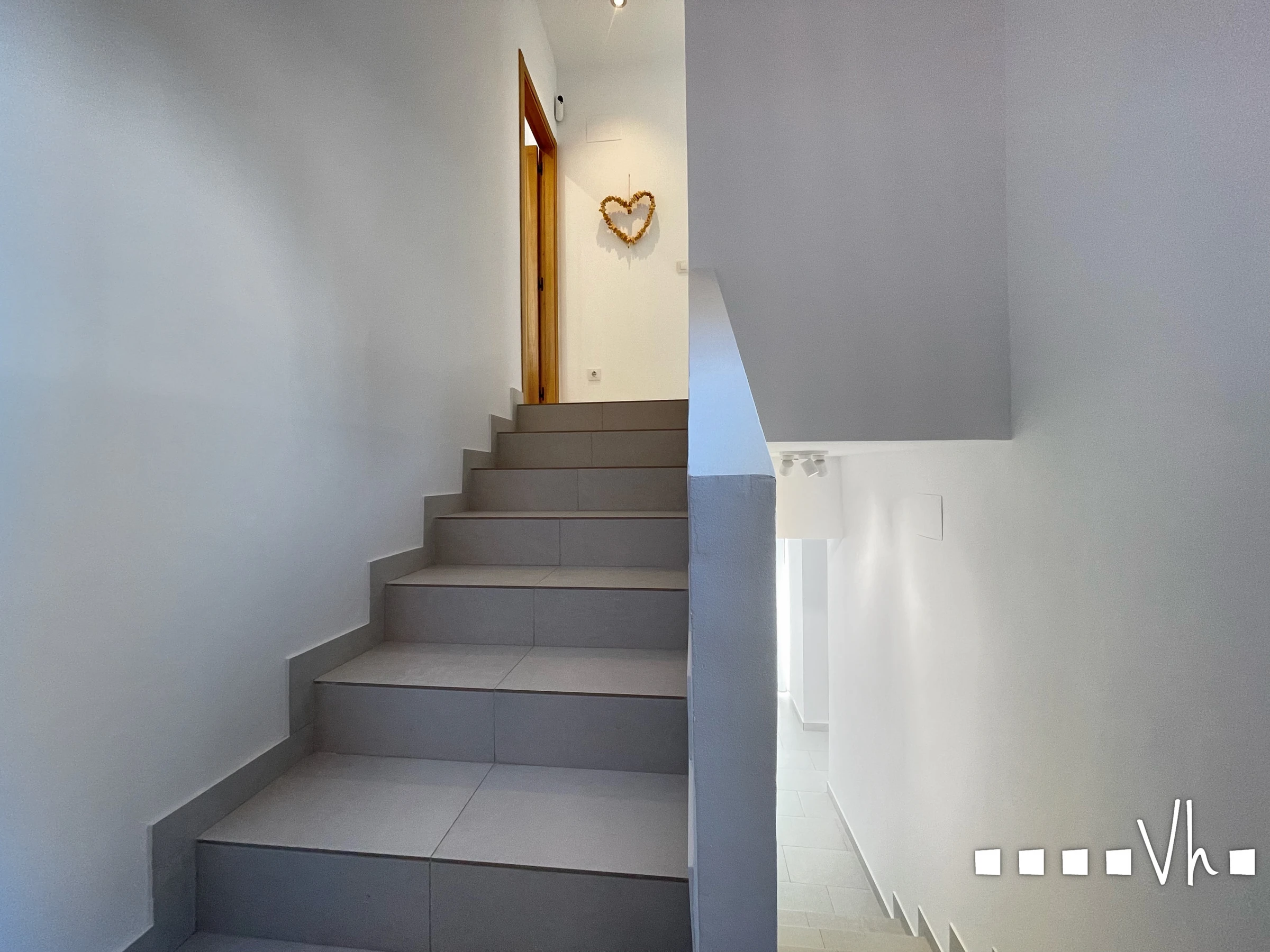 On the upper floor are the three bedrooms and the bathroom with shower and bathtub.