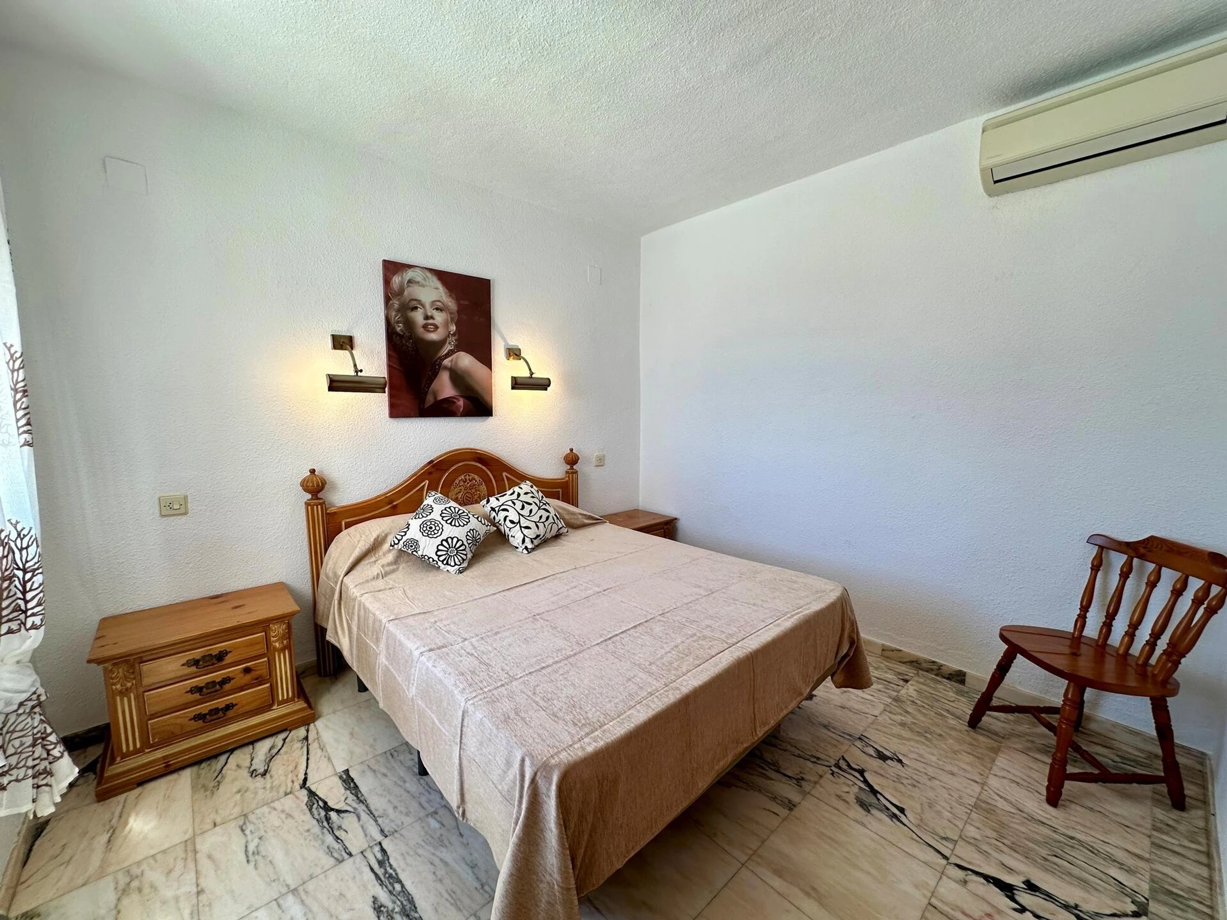 * bedroom with air conditioning and queen size bed (measuring 190 by 150 cm)
